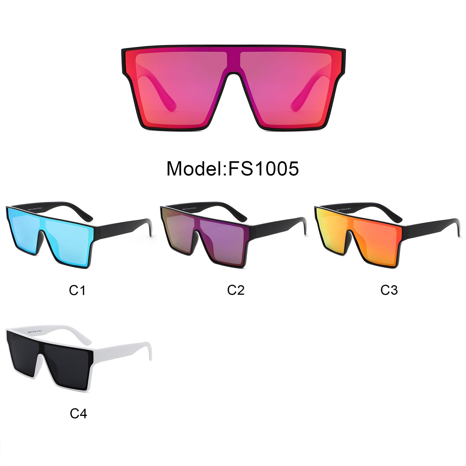 FS1005 - Oversize Bold Flat Top Shield Mirrored Wholesale Sunglasses