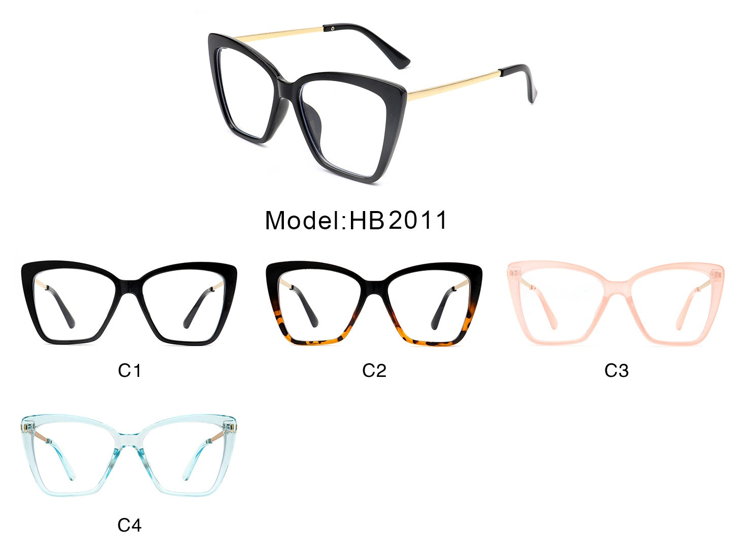 HBJ2011 -  Women Square High Pointed Cat Eye Blue Light Blocker Glasses