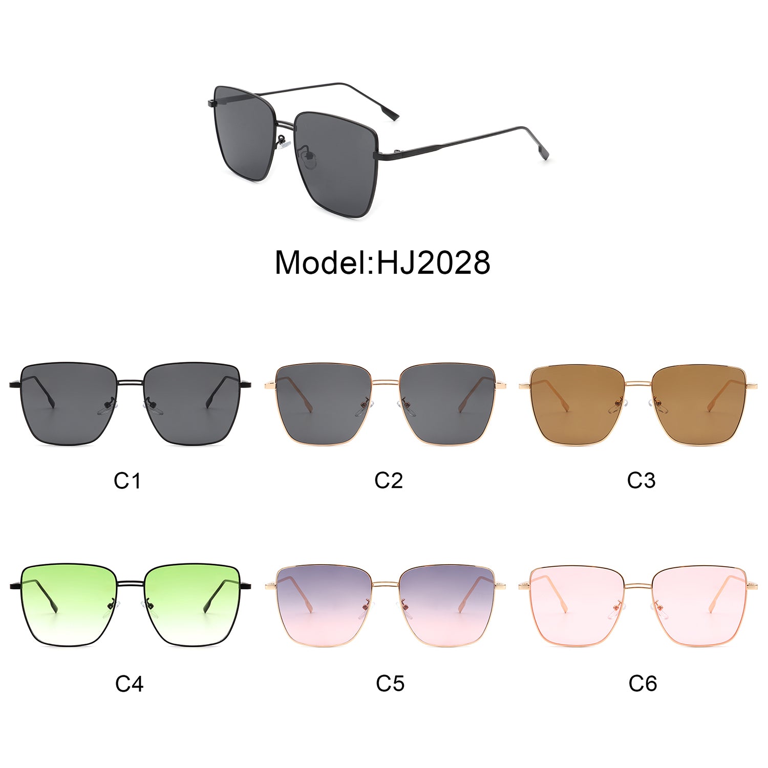 HJ2028 - Women Square Metal Oversize Fashion Sunglasses