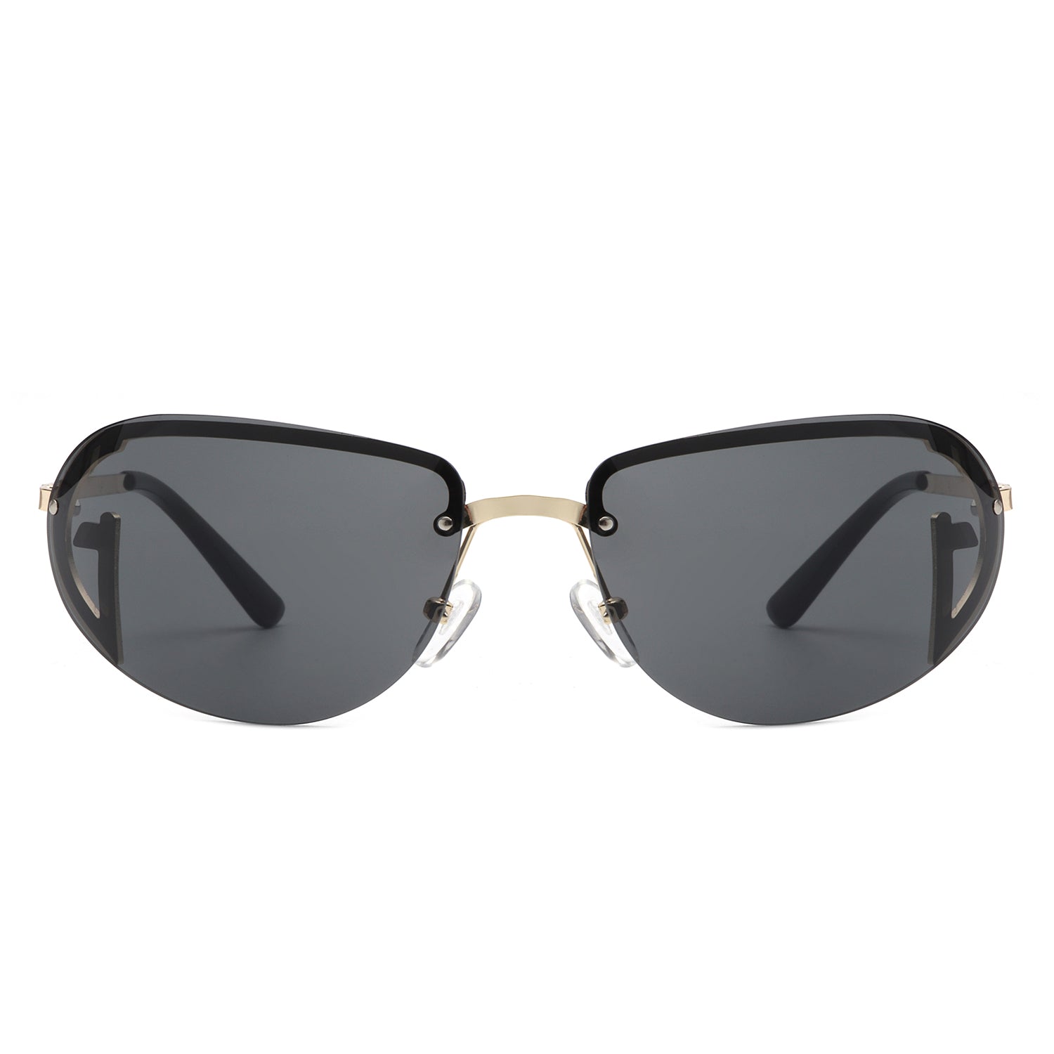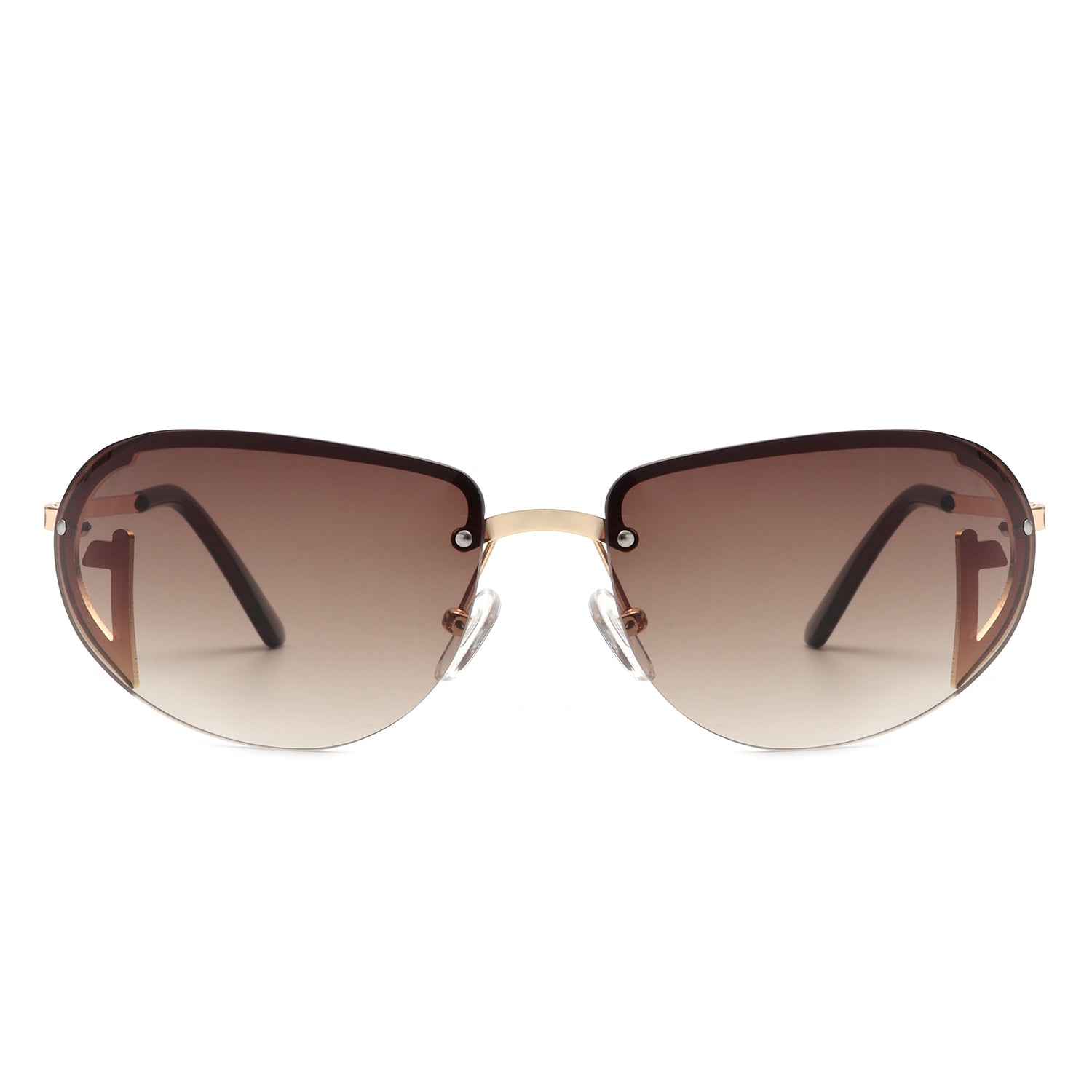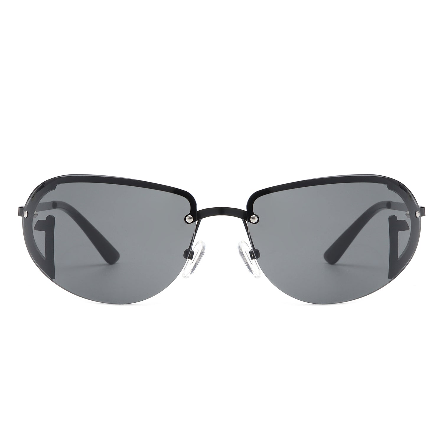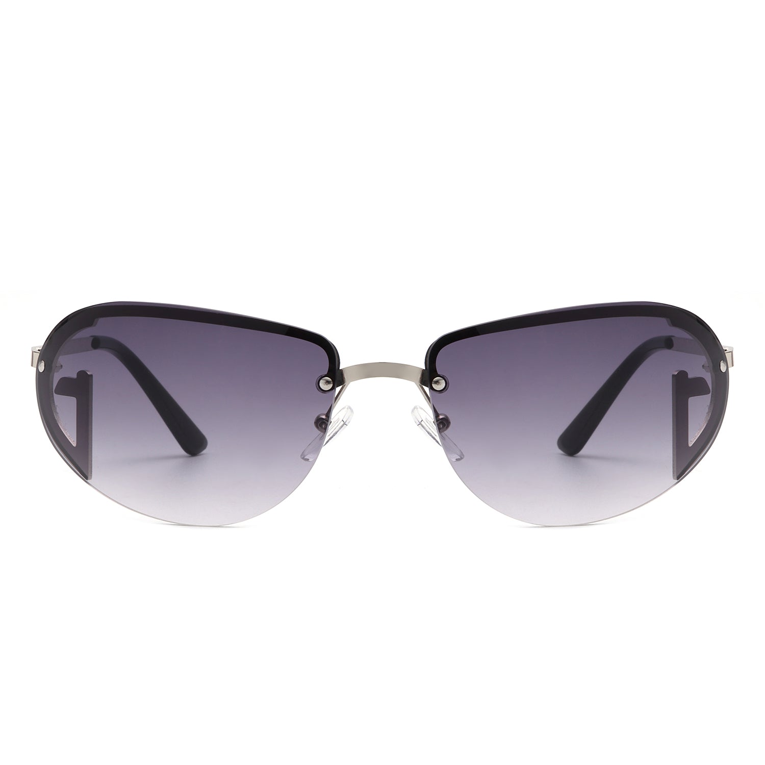 HJ2047 - Retro Rimless Oval Tinted Fashion Round Wholesale Sunglasses