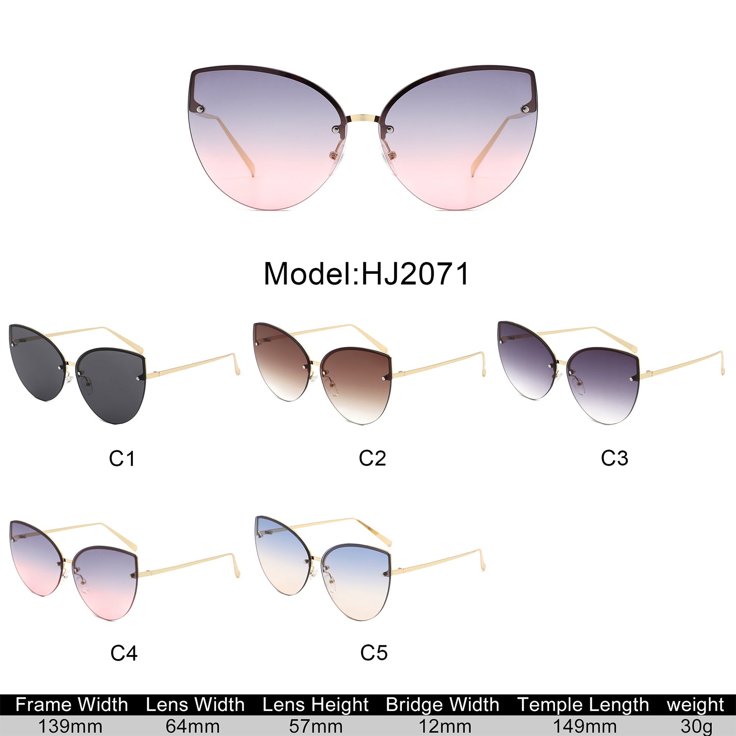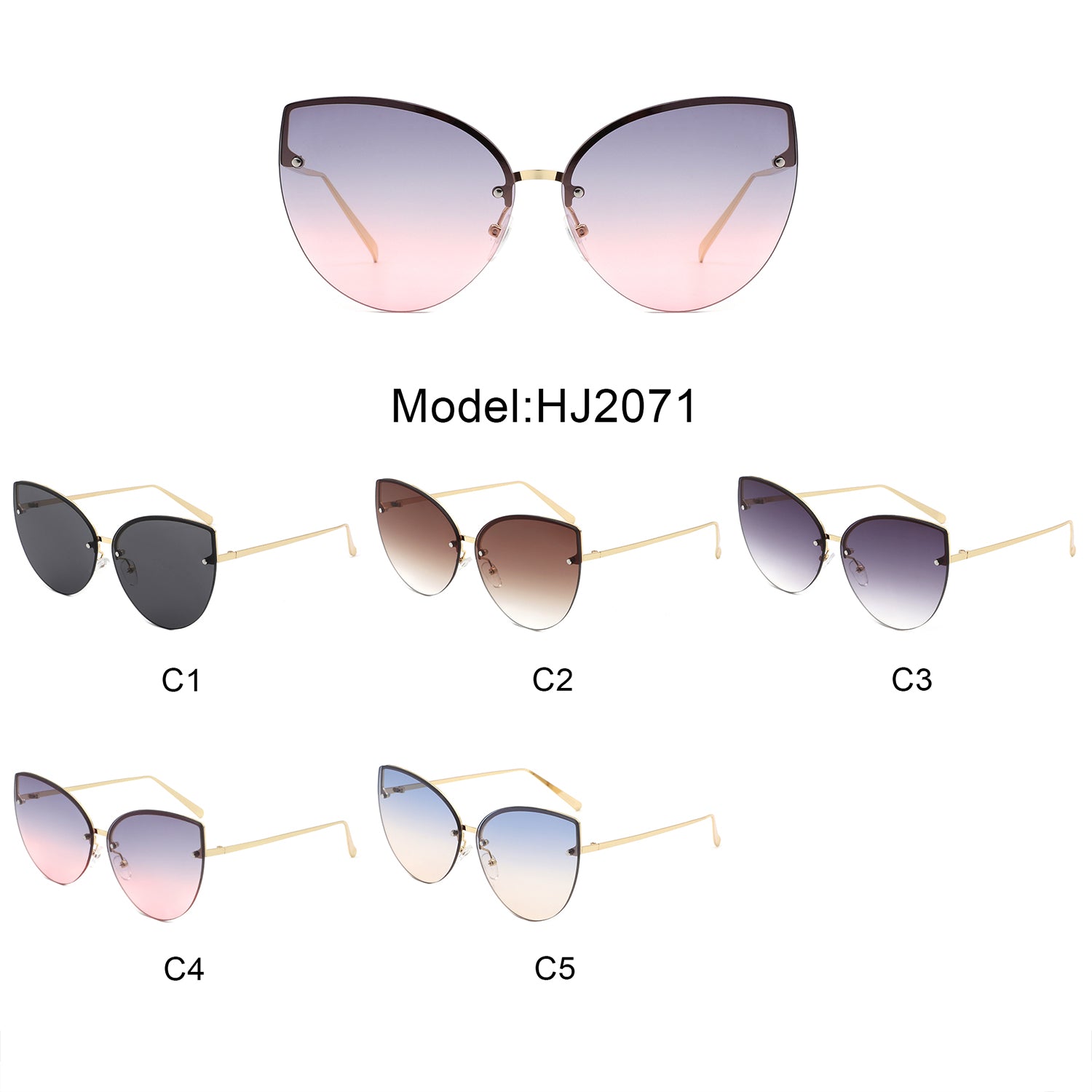 HJ2071 - Women Cat Eye Rimless Chic Fashion Wholesale Sunglasses