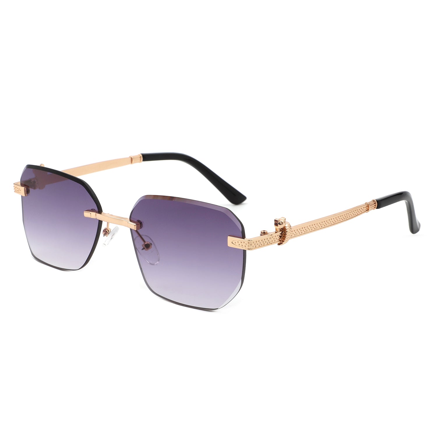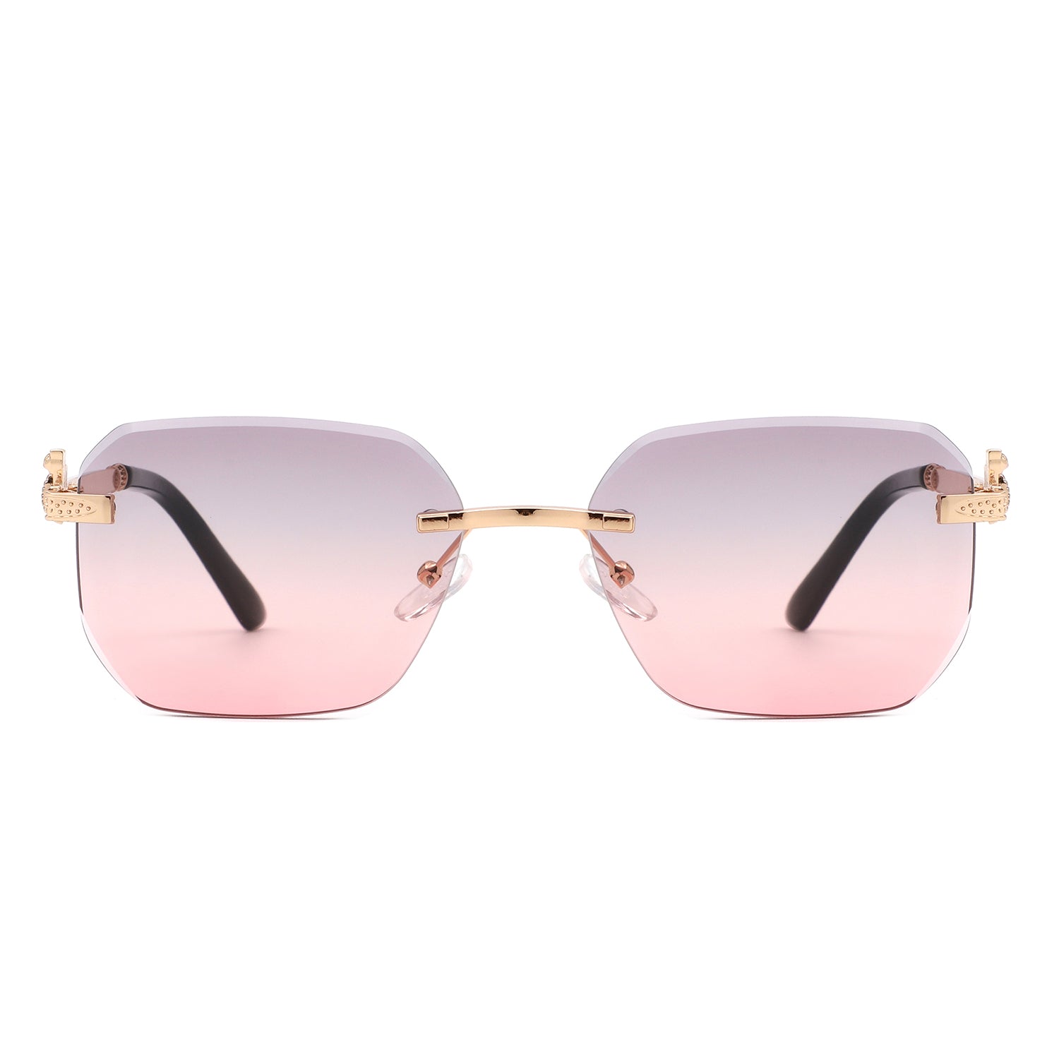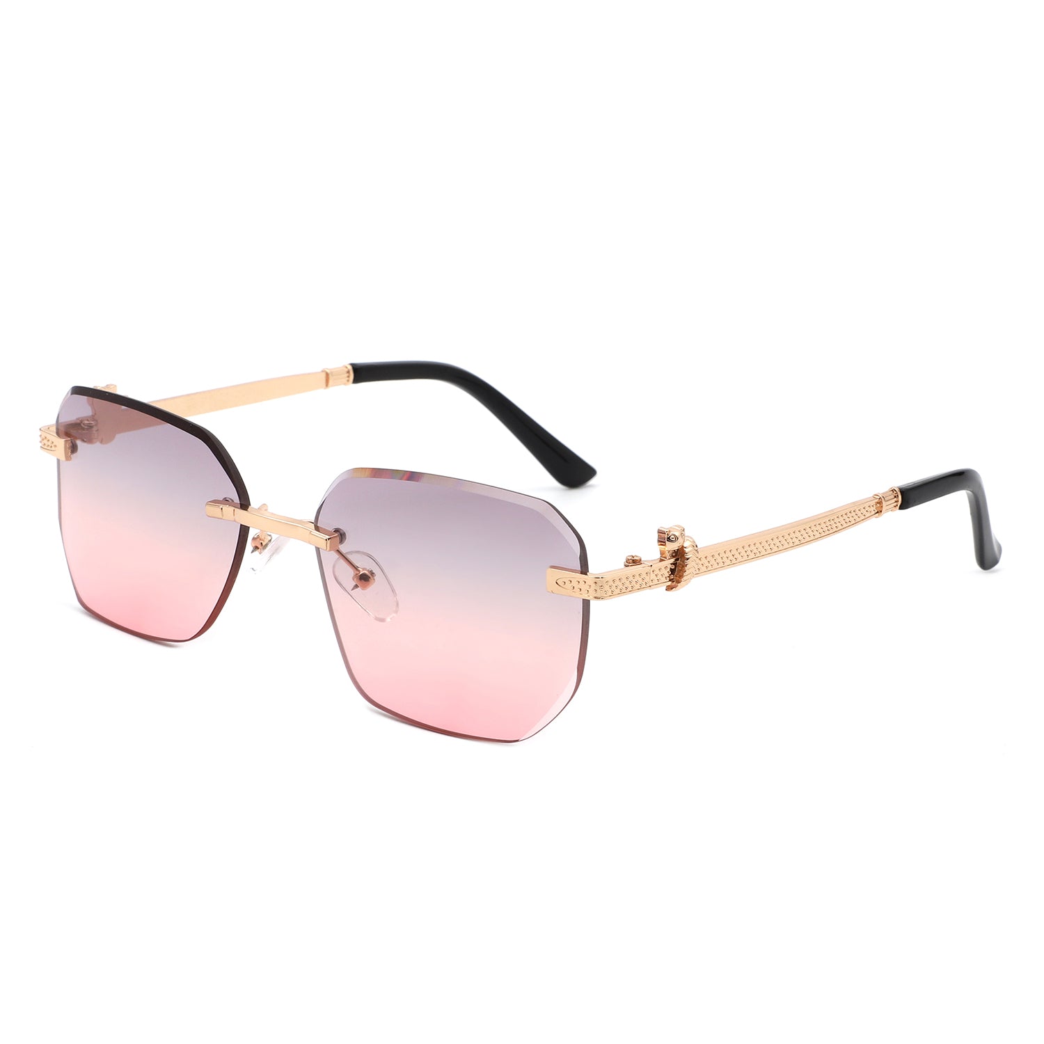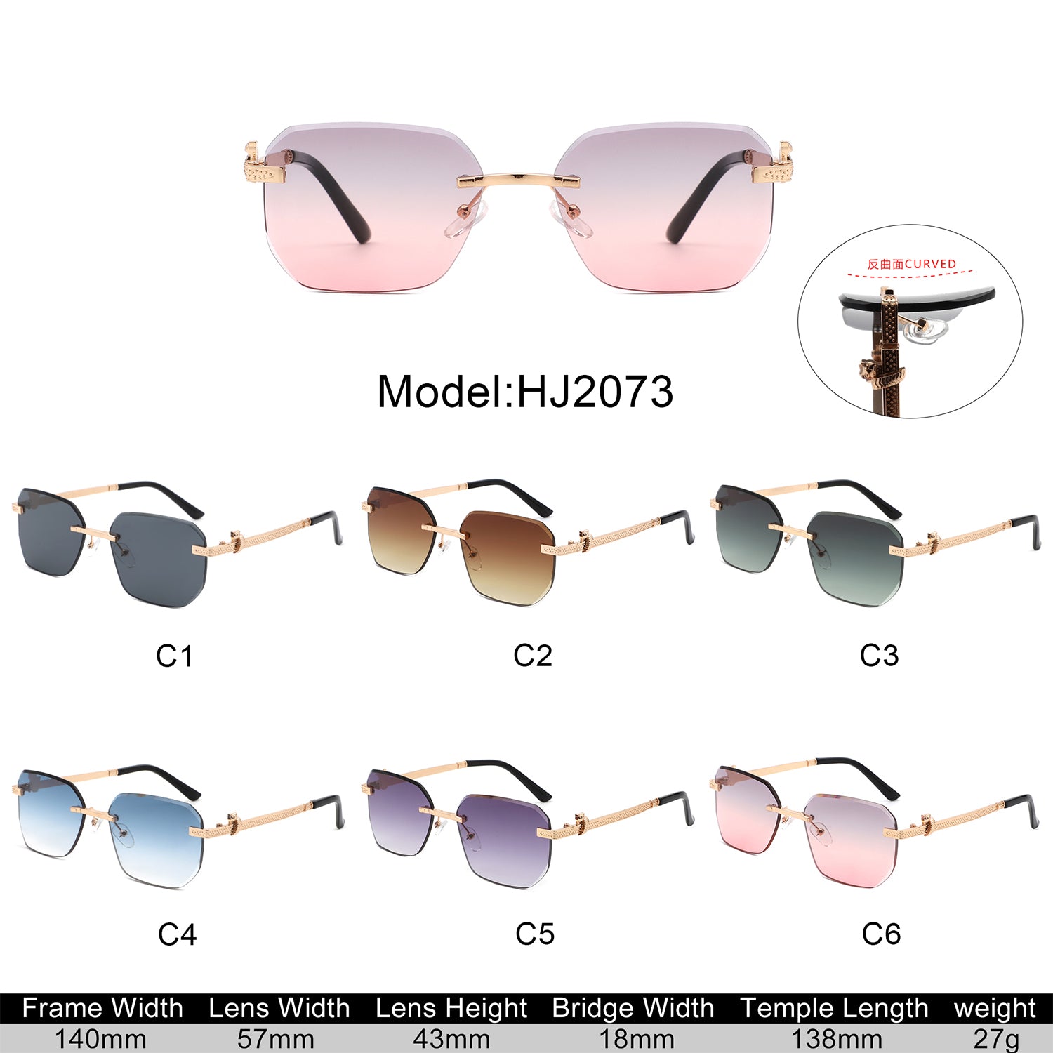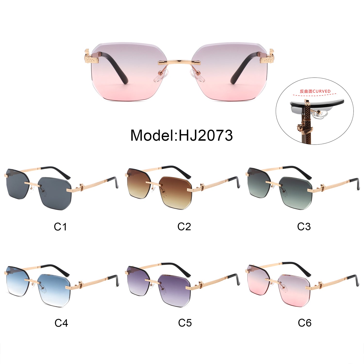 HJ2073 - Rectangle Rimless Curved Tinted Square Wholesale Sunglasses