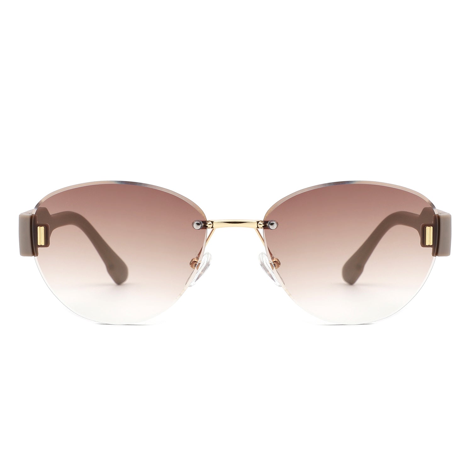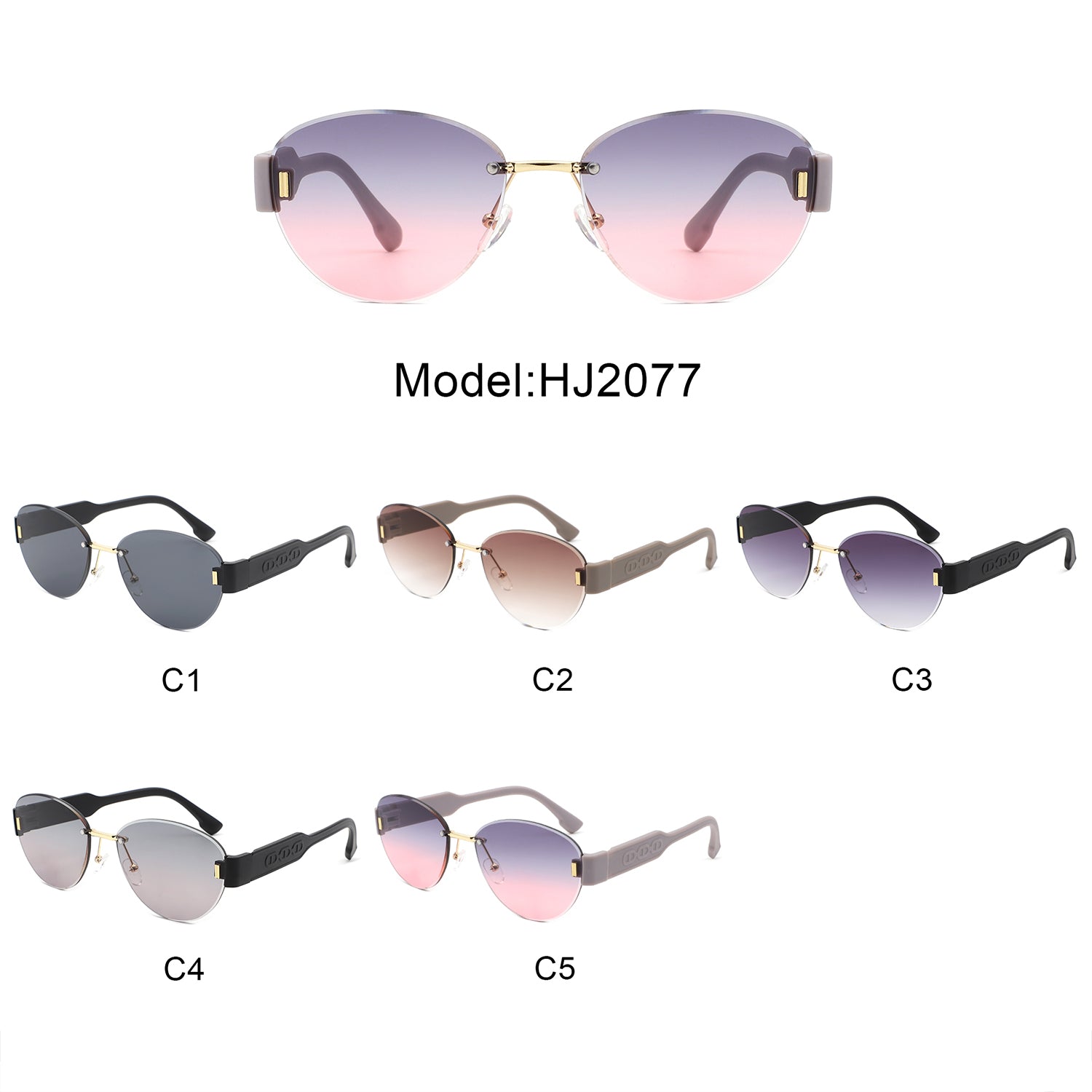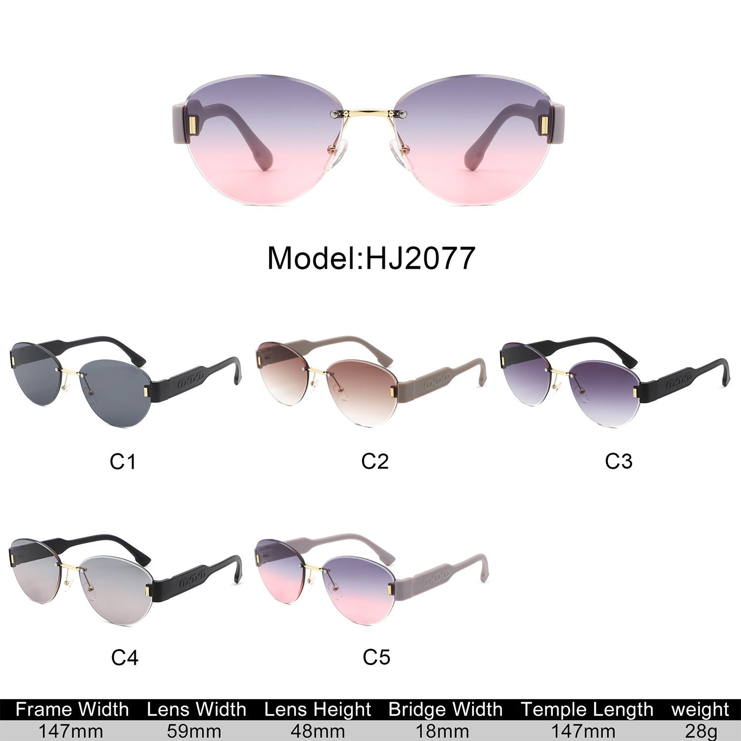 HJ2077 - Oval Rimless Tinted Chic Round Fashion Women Wholesale Sunglasses