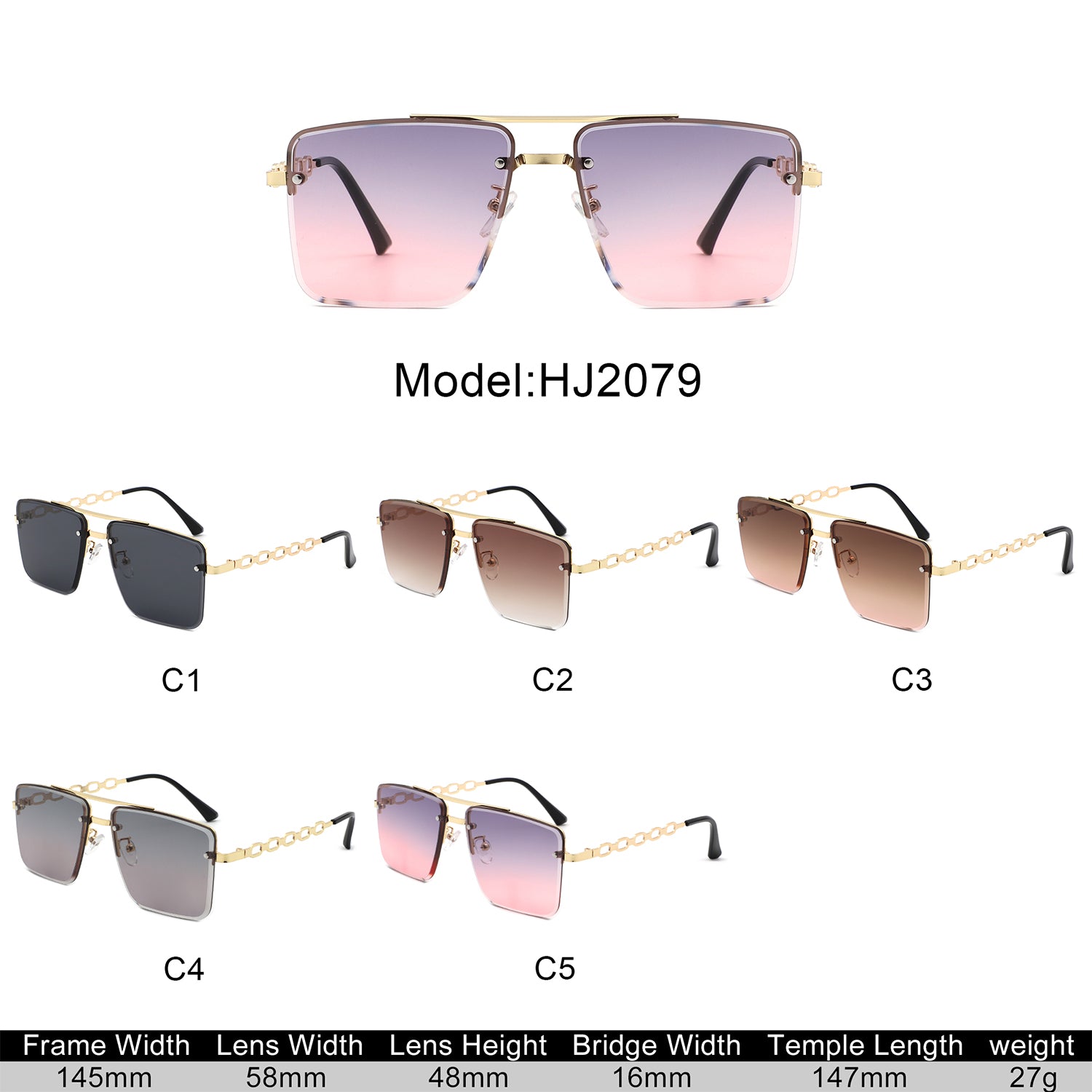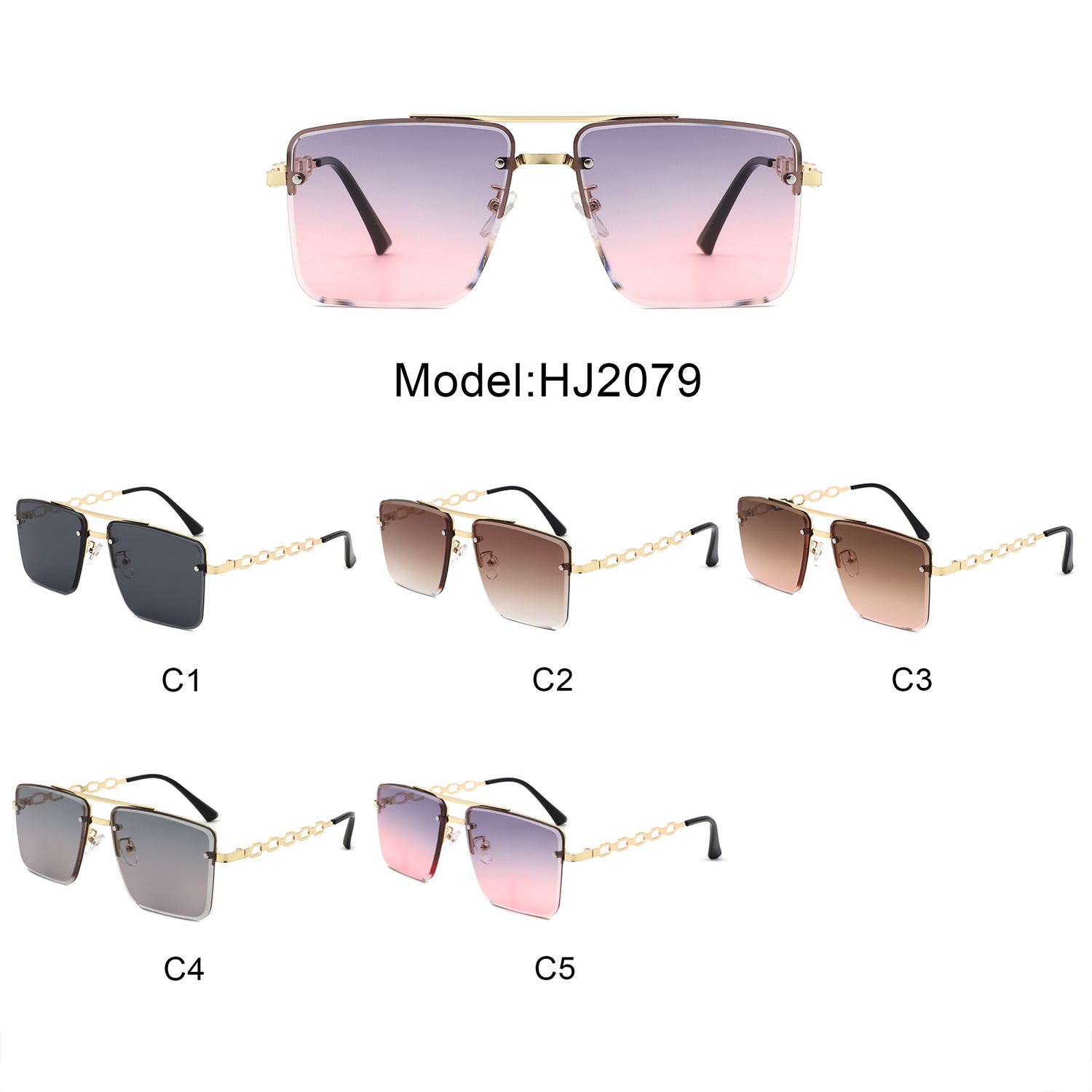 HJ2079 - Rimless Flat-Top Chain-Link Fashion Wholesale Sunglasses