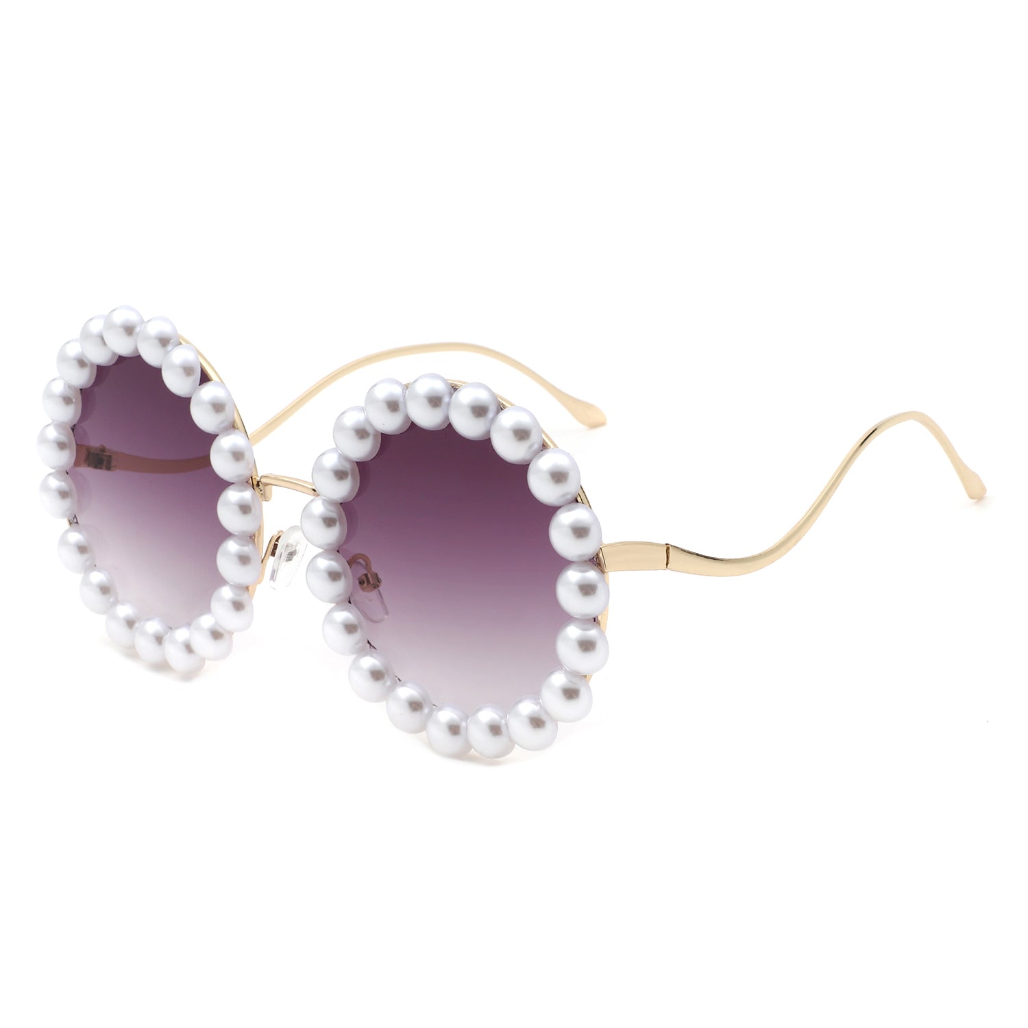 HJ2086 - Round Fashion Pearl Luxury Wavy Frame Women Wholesale Sunglasses