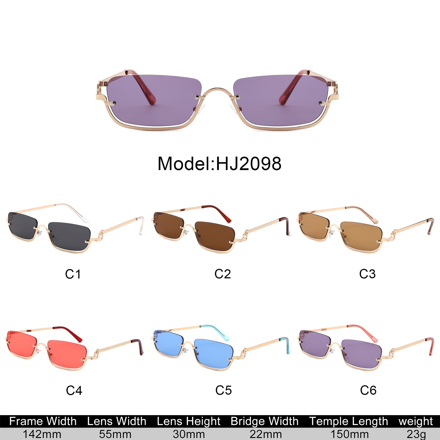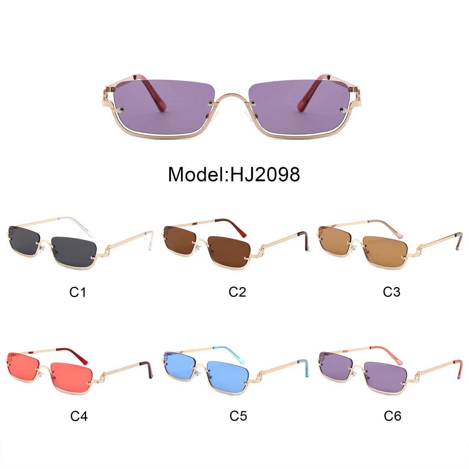 HJ2098 - Rectangle Retro Semi-Rimless Modern Tinted Wholesale Sunglasses