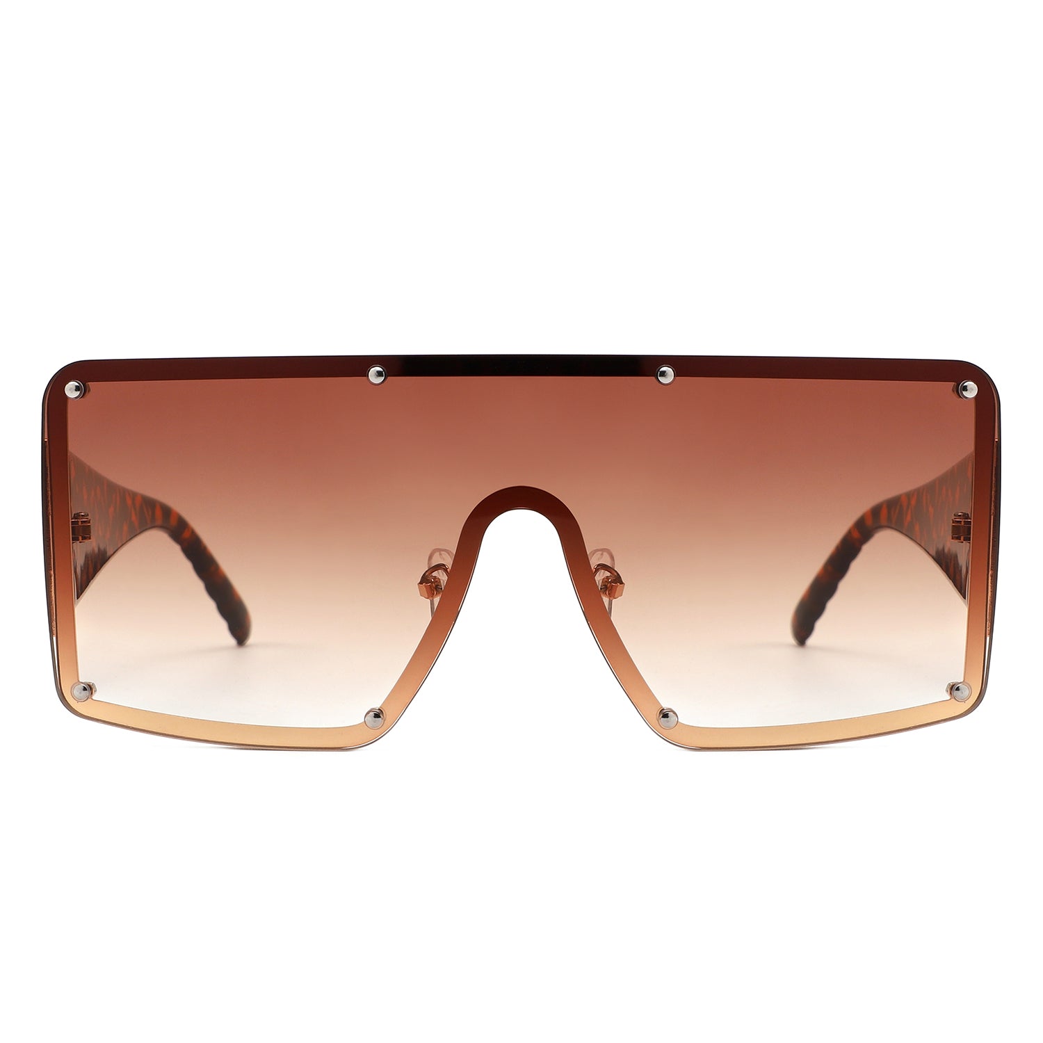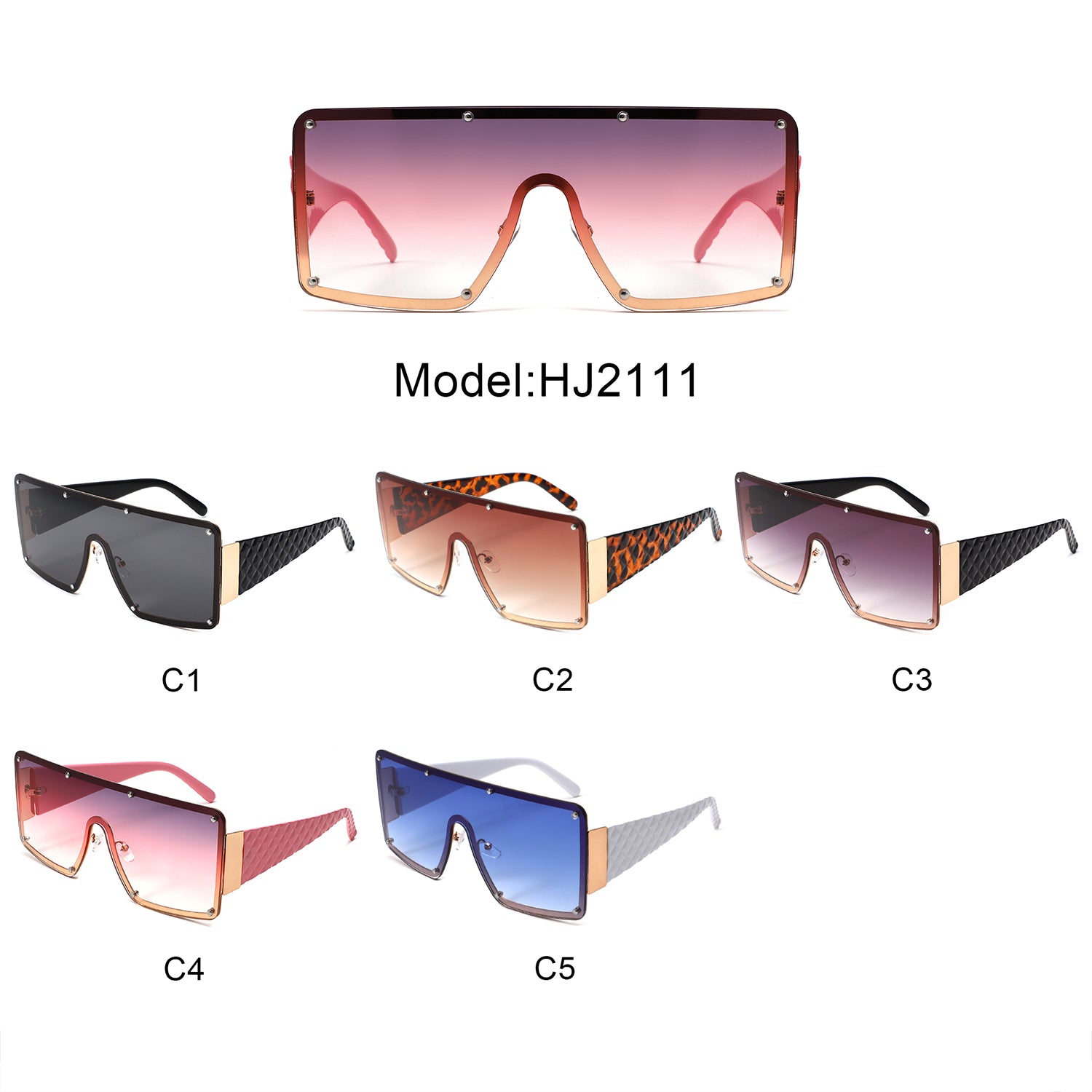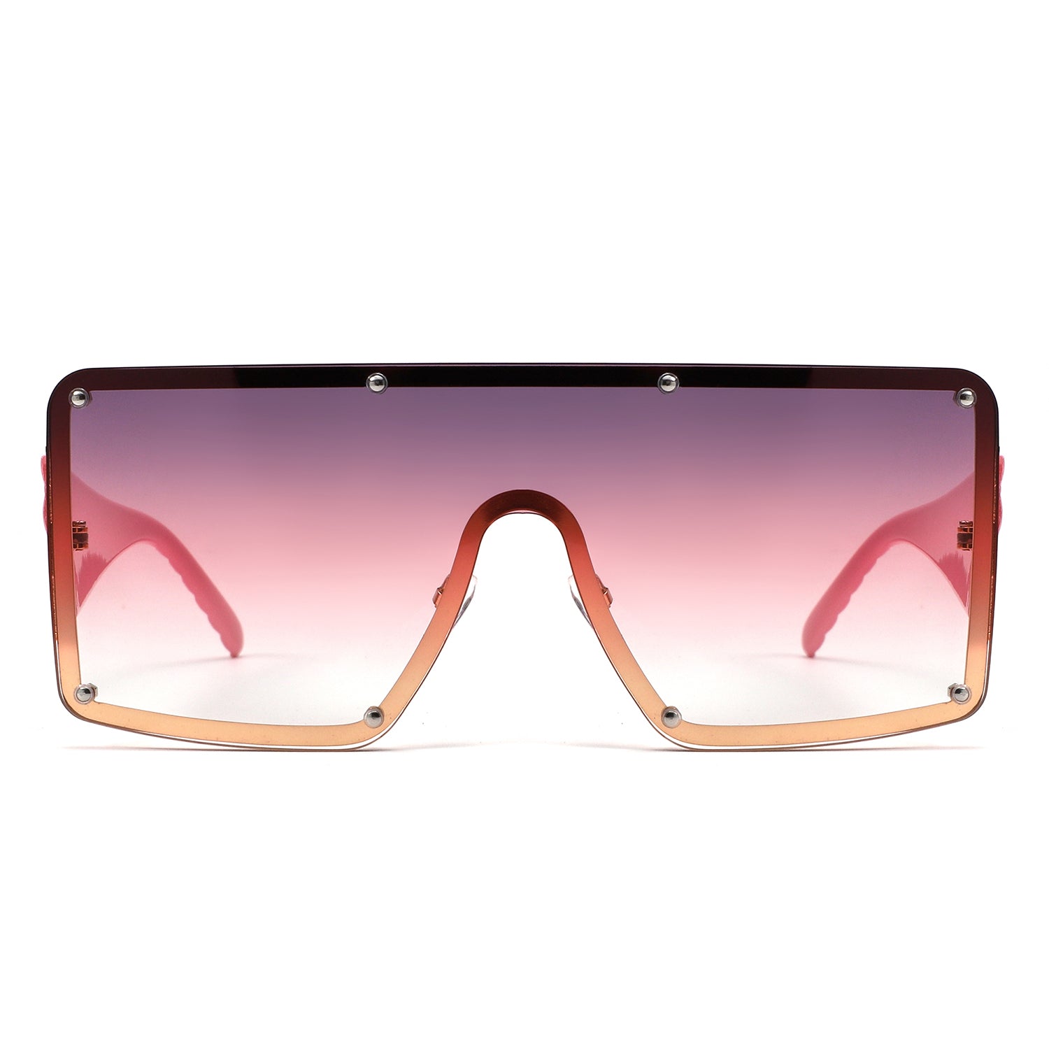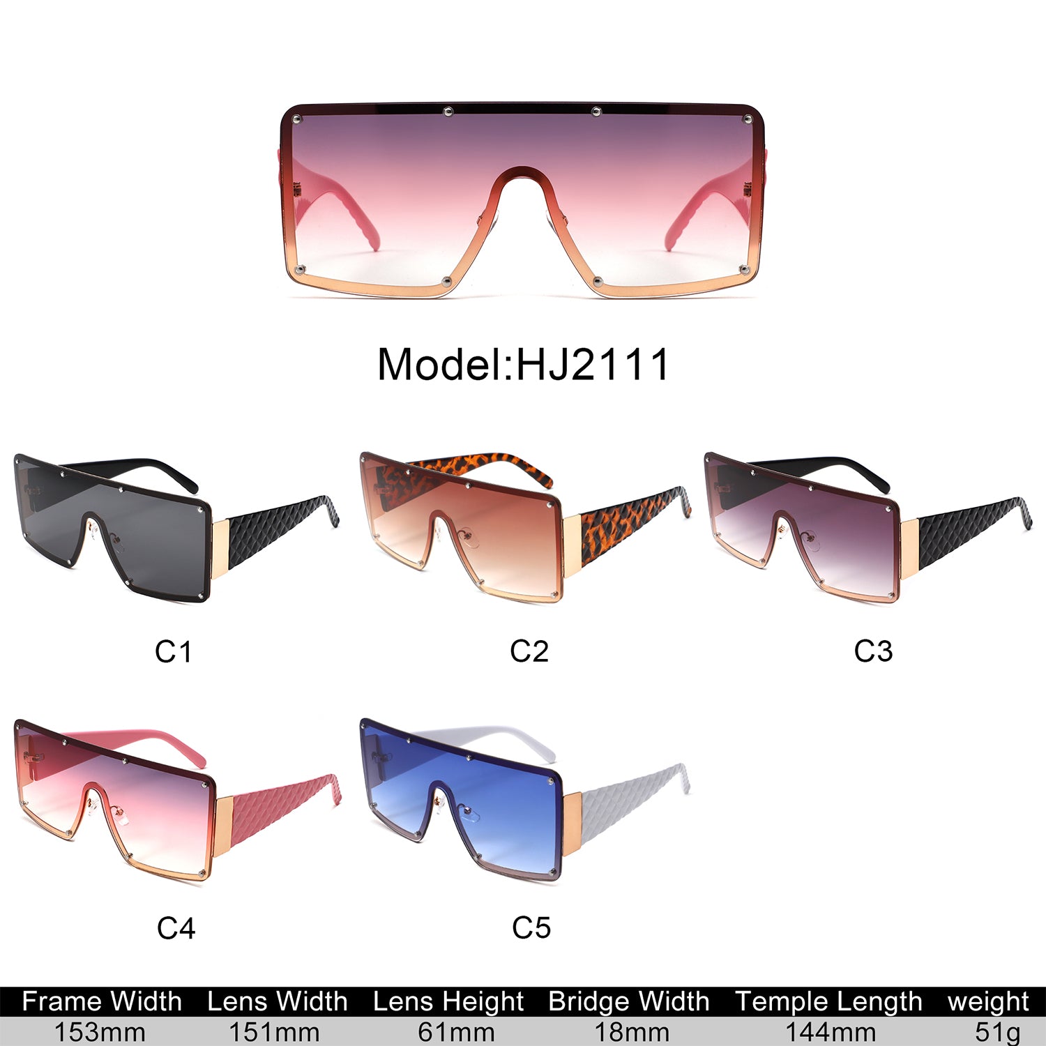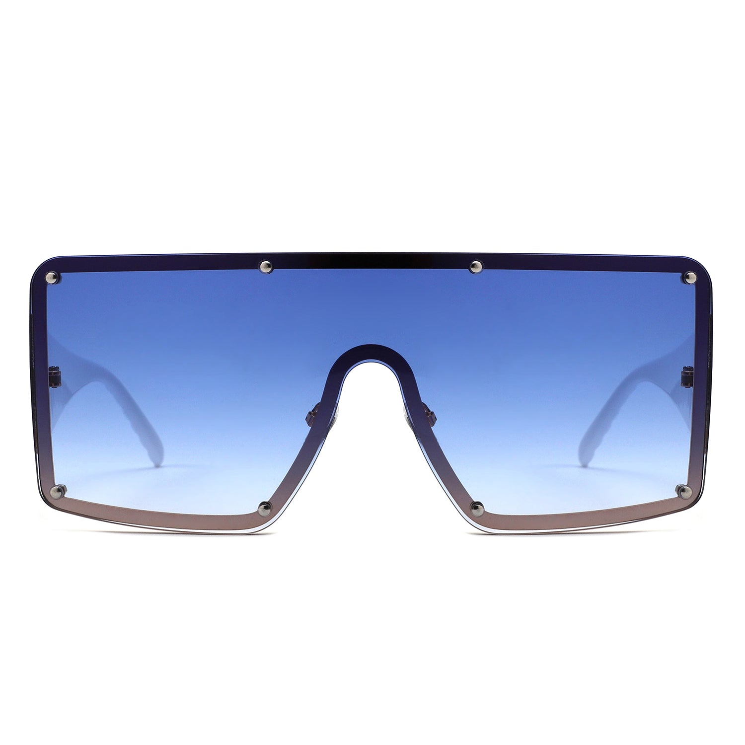 HJ2111 - Oversized Flat Top Stud Trim Shield Wholesale Sunglasses