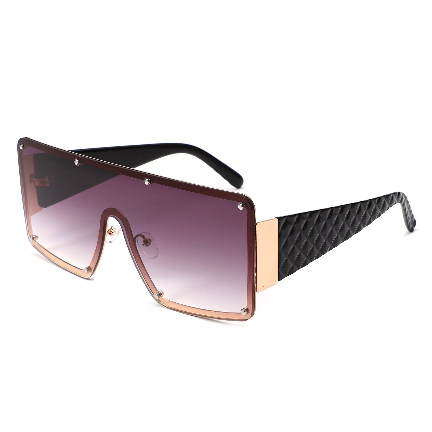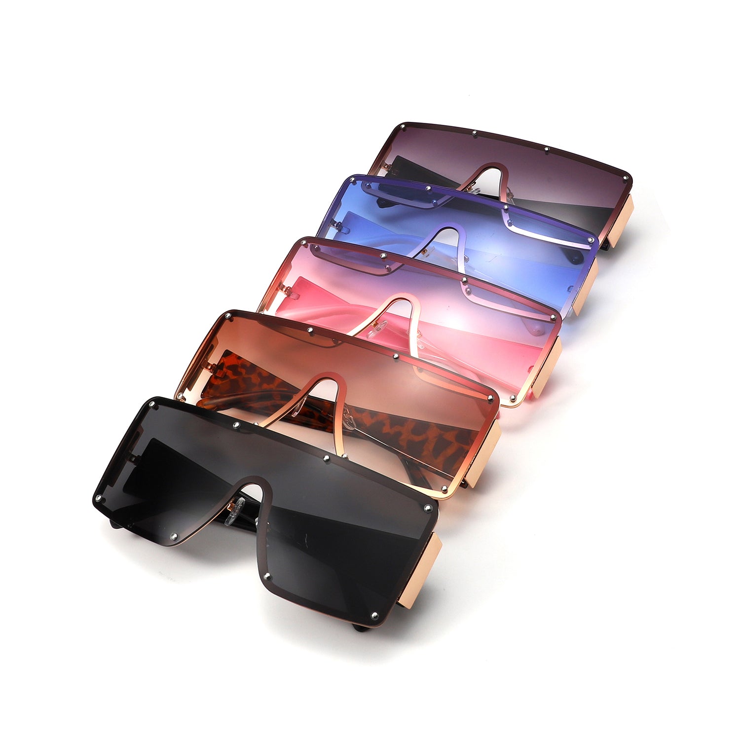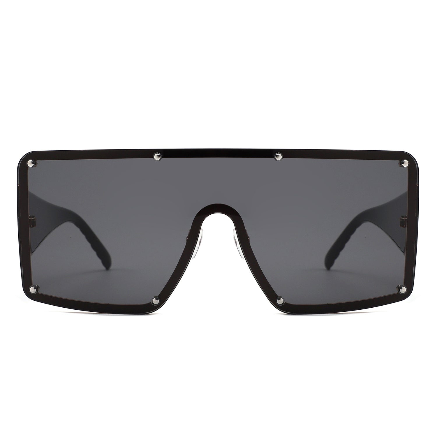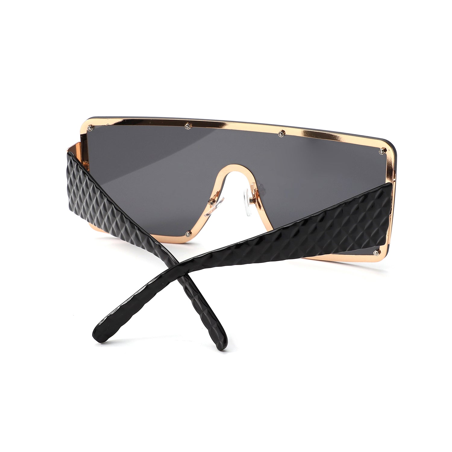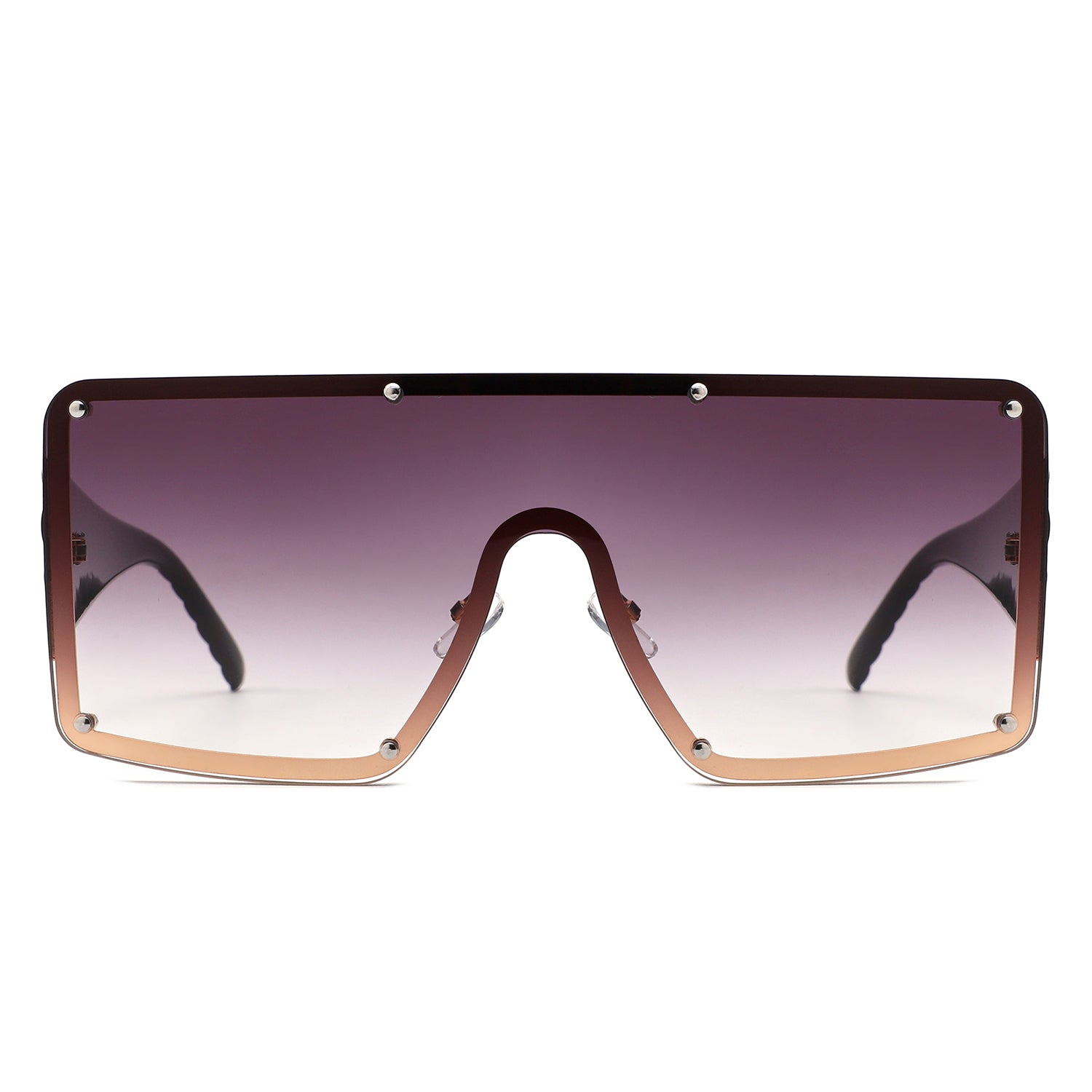 HJ2111 - Oversized Flat Top Stud Trim Shield Wholesale Sunglasses
