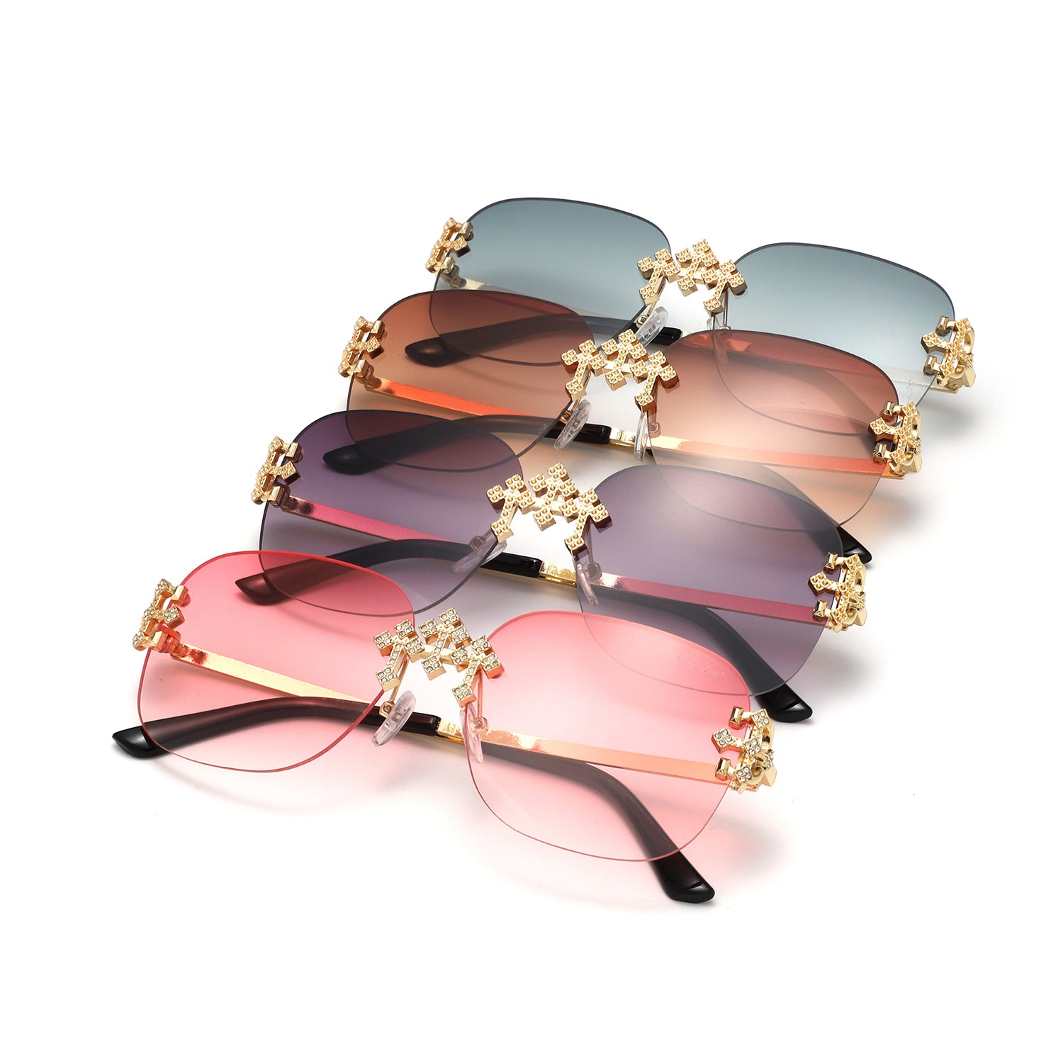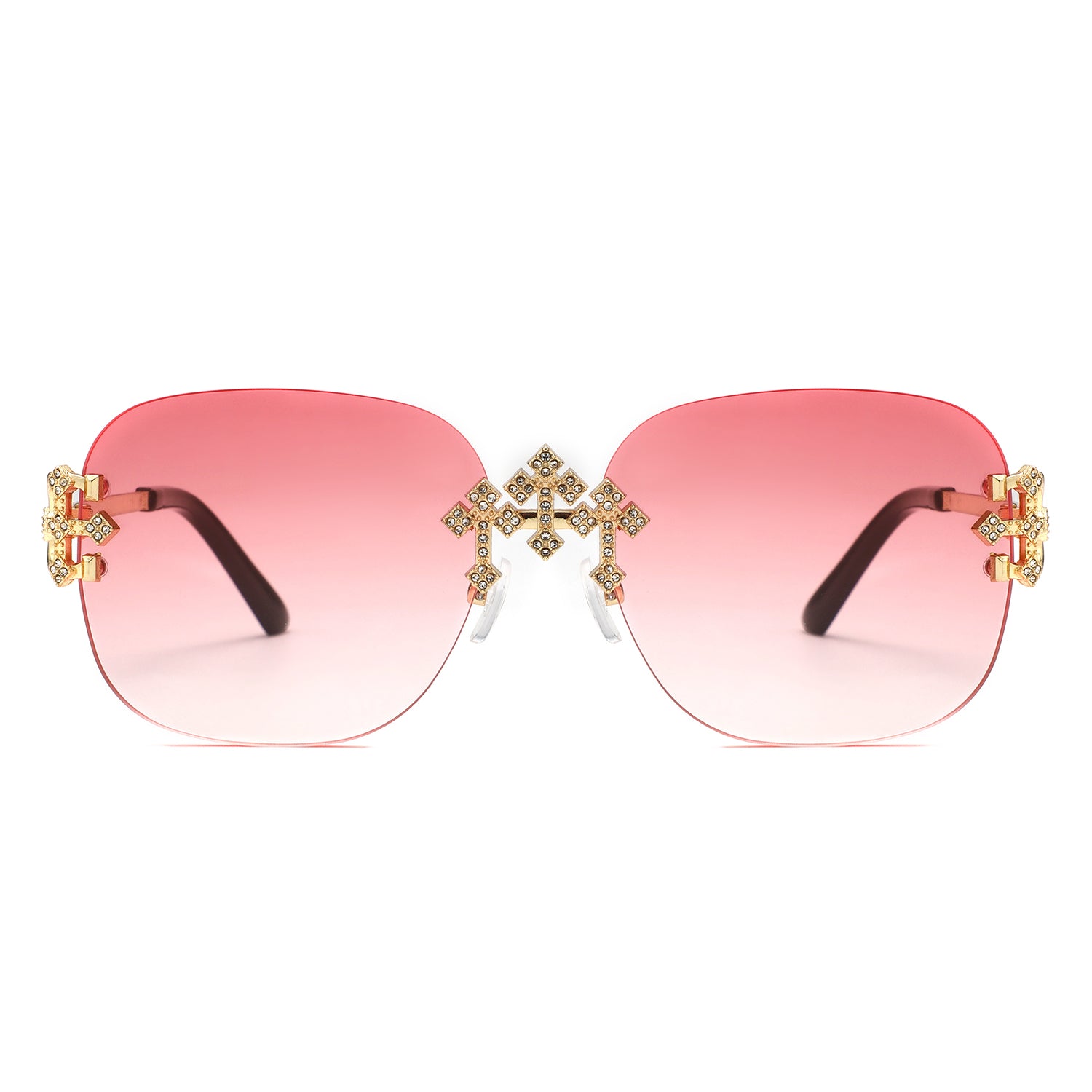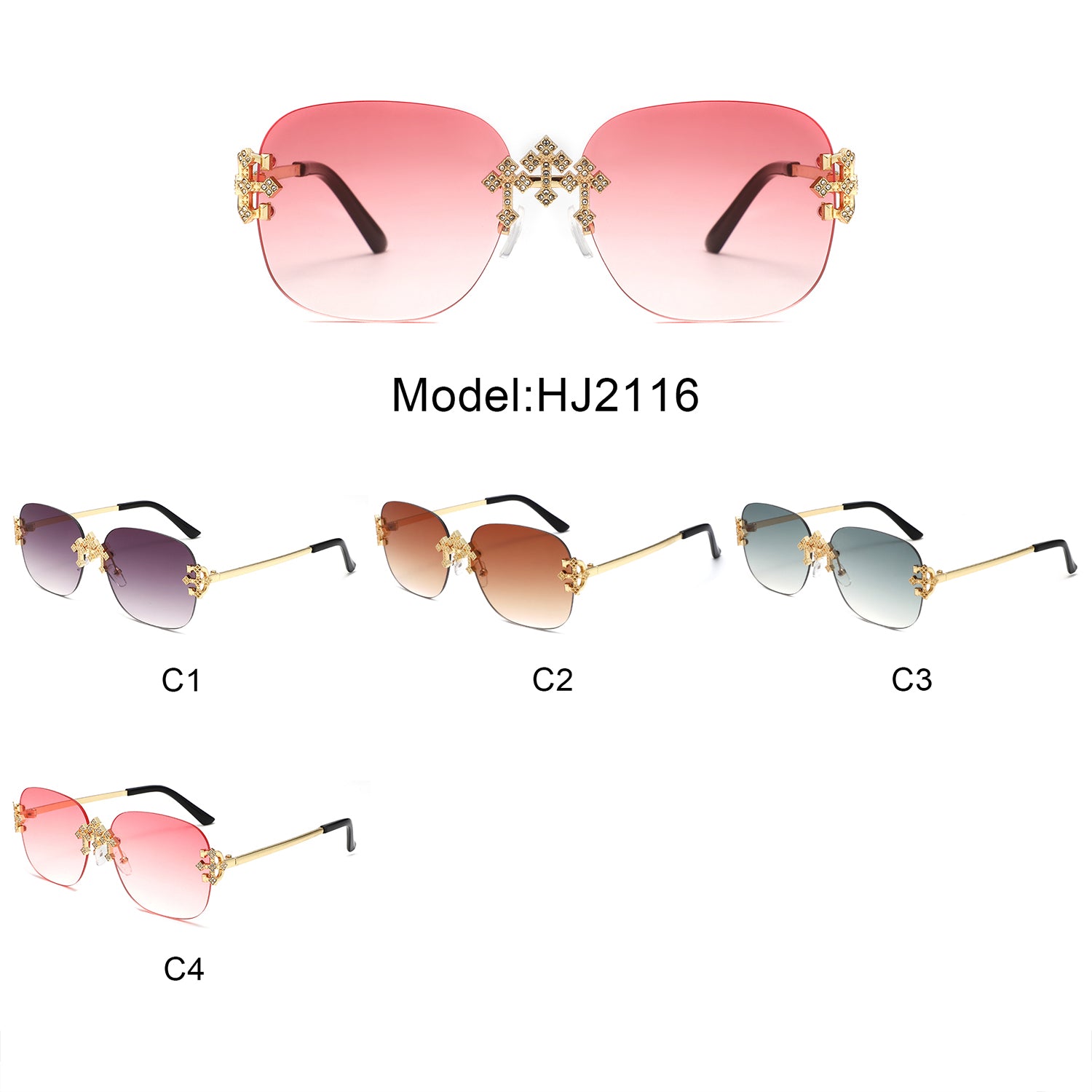HJ2116 - Rimless Luxurious Square Jeweled Temple Fashion Sunglasses