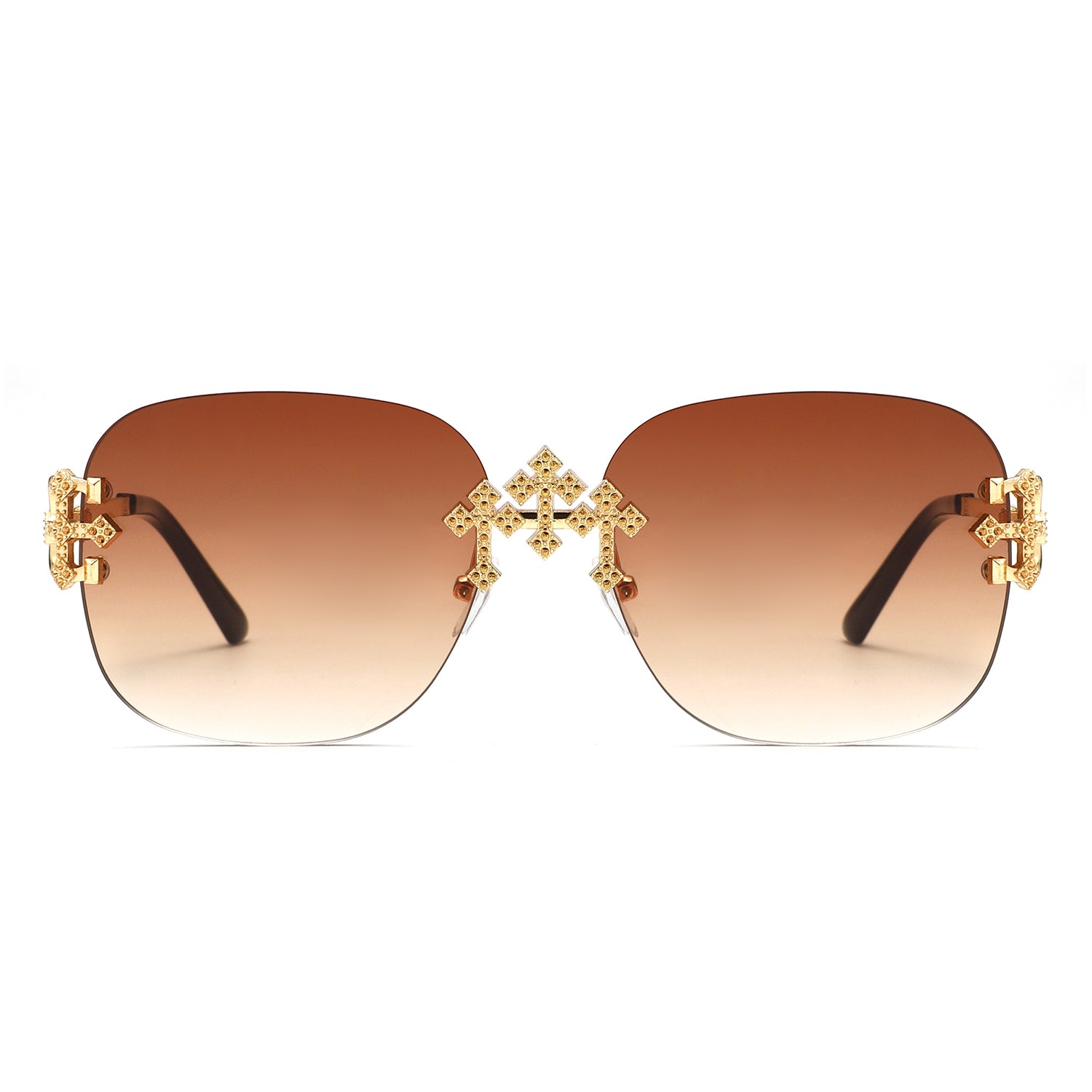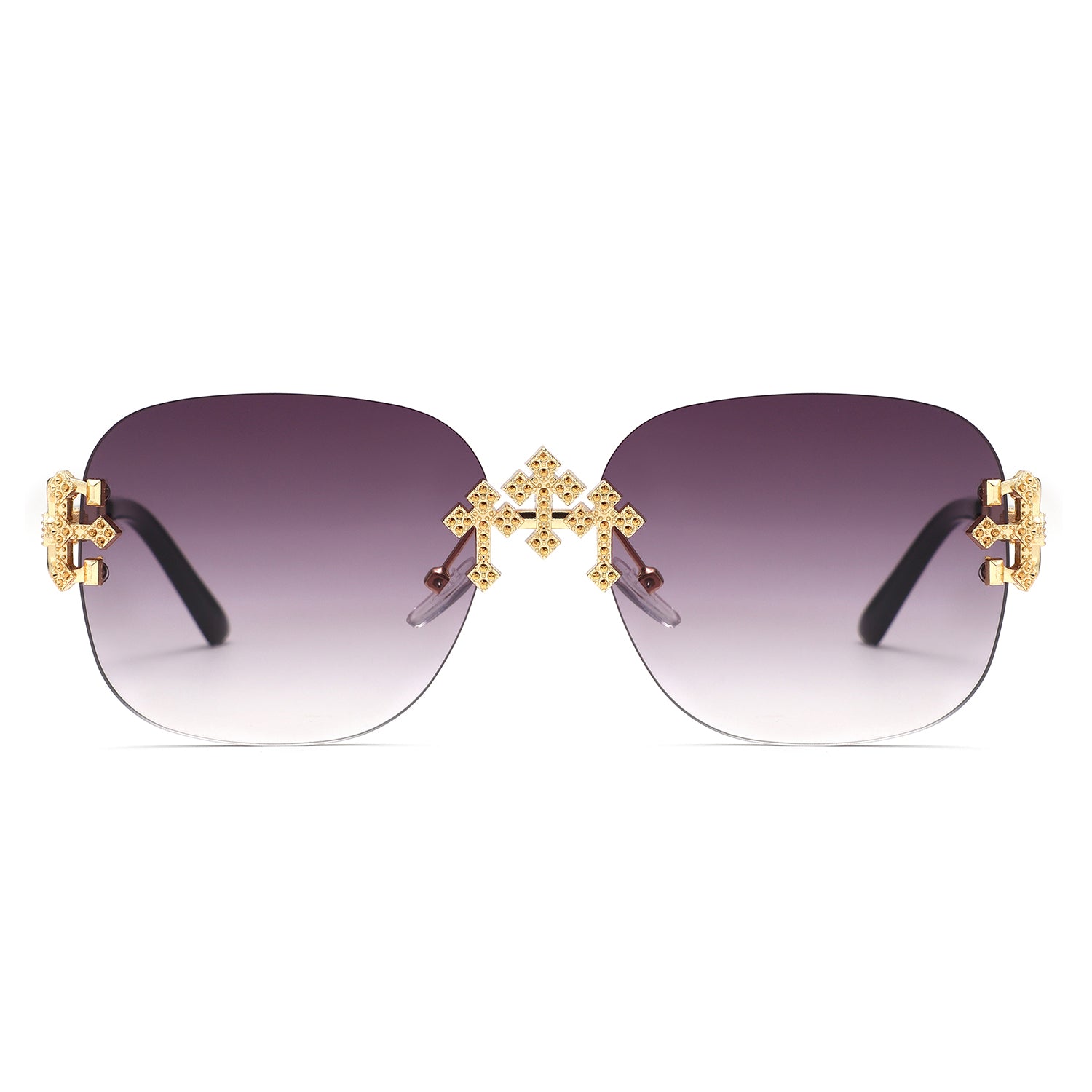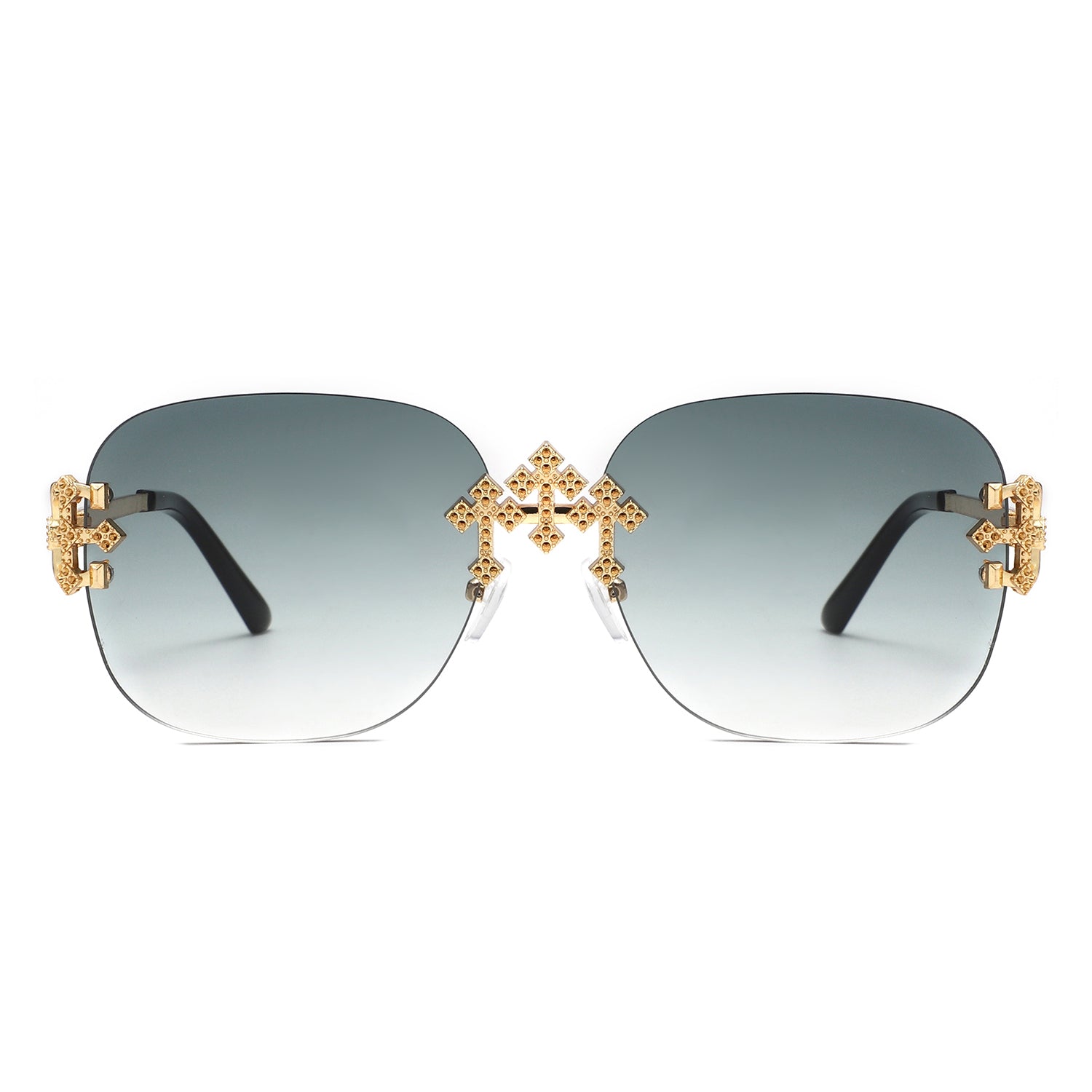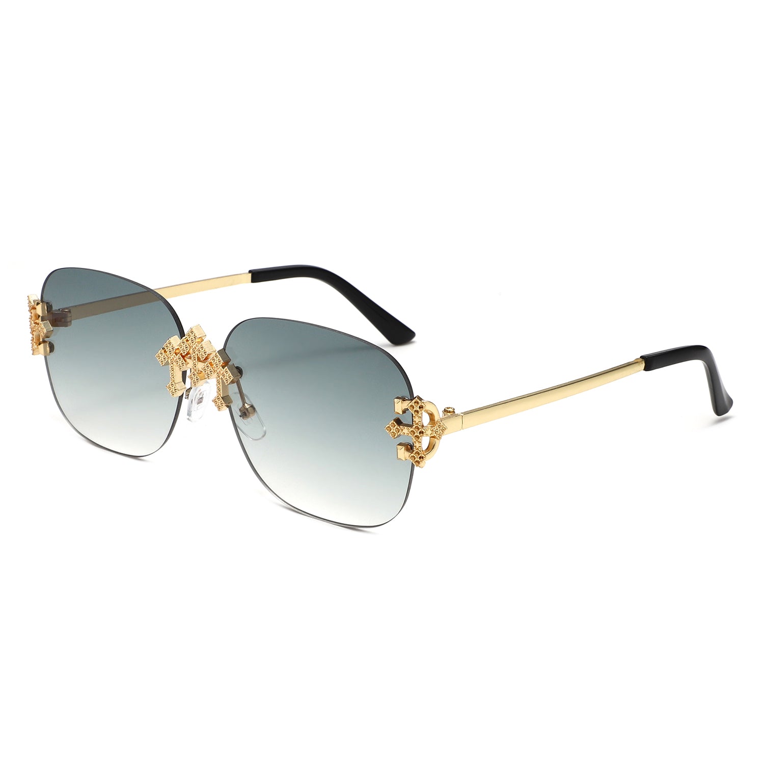 HJ2116 - Rimless Luxurious Square Jeweled Temple Fashion Sunglasses