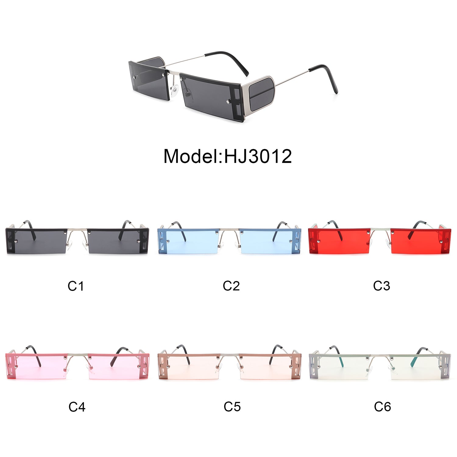 HJ3012 - Rectangle Retro Narrow Slim Flat Top Tinted Fashion Vintage Sunglasses