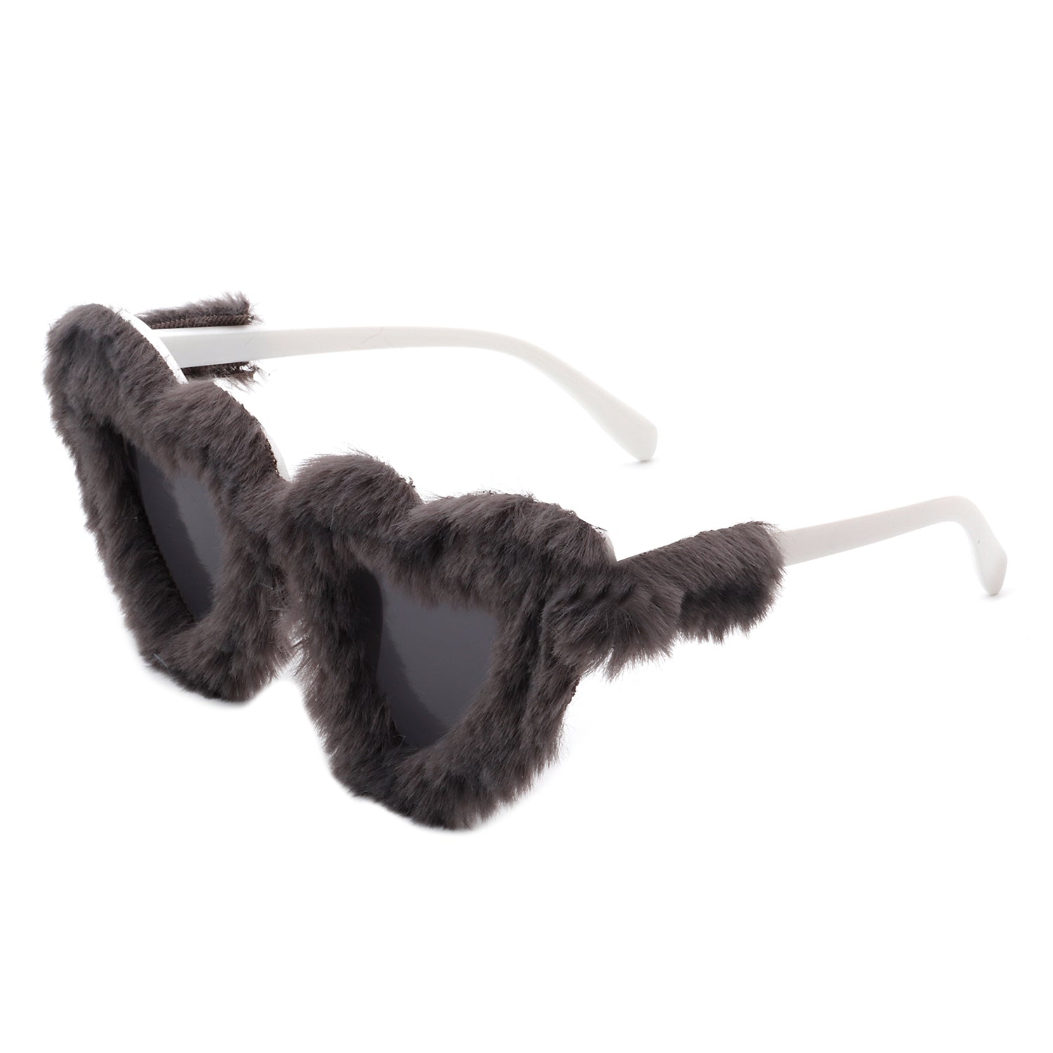 HS1115 - Women Fuzzy Plush Fashion Fur Heart Shape Fluffy Sunglasses