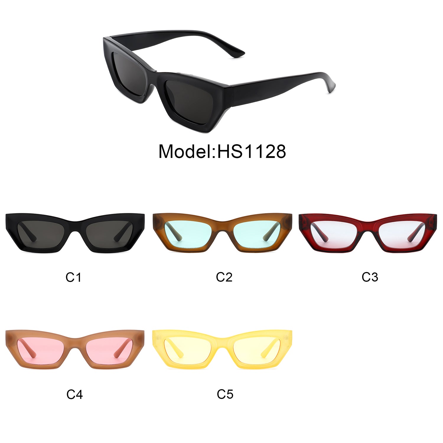 HS1128 - Rectangle Slim Retro Narrow Fashion Square Sunglasses