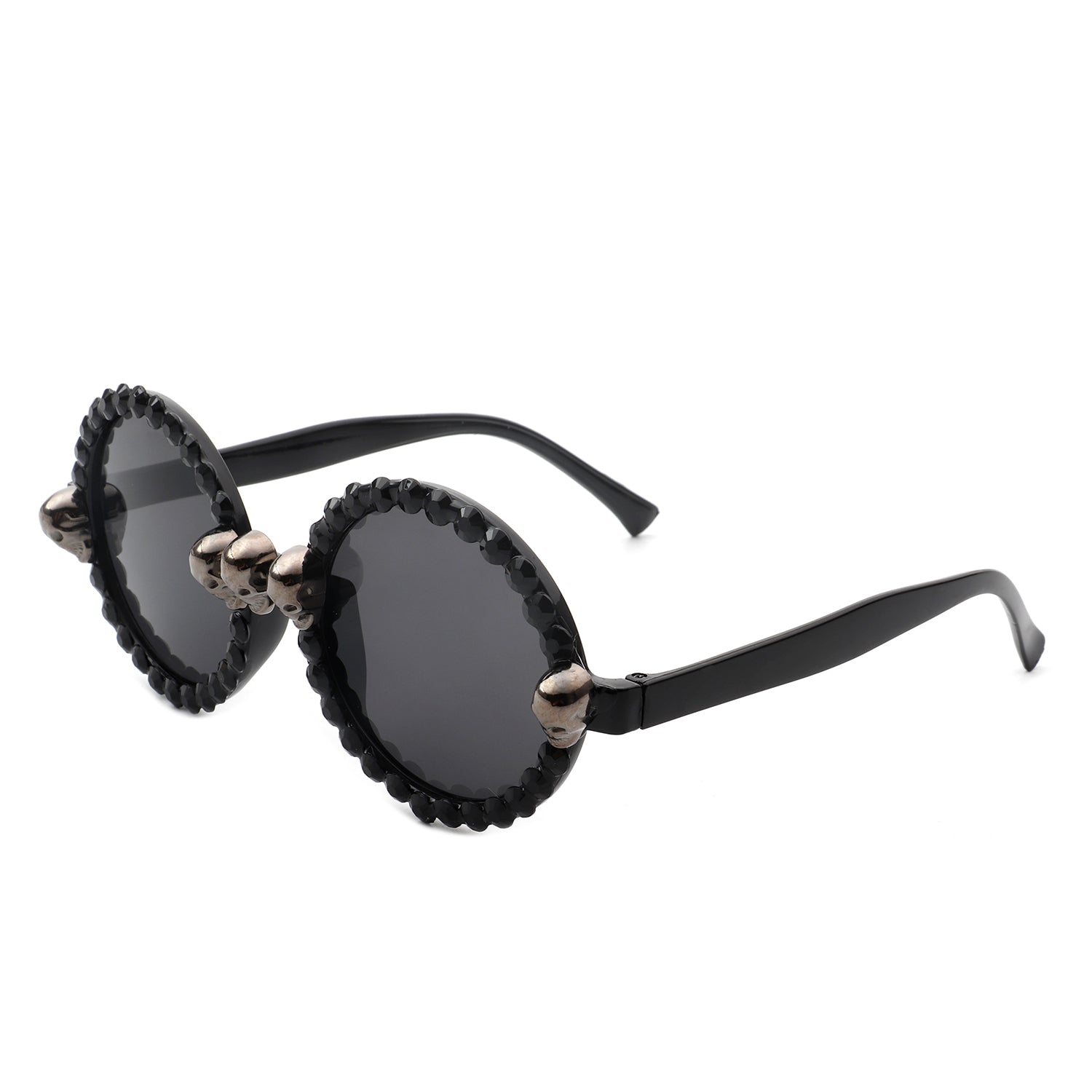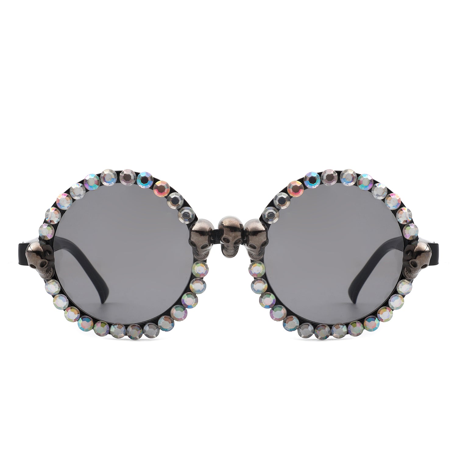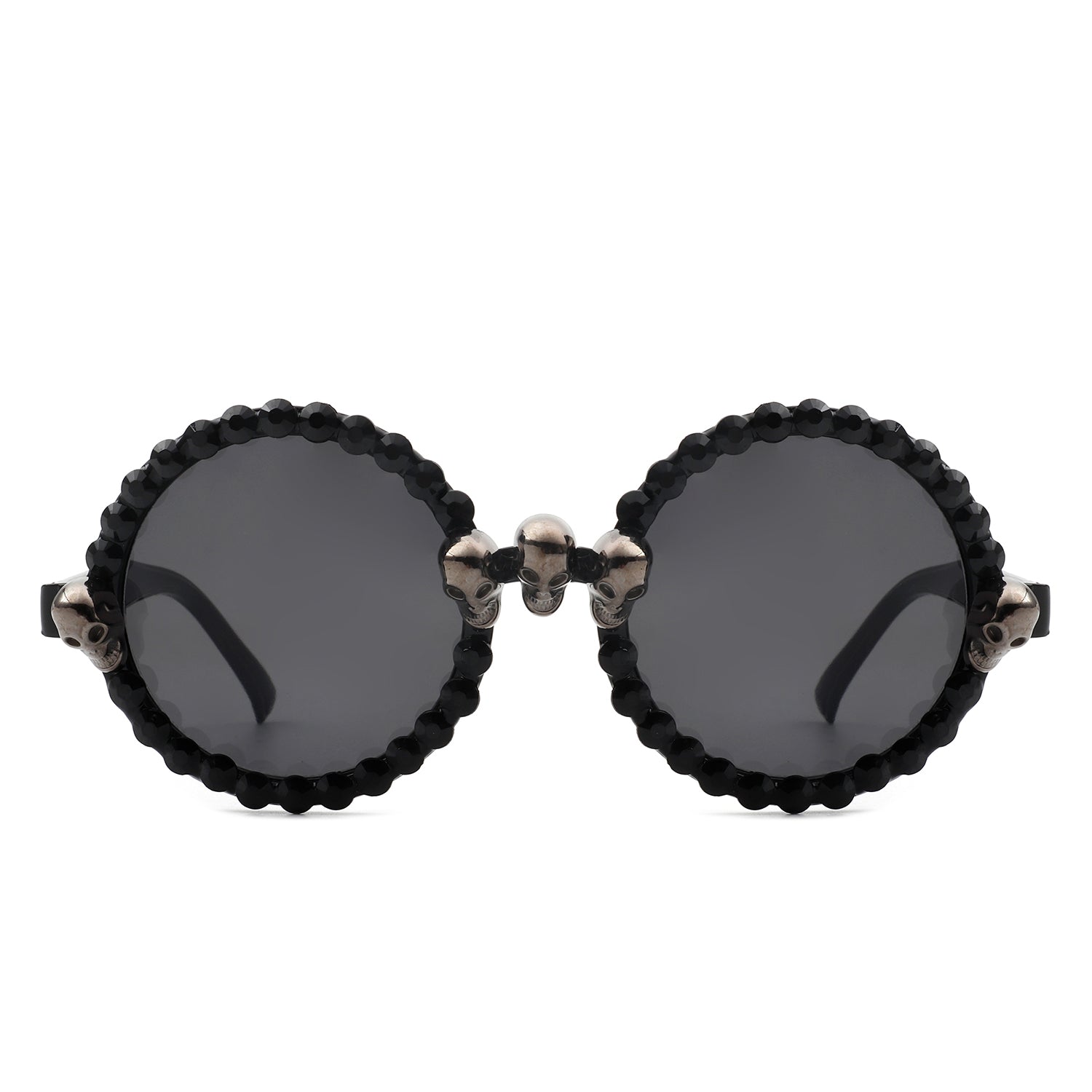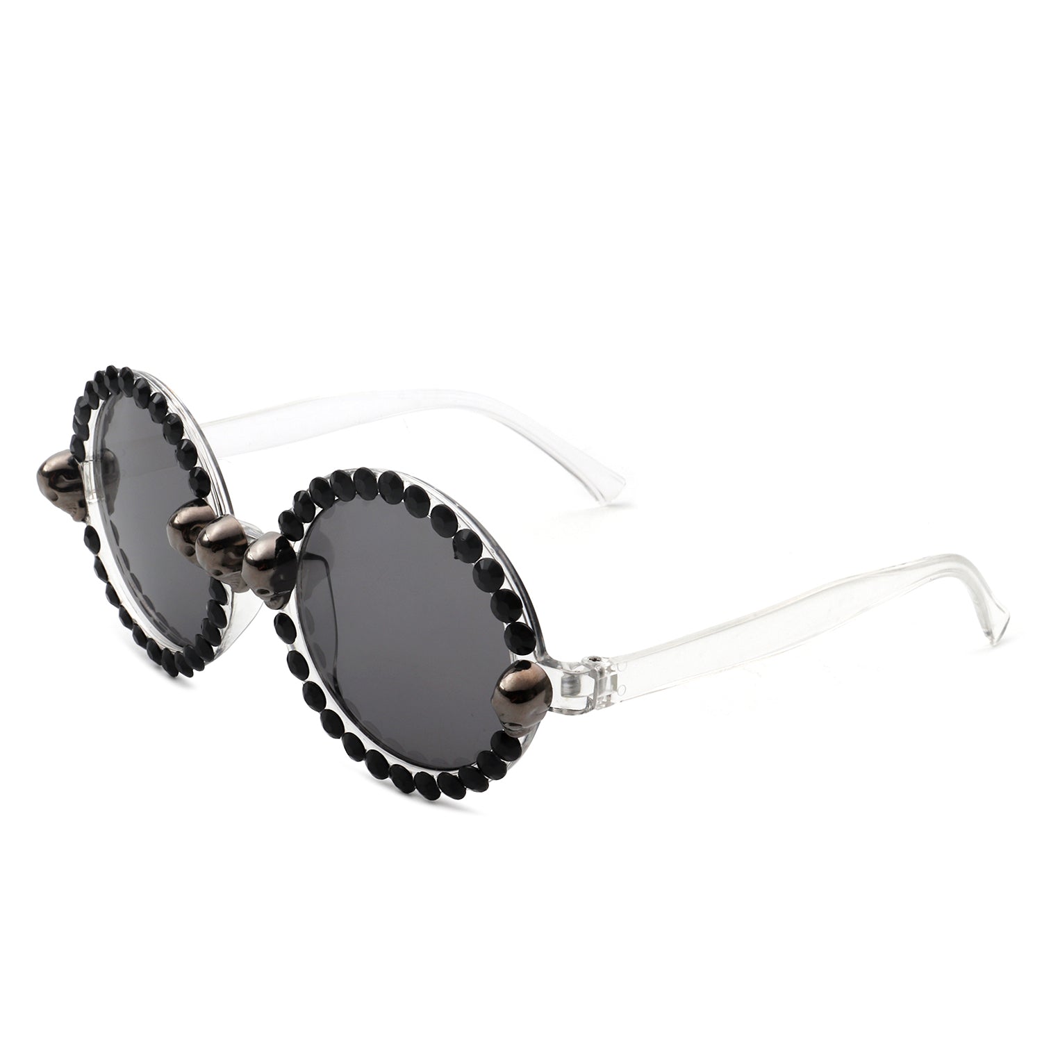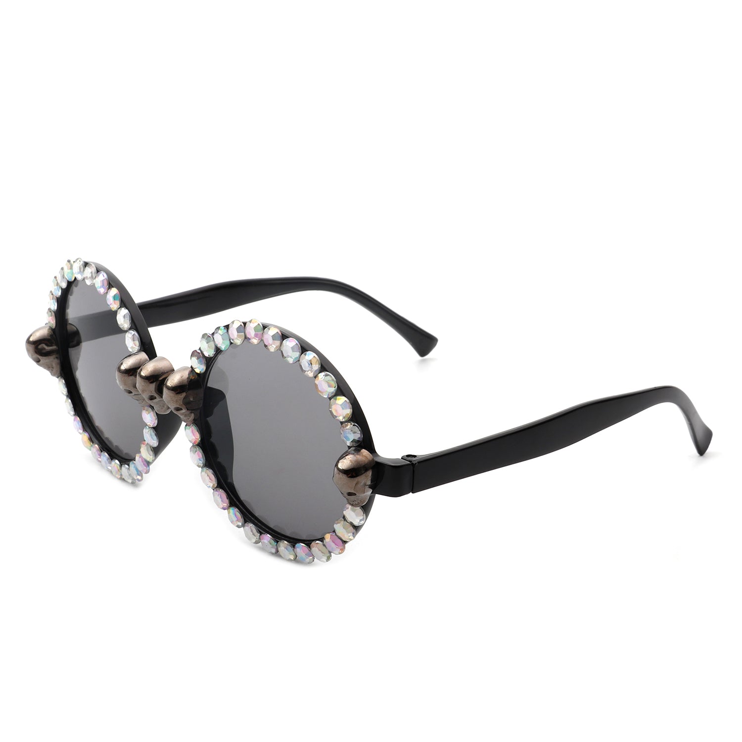 HS1170 - Round Retro Gothic Rhinestone Skull Punk Party Wholesale Sunglasses
