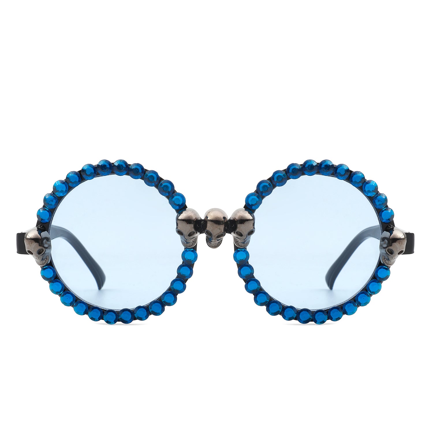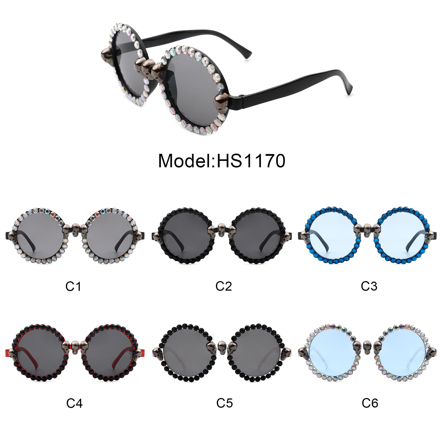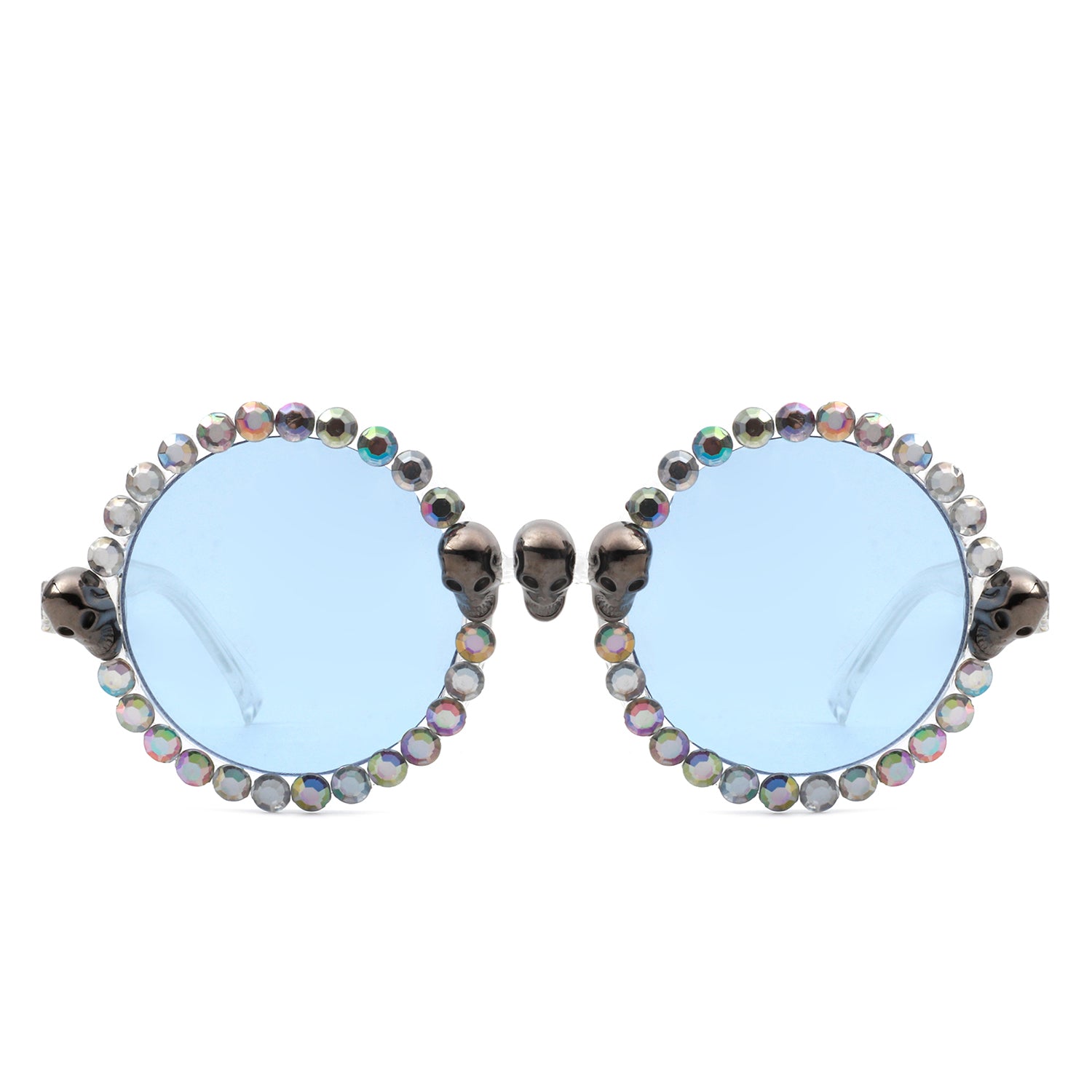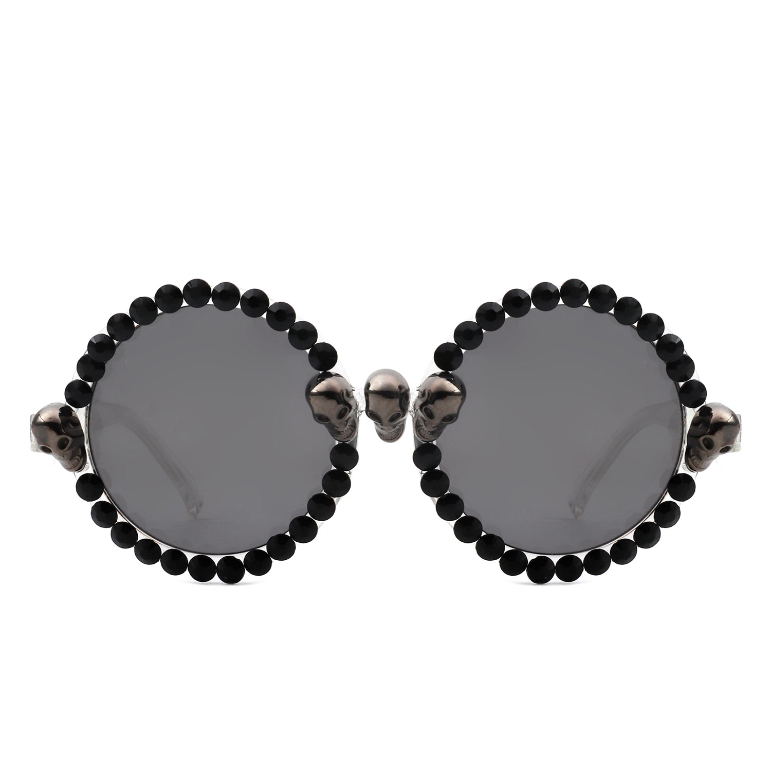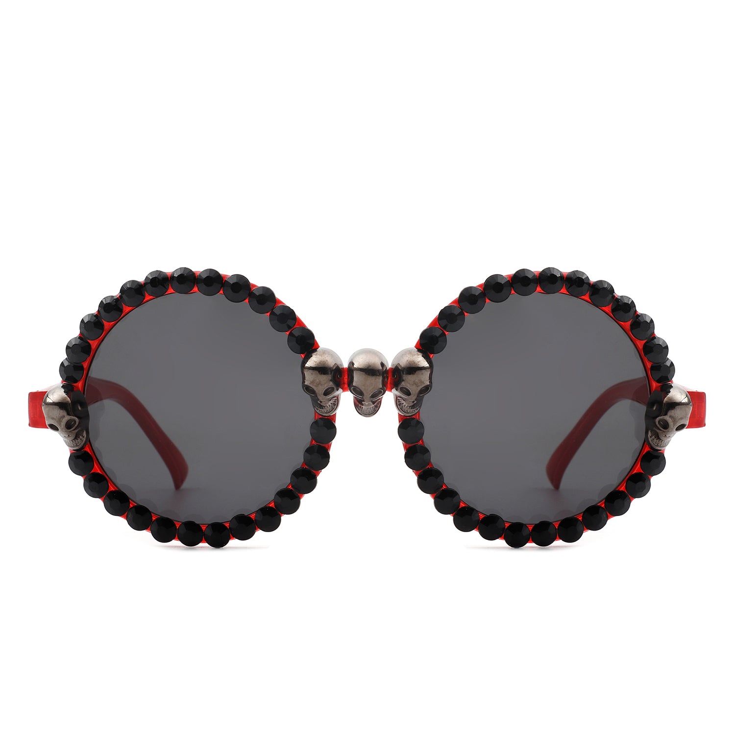 HS1170 - Round Retro Gothic Rhinestone Skull Punk Party Wholesale Sunglasses