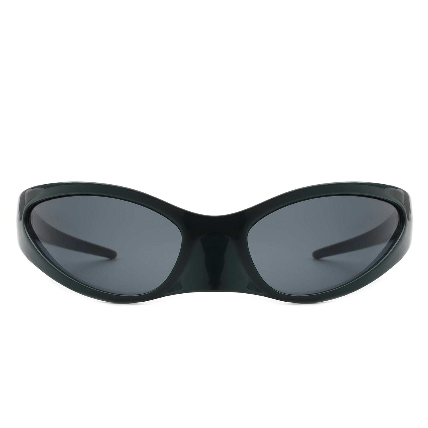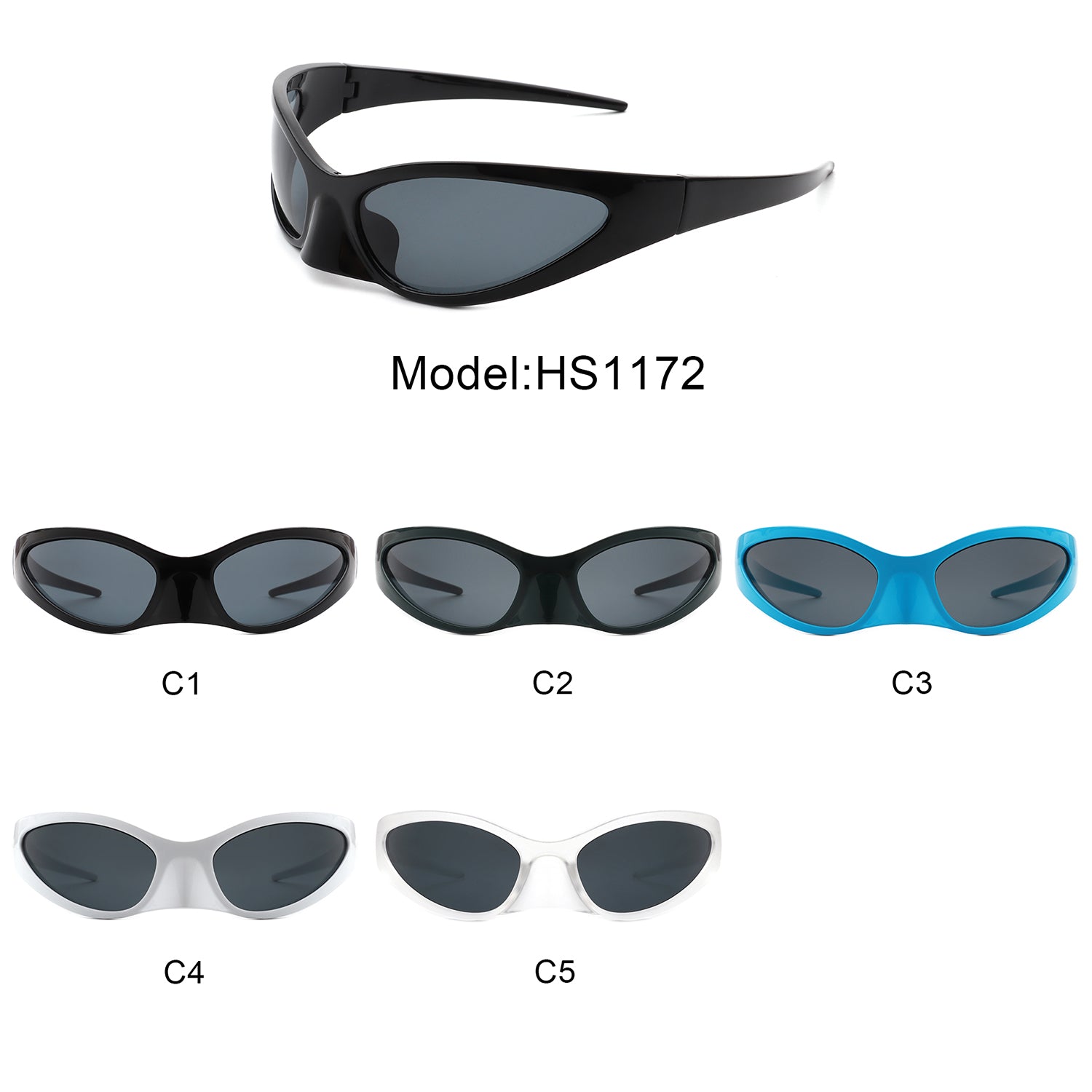 HS1172 - Rectangle Retro Wraparound Irregular Oval Fashion Sunglasses