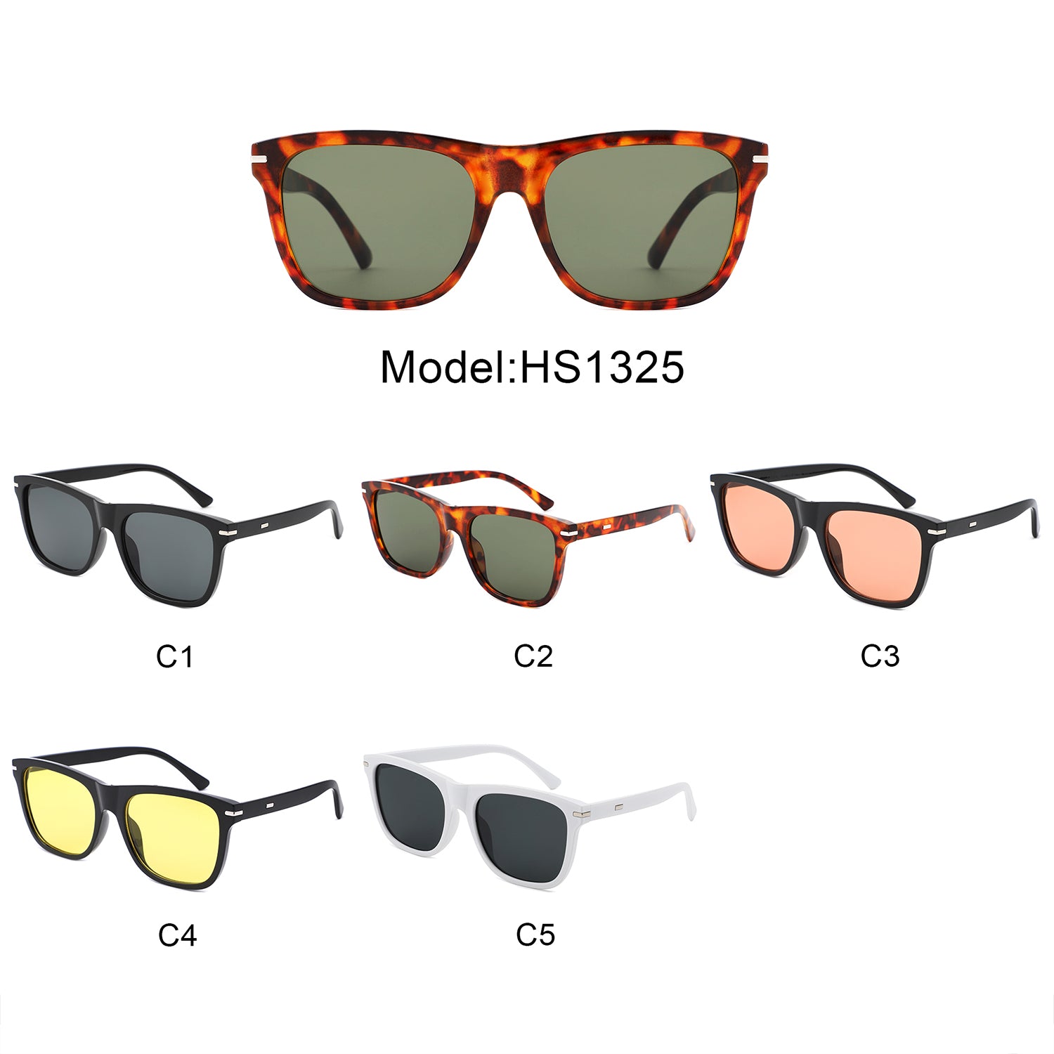 HS1325 - Square Fashion Horn Rimmed Tinted Wholesale Sunglasses