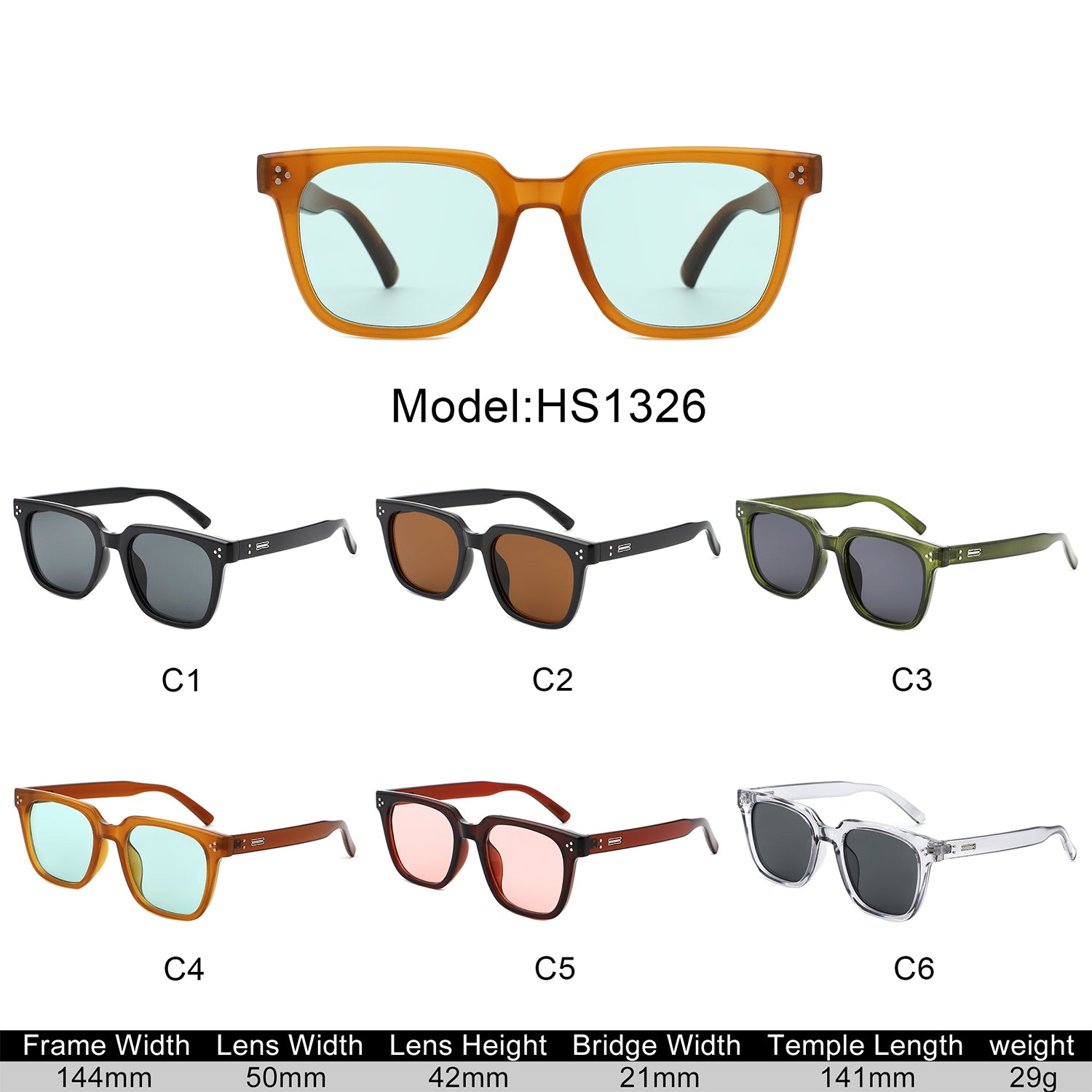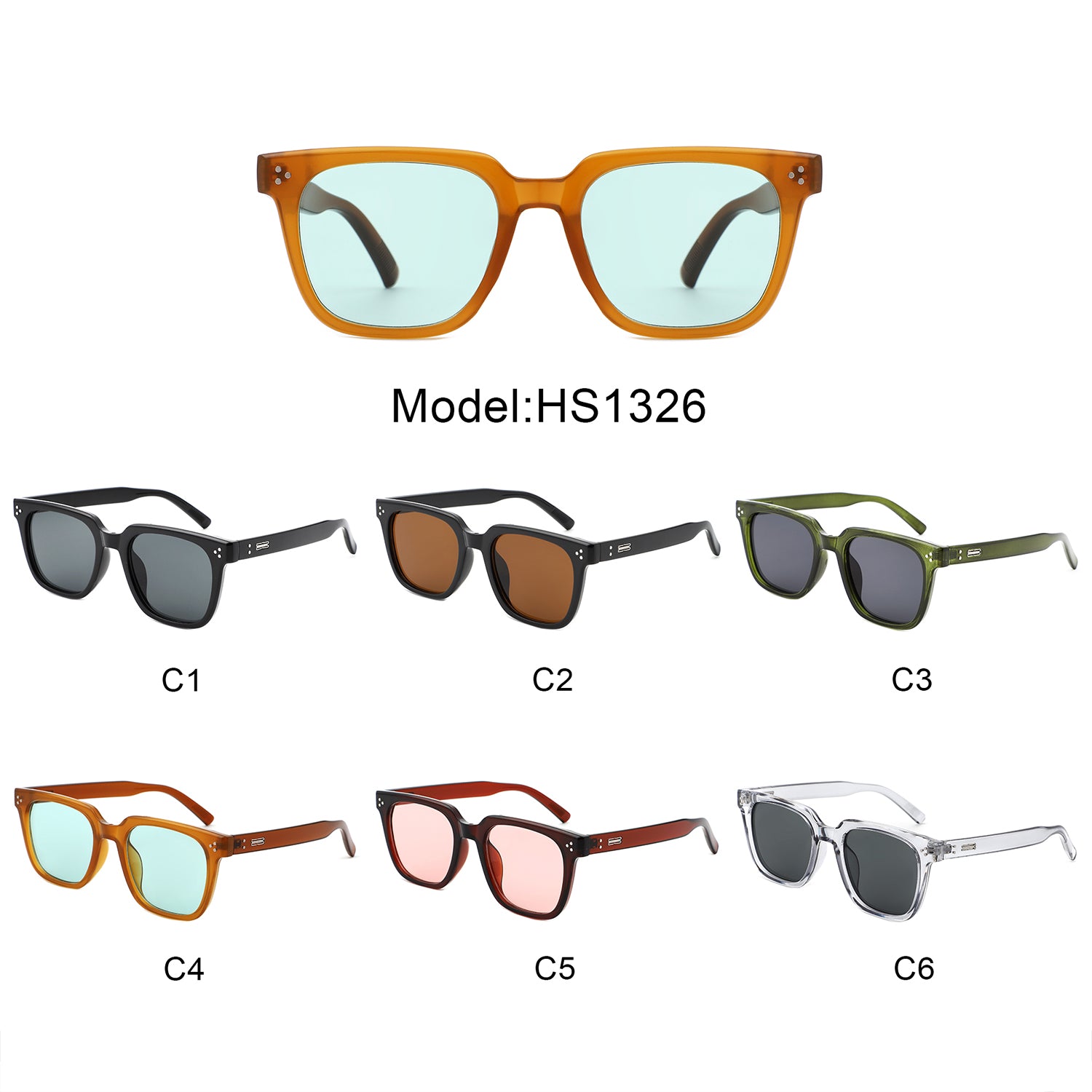 HS1326 - Square Retro Tinted Fashion Wholesale Sunglasses