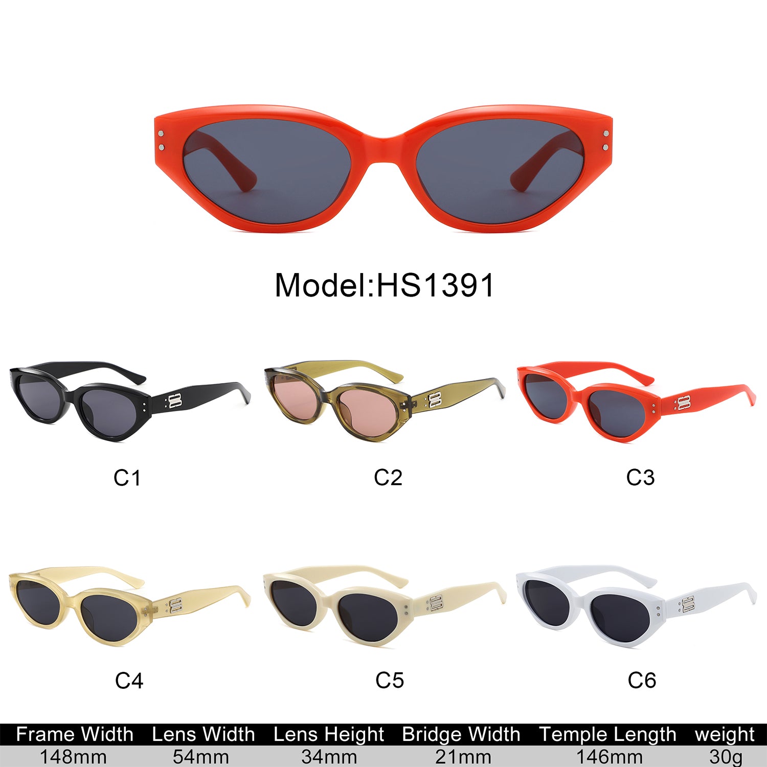HS1391 - Bold Retro Oval Cat-Eye Rivet Wholesale Sunglasses