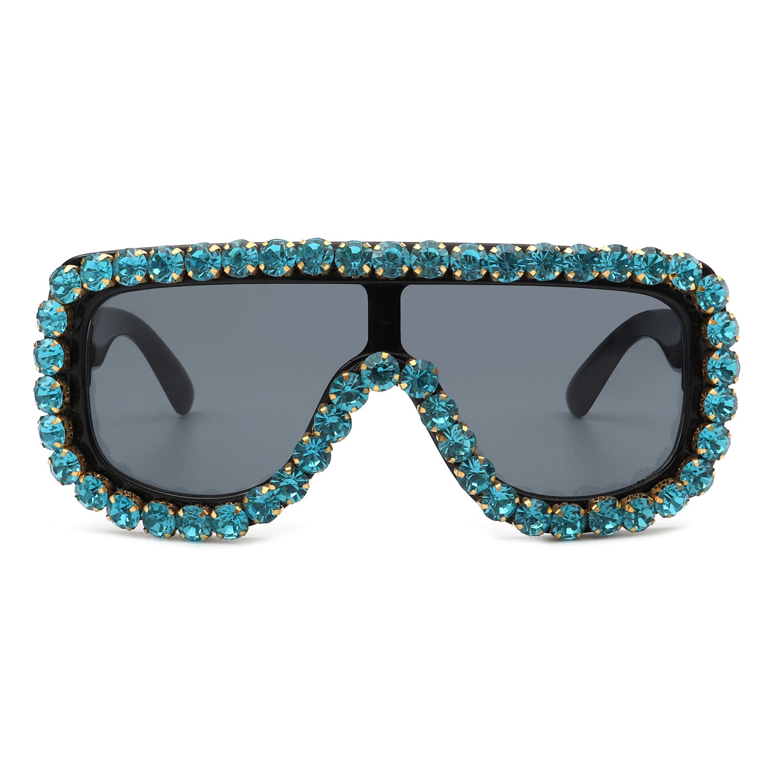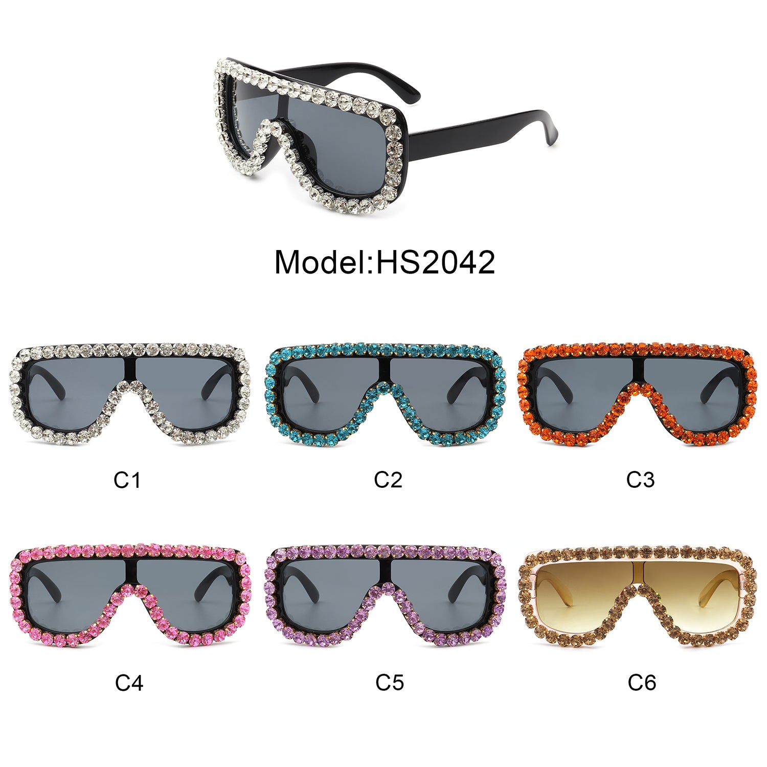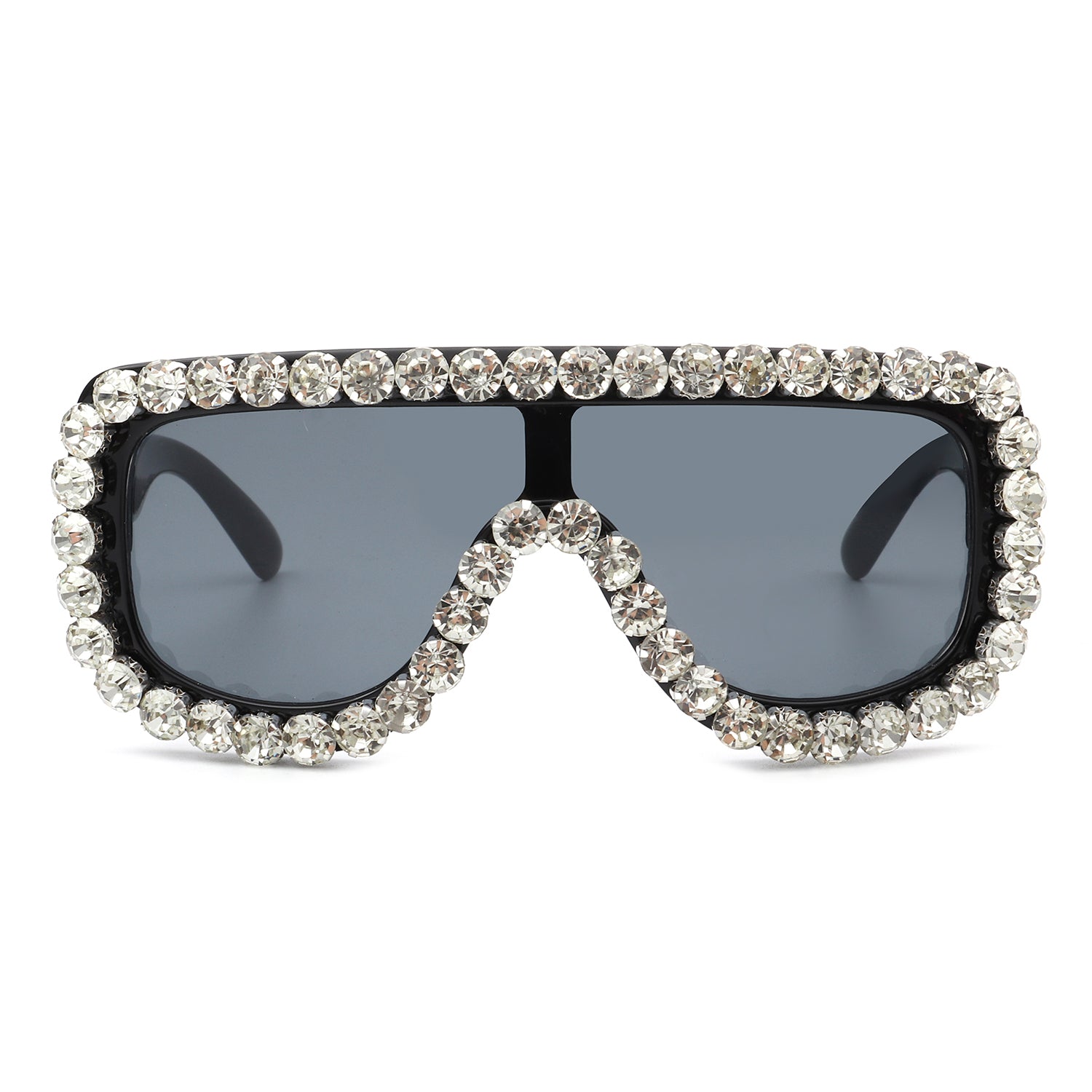 HS2042 - Women Oversize Rhinestone Diamonds Aviator Fashion Sunglasses