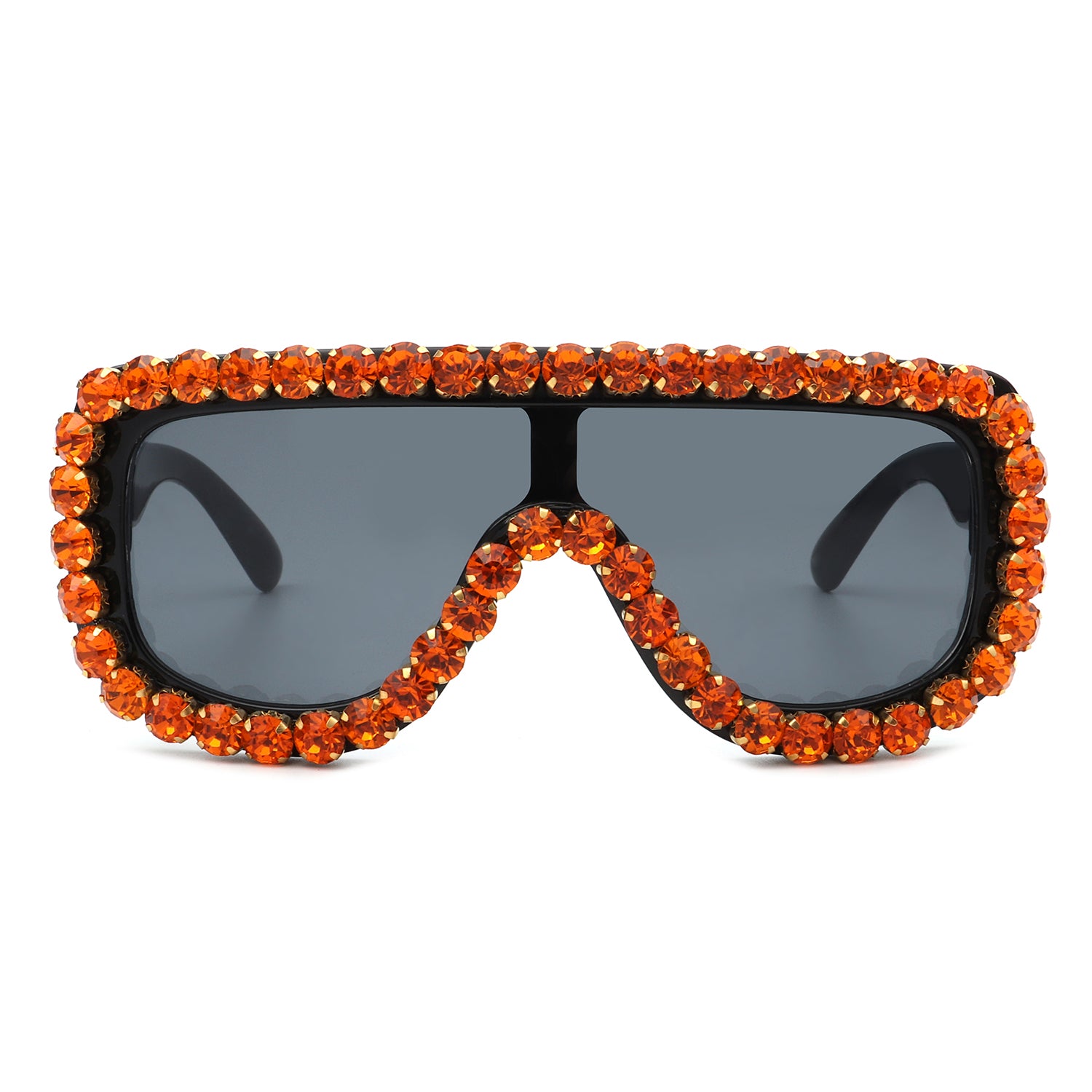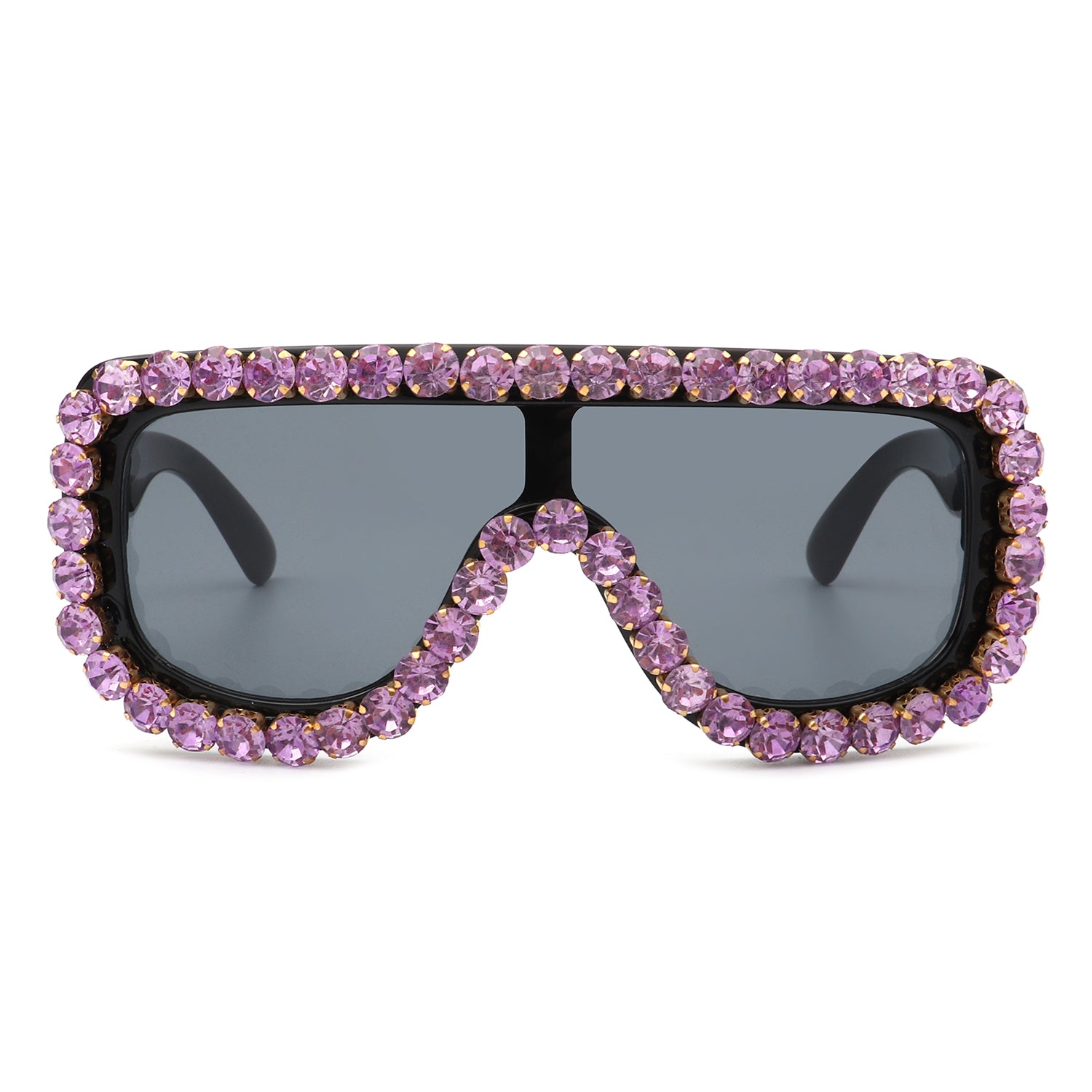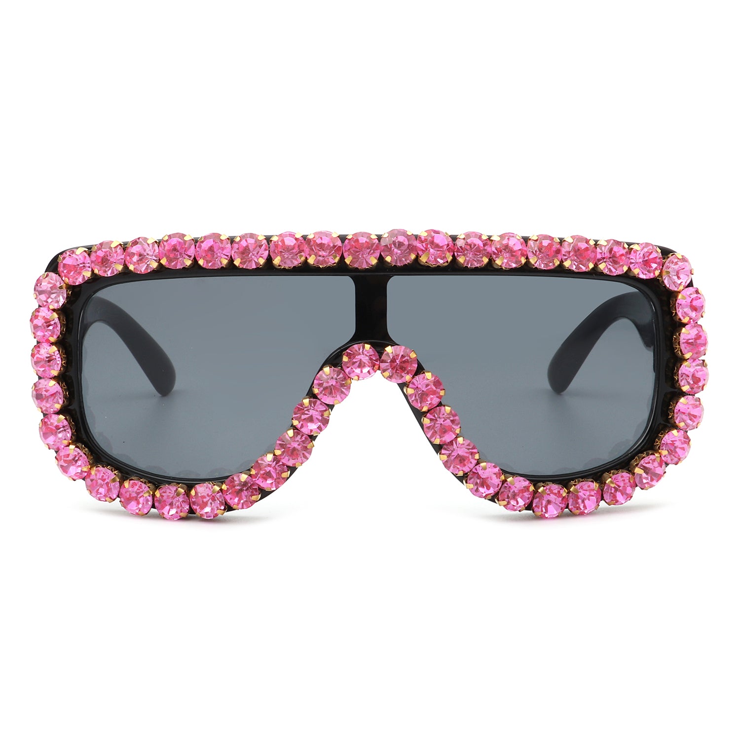 HS2042 - Women Oversize Rhinestone Diamonds Aviator Fashion Sunglasses