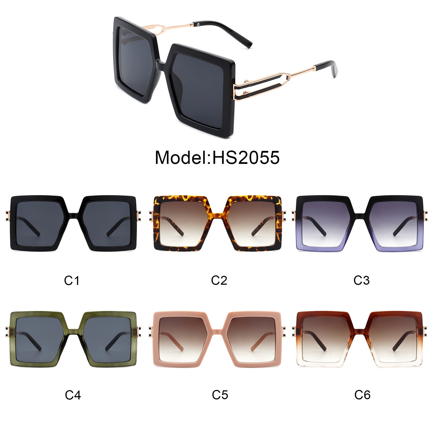 HS2055 - Square Retro Women Oversize Large Flat Top Fashion Sunglasses