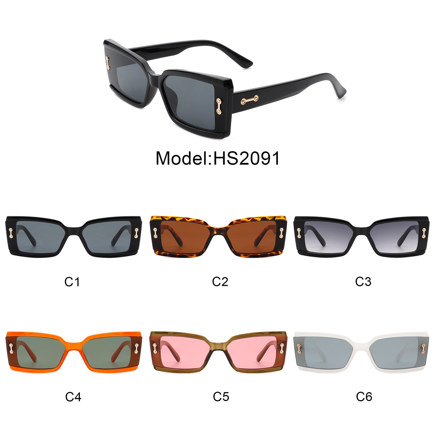 HS2091 - Rectangle Tinted Modern Fashion Square Wholesale Sunglasses