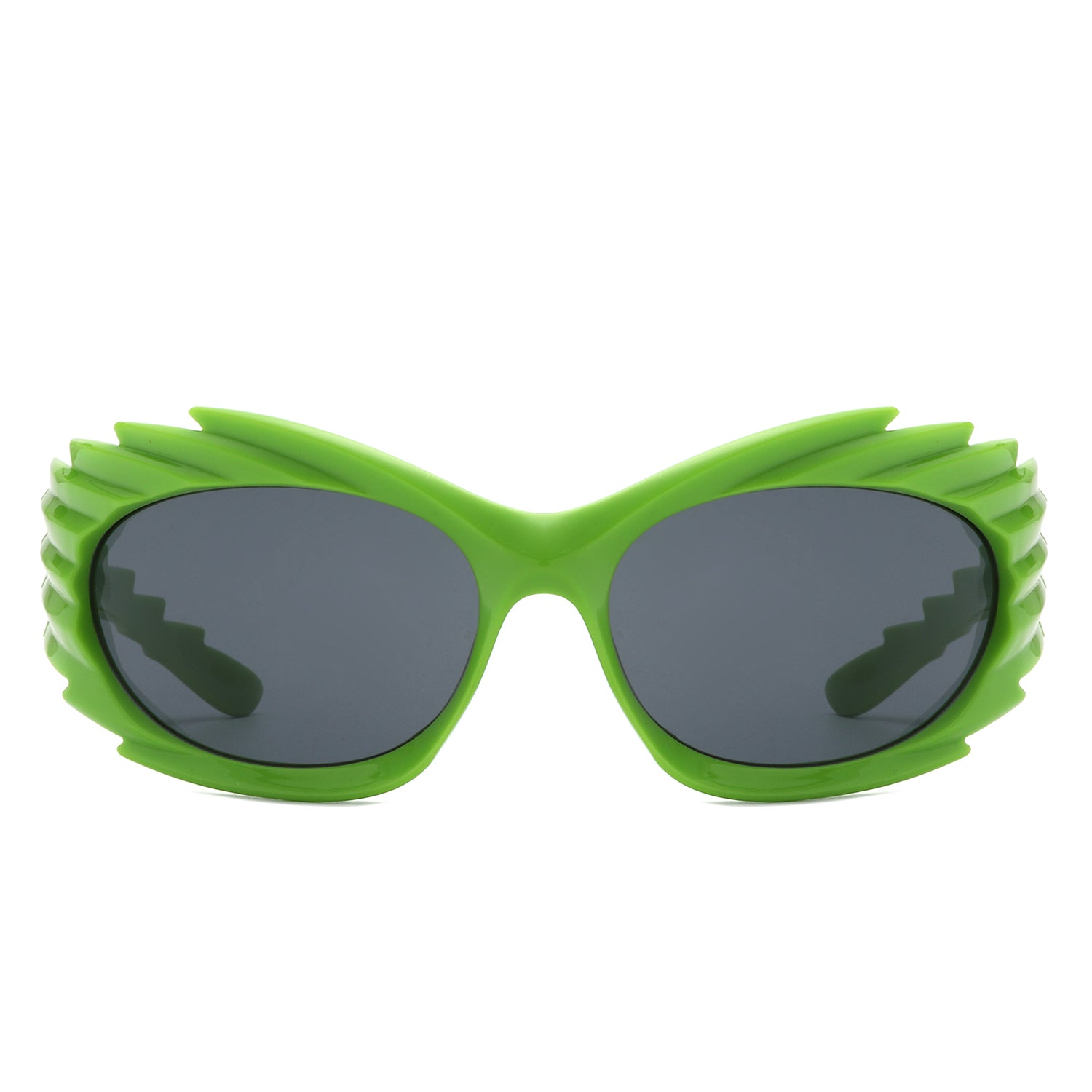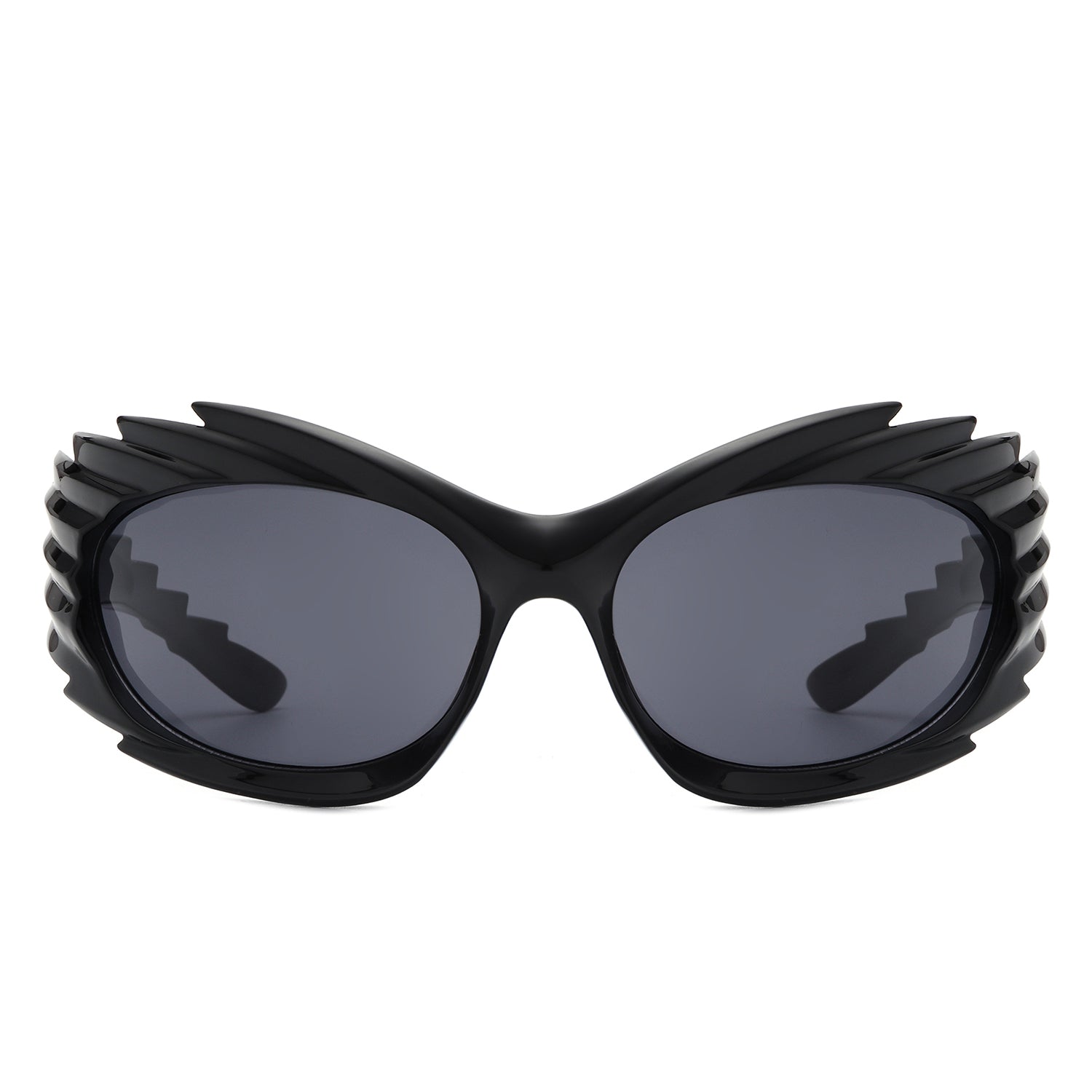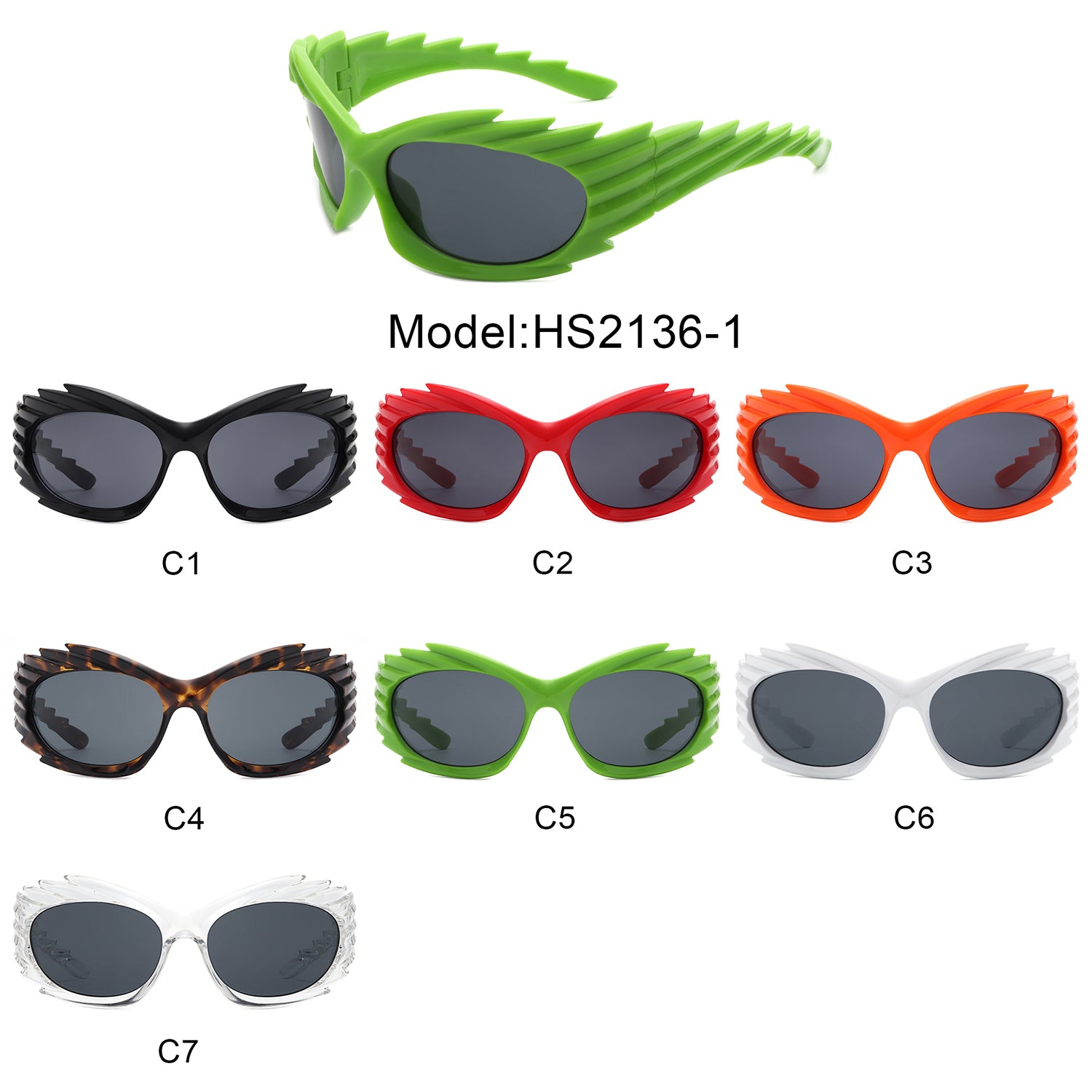 HS2136-1 - Wrap Around Oval Spike Oversize Fashion Wholesale Sunglasses