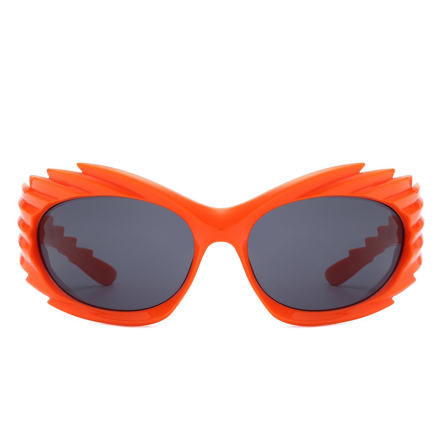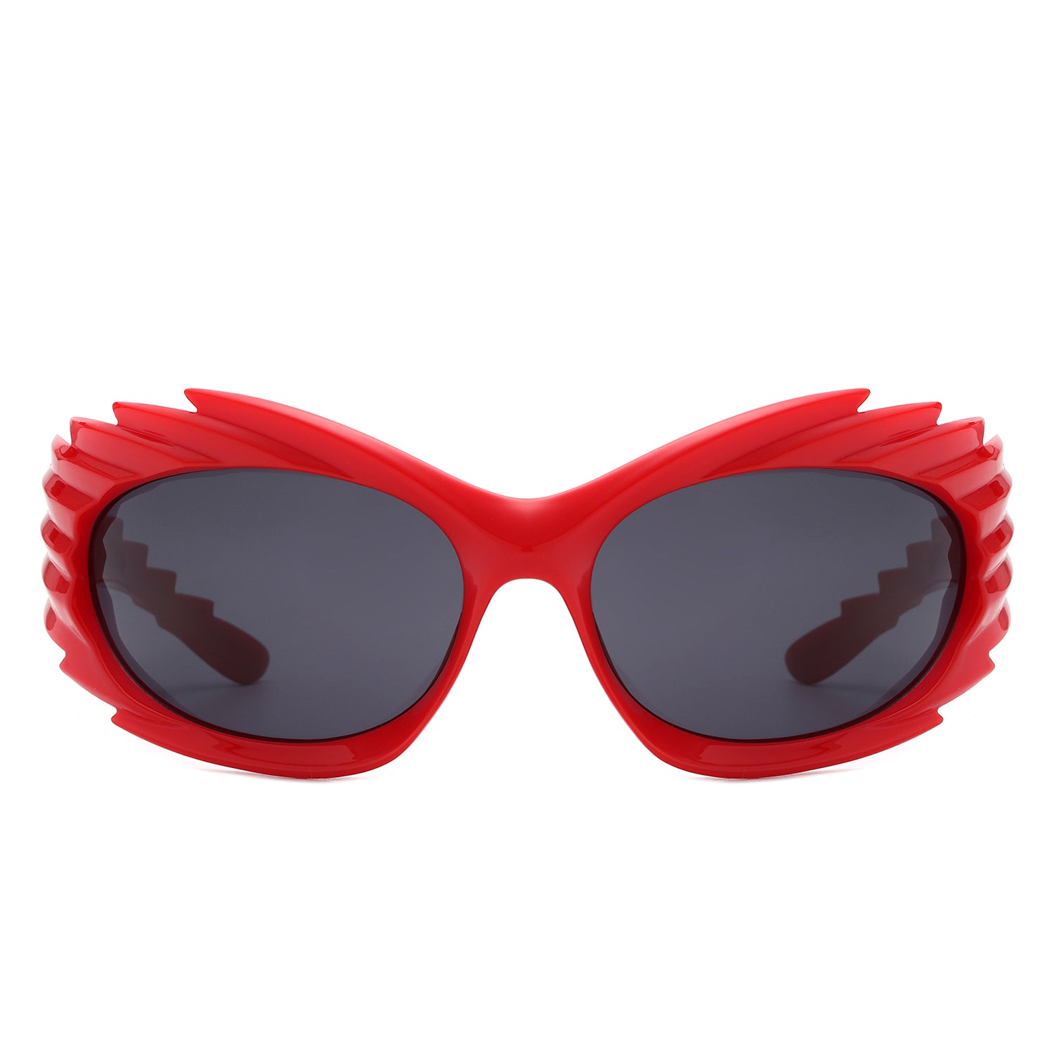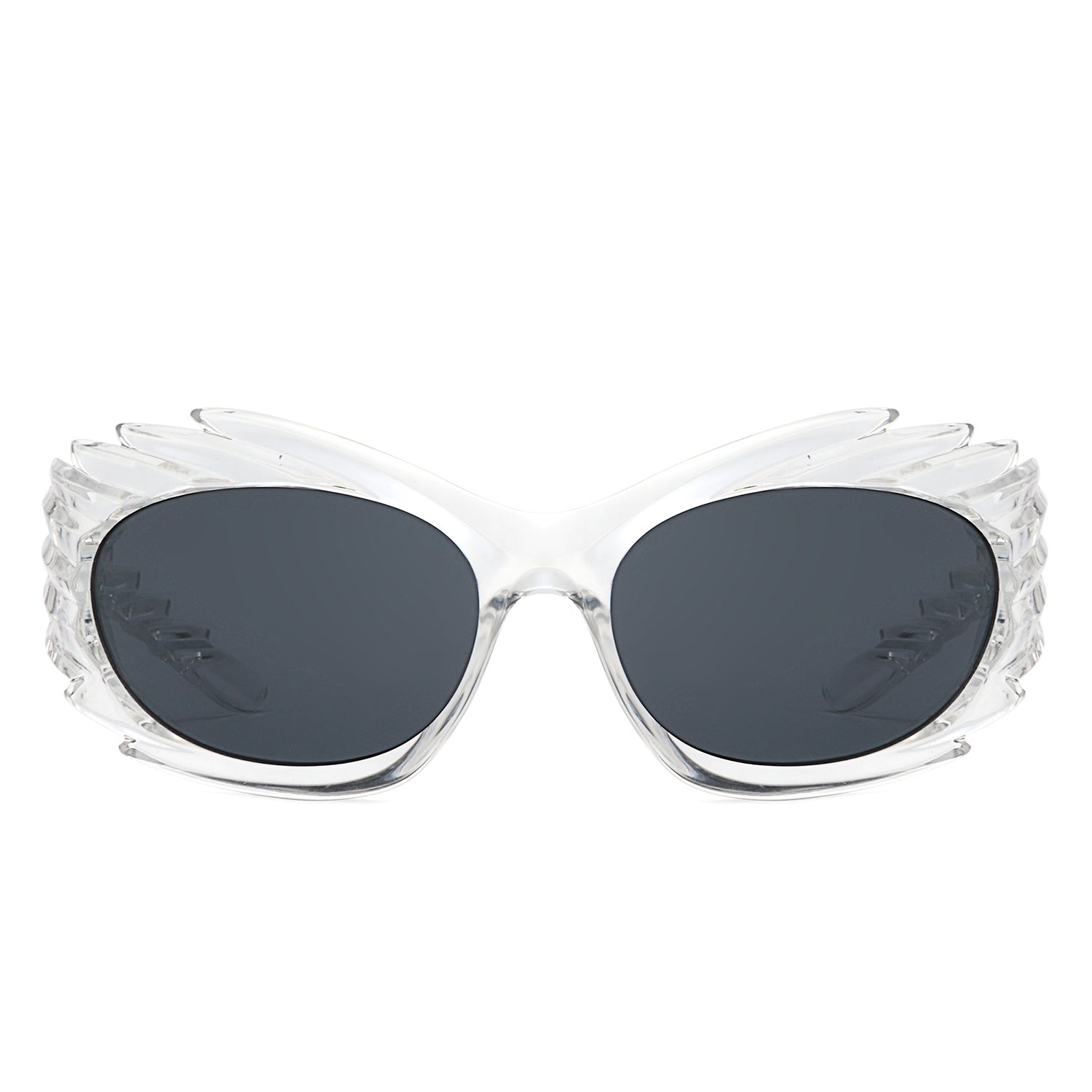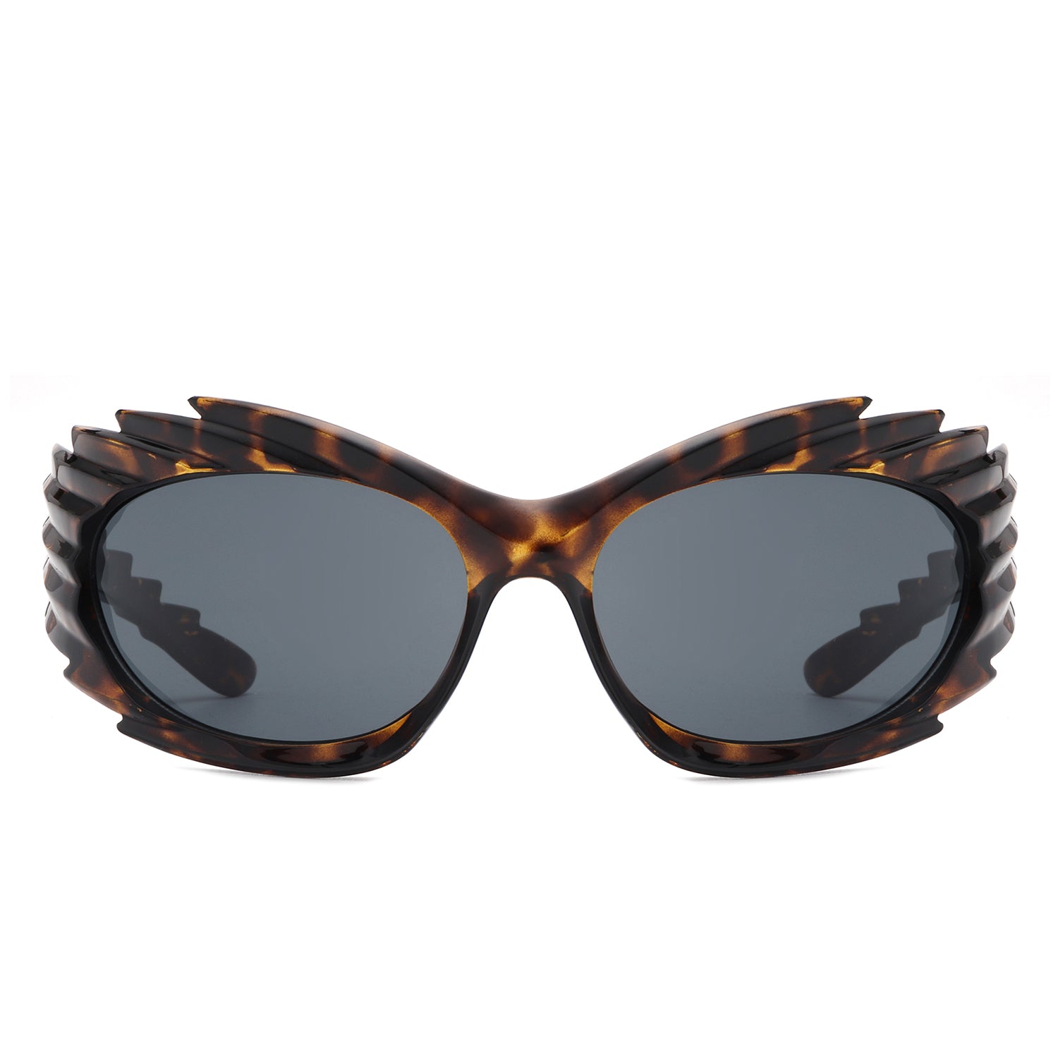 HS2136-1 - Wrap Around Oval Spike Oversize Fashion Wholesale Sunglasses