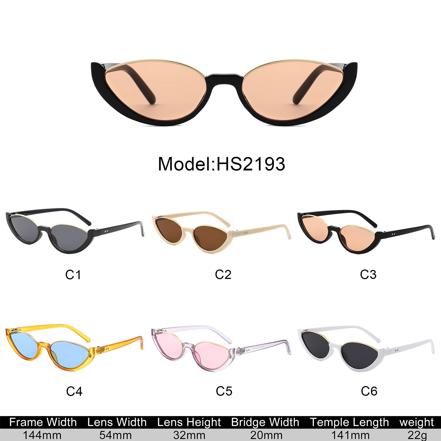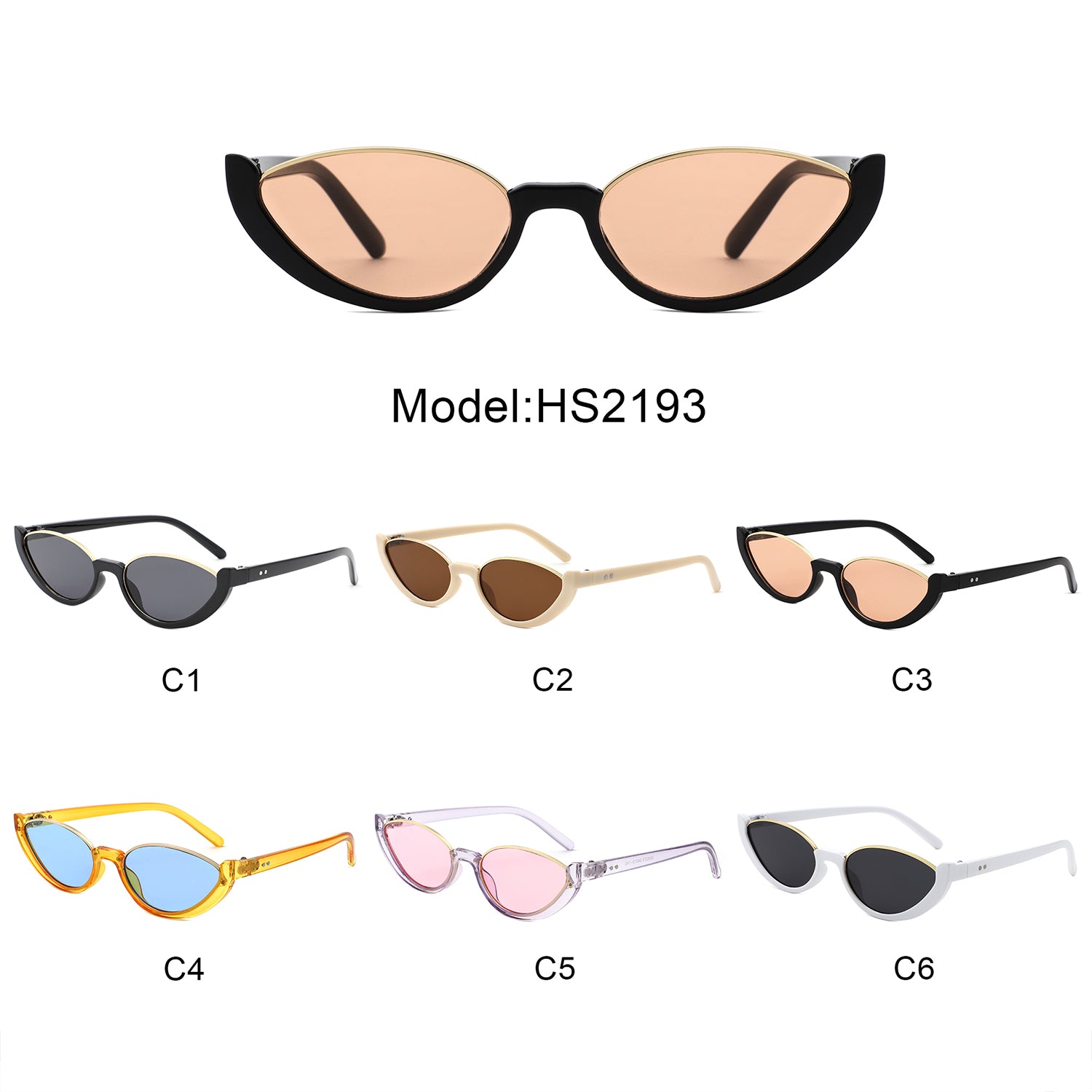 HS2193 - Retro Oval Semi-Rimless Round Wholesale Sunglasses