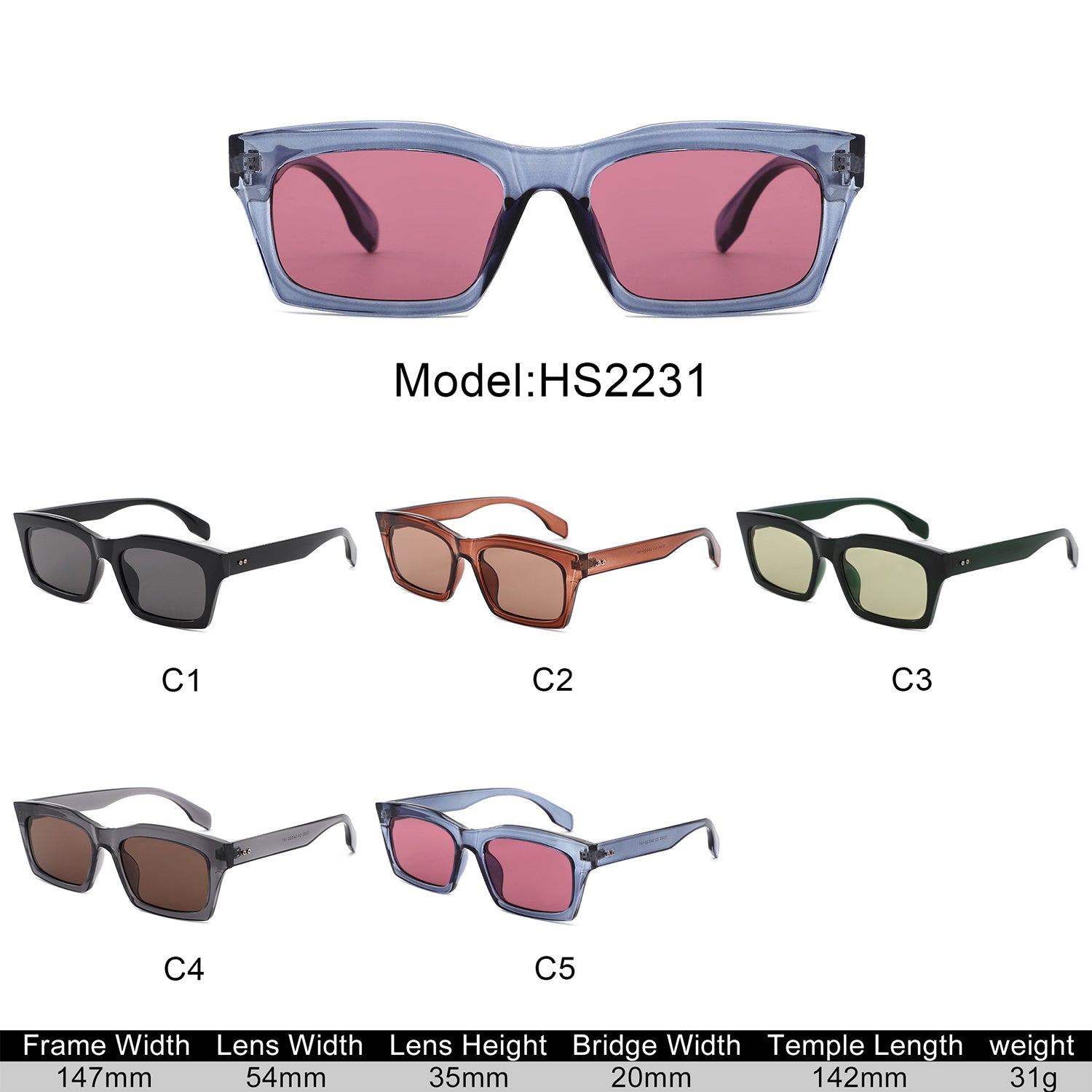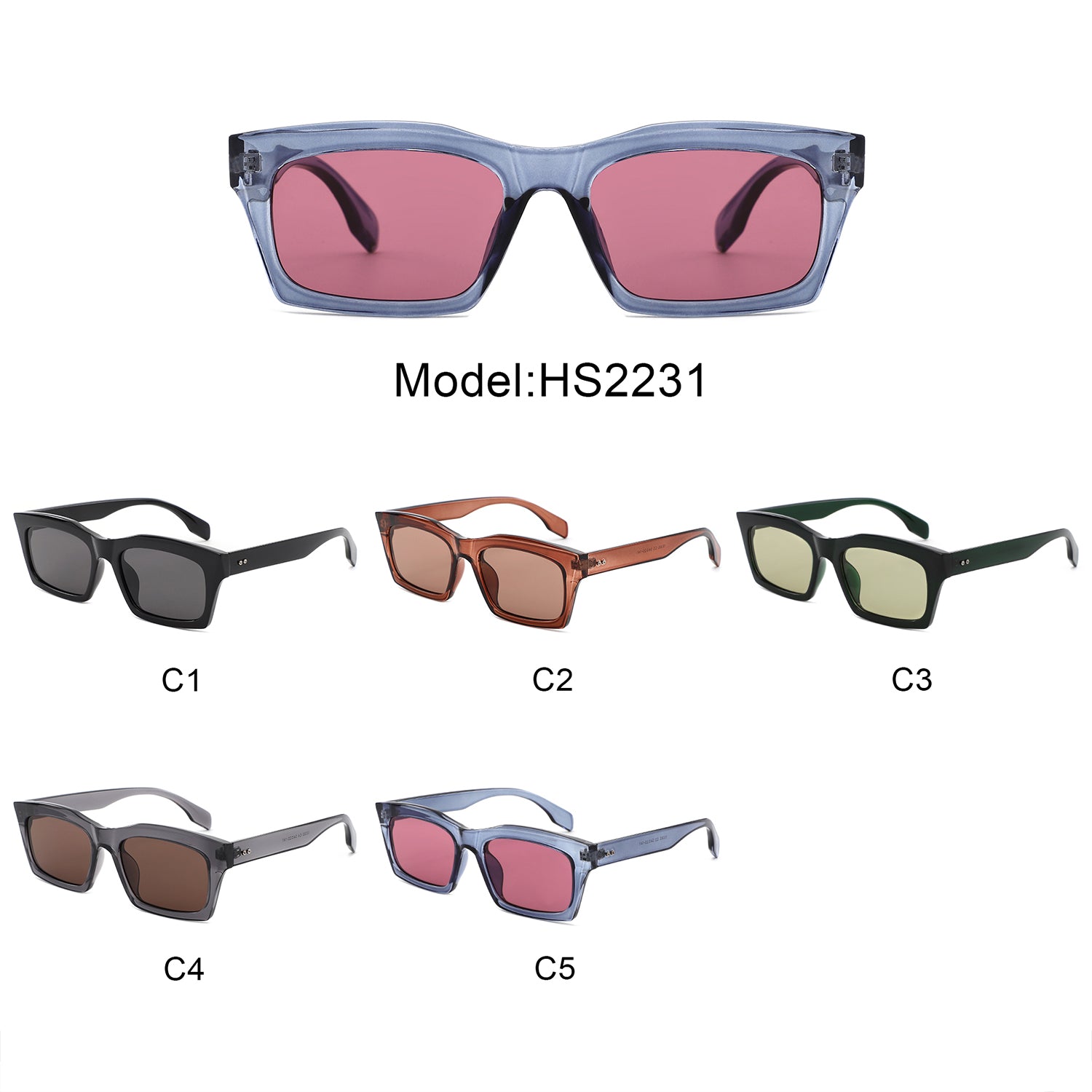 HS2231 - Bold Rectangle Fashion Thick Frame Wholesale Sunglasses