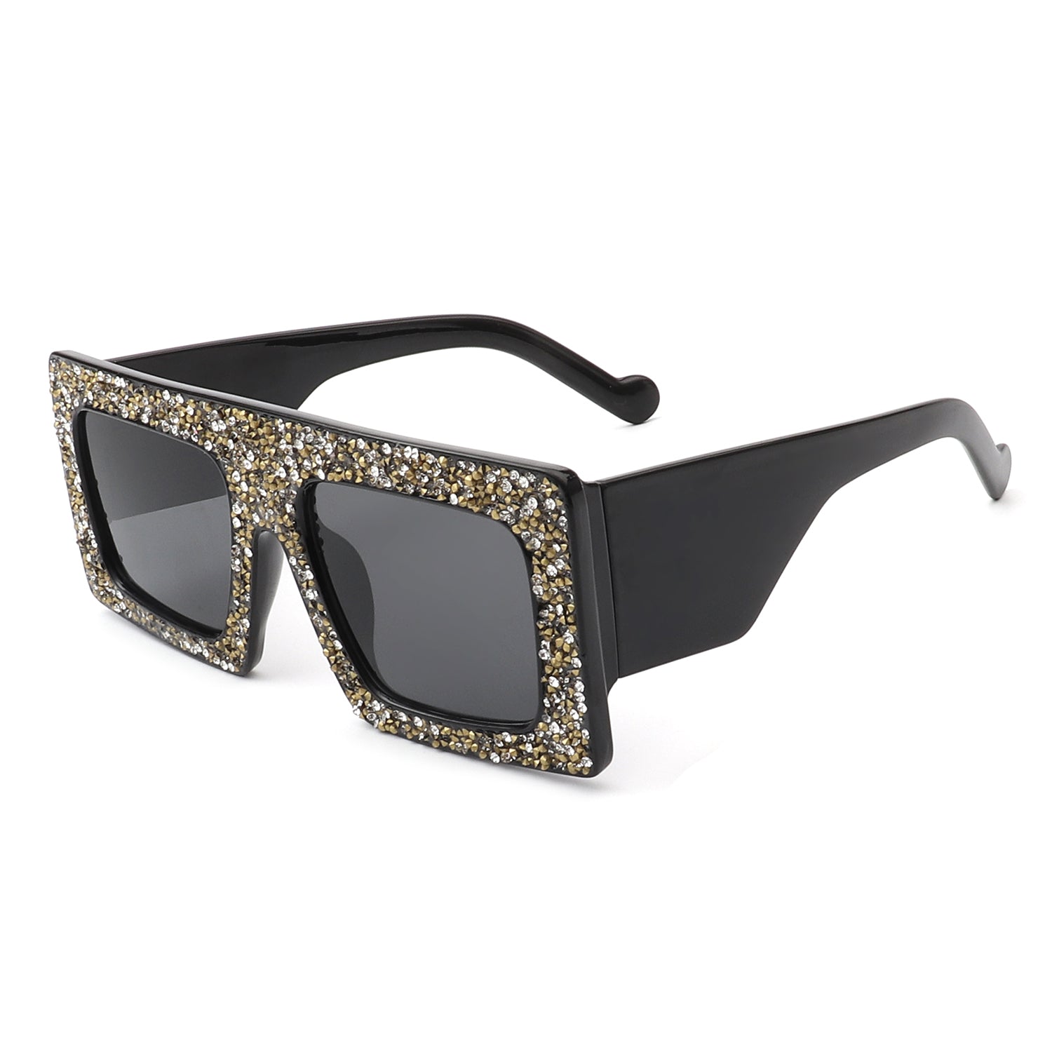 HS3002 - Square Retro Bold Thick Frame Vintage Rhinestone Fashion Sunglasses