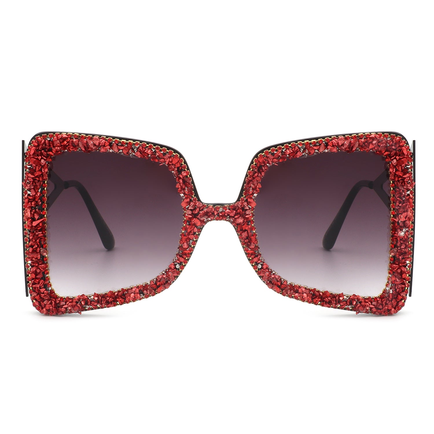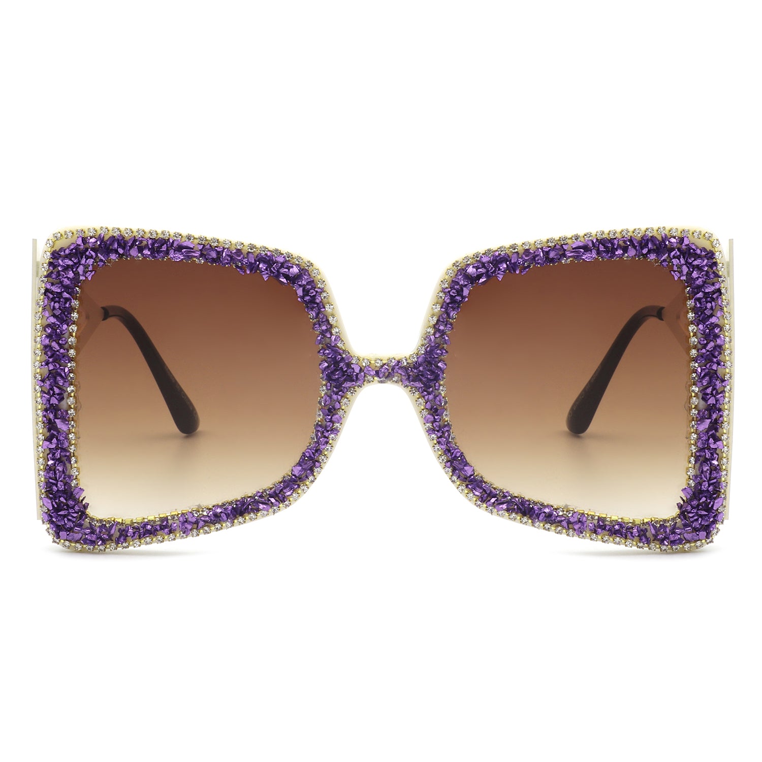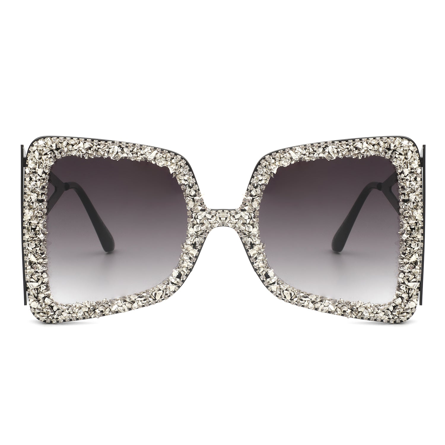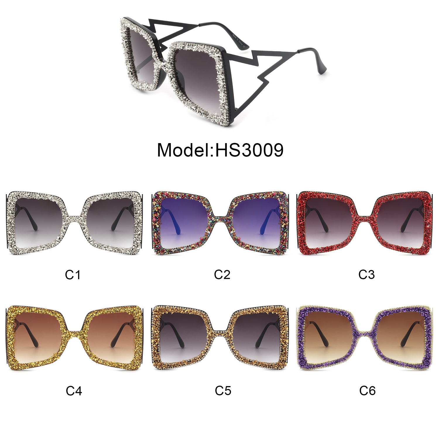 HS3009 - Women Oversize Rhinestone Crystals Square Fashion Sunglasses