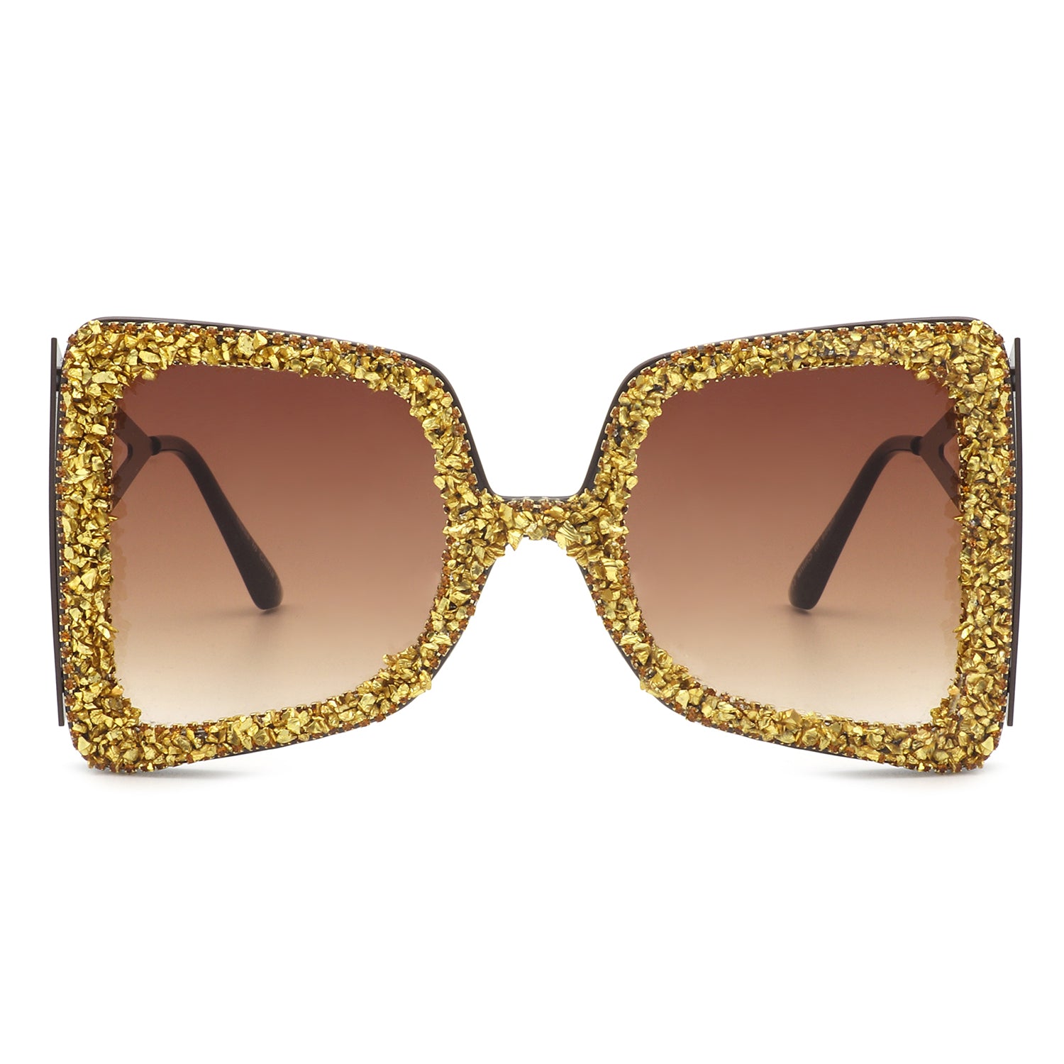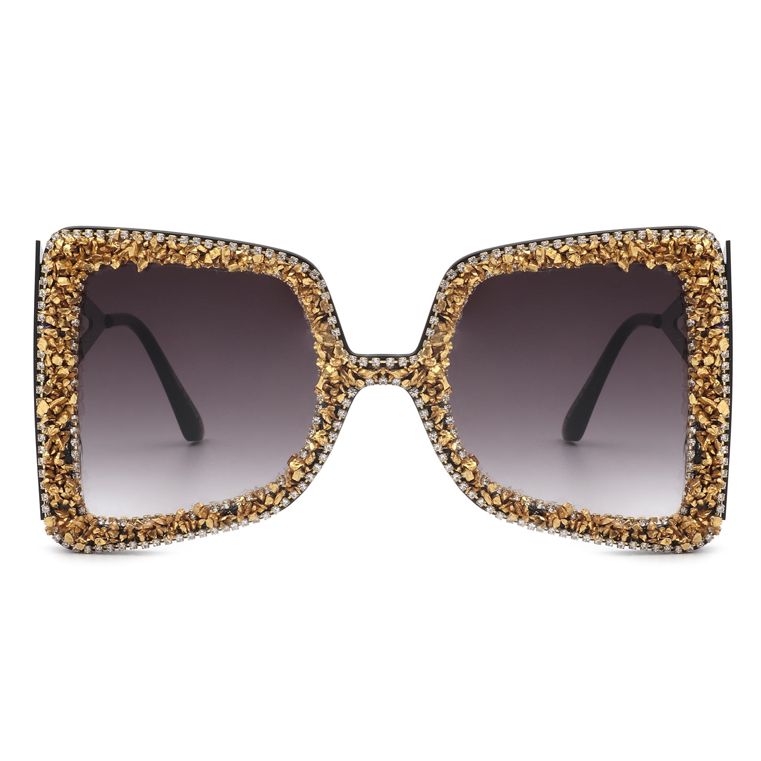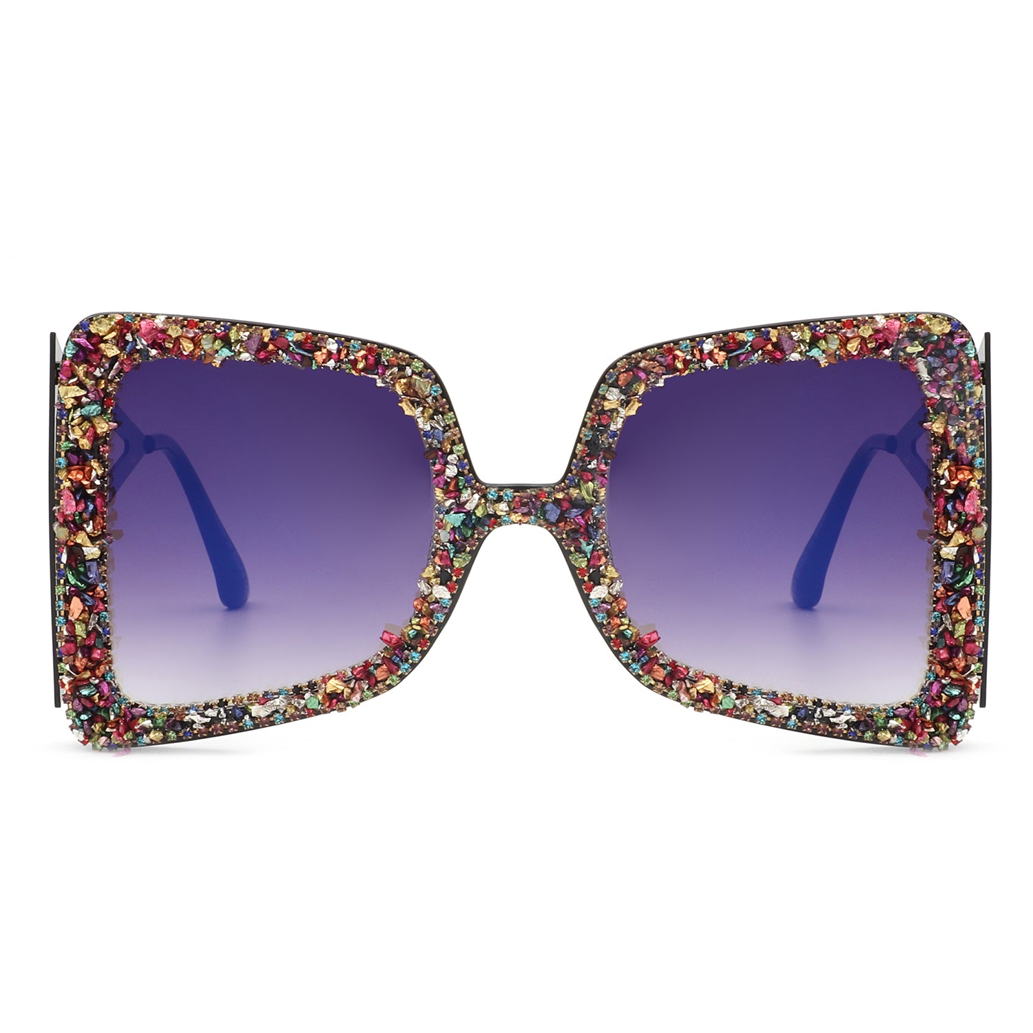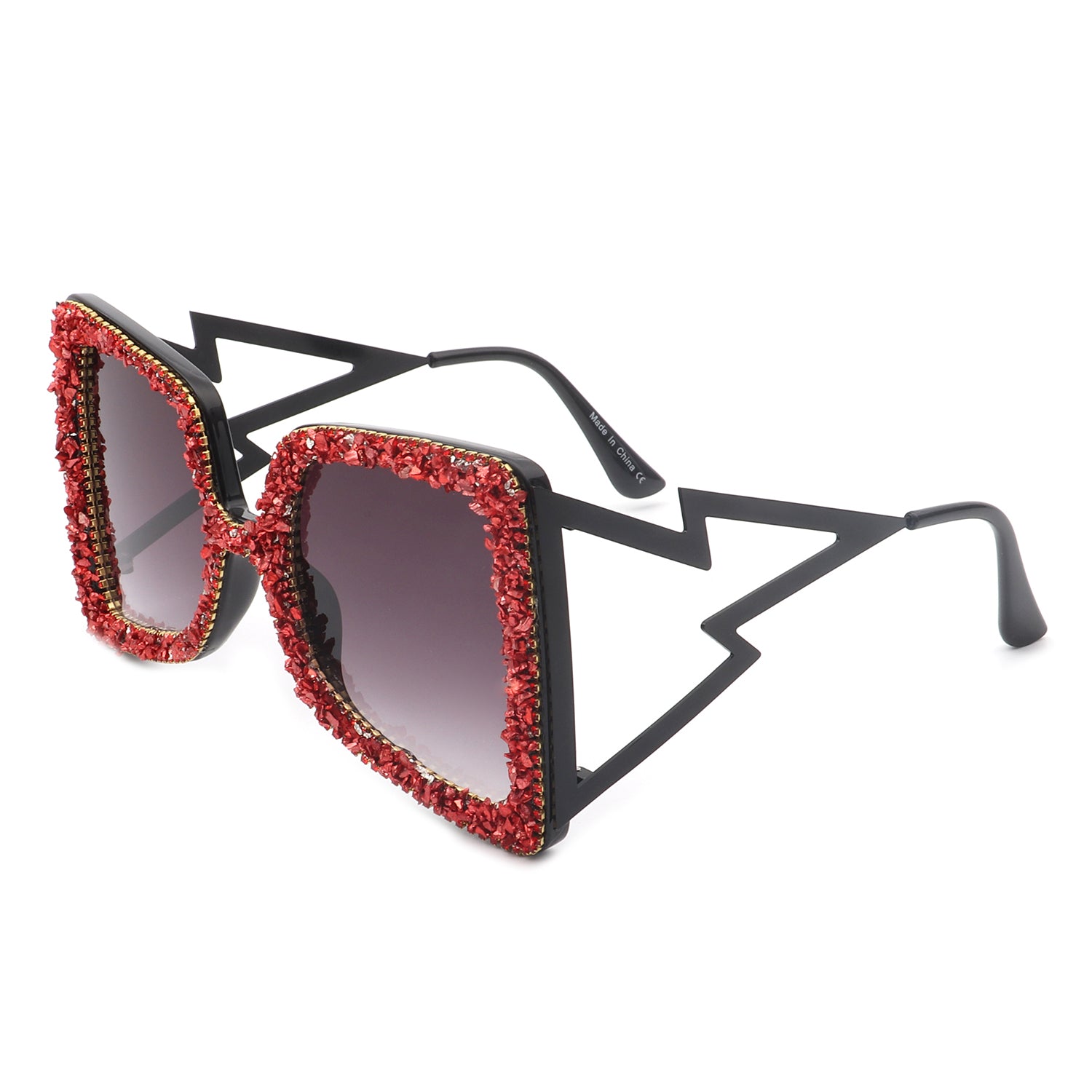 HS3009 - Women Oversize Rhinestone Crystals Square Fashion Sunglasses