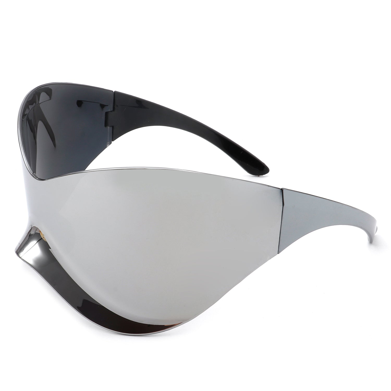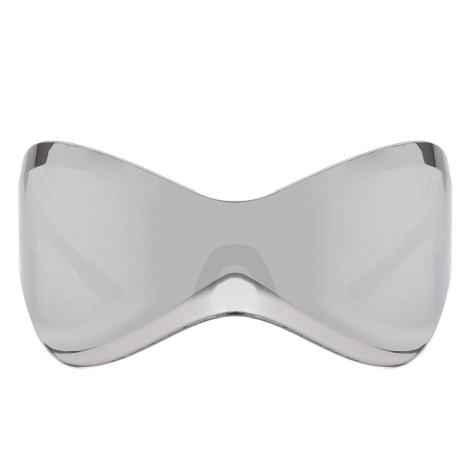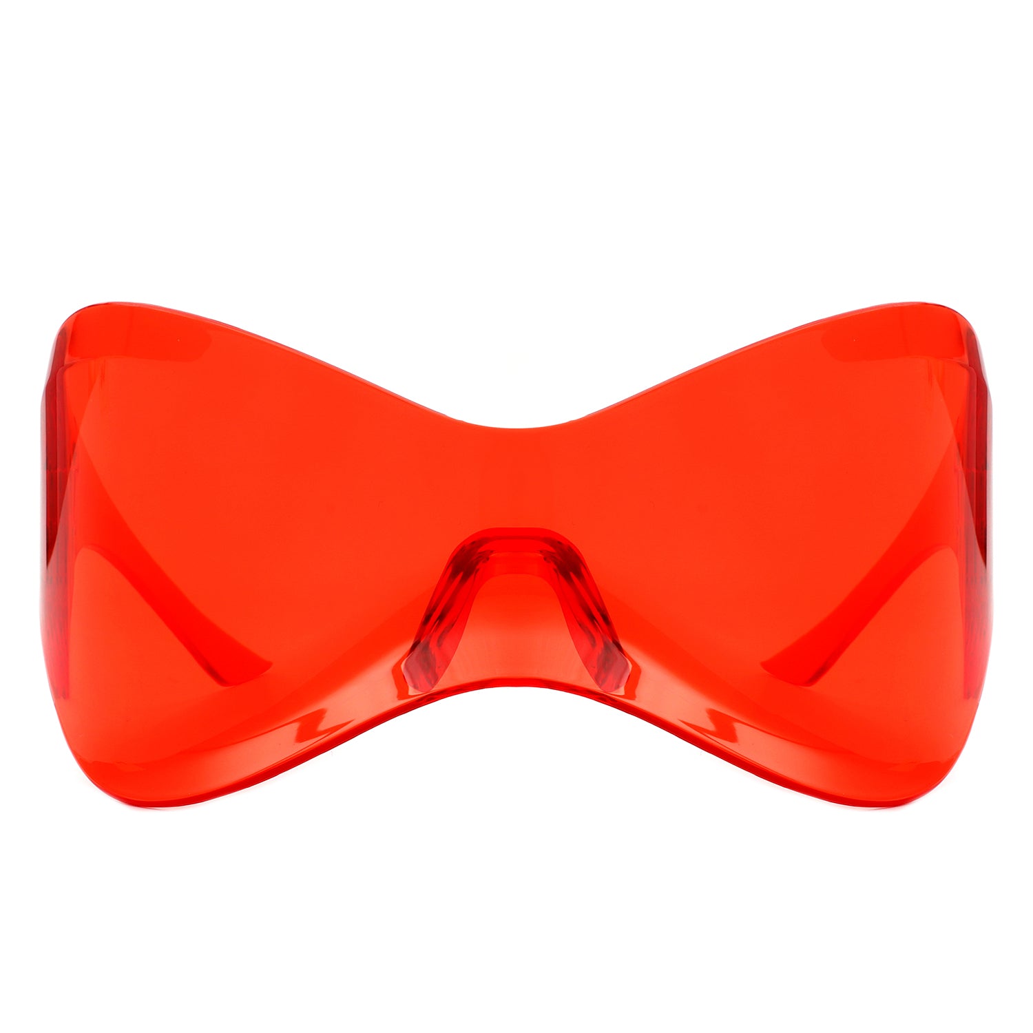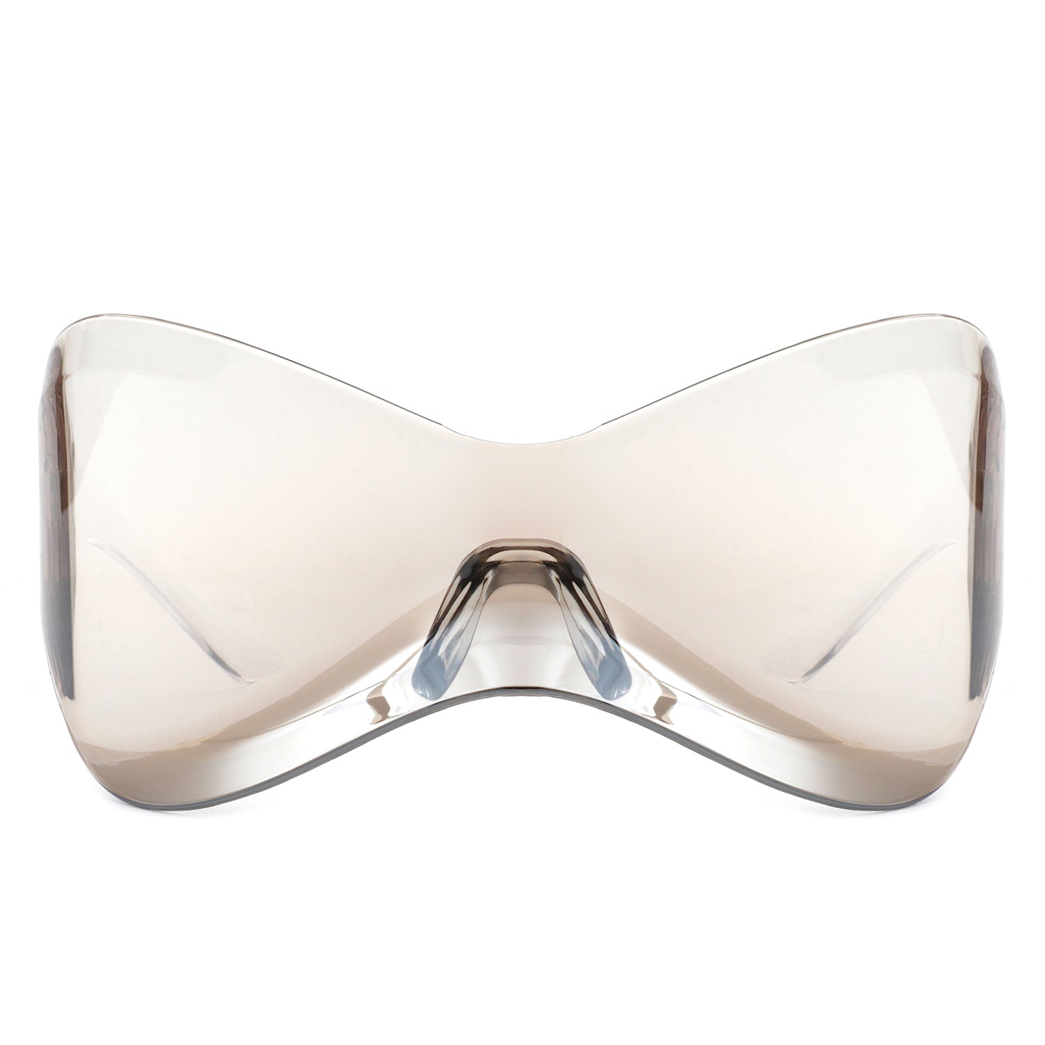 HW1008 - Futuristic Oversized Rimless Shield Wraparound Fashion Sunglasses