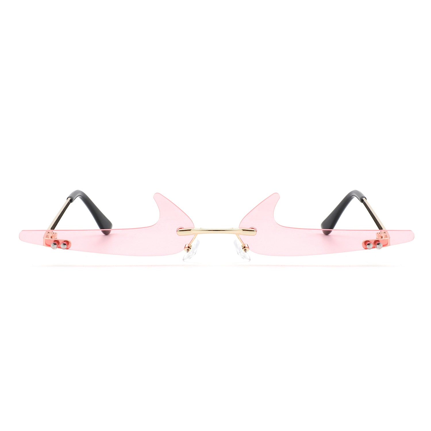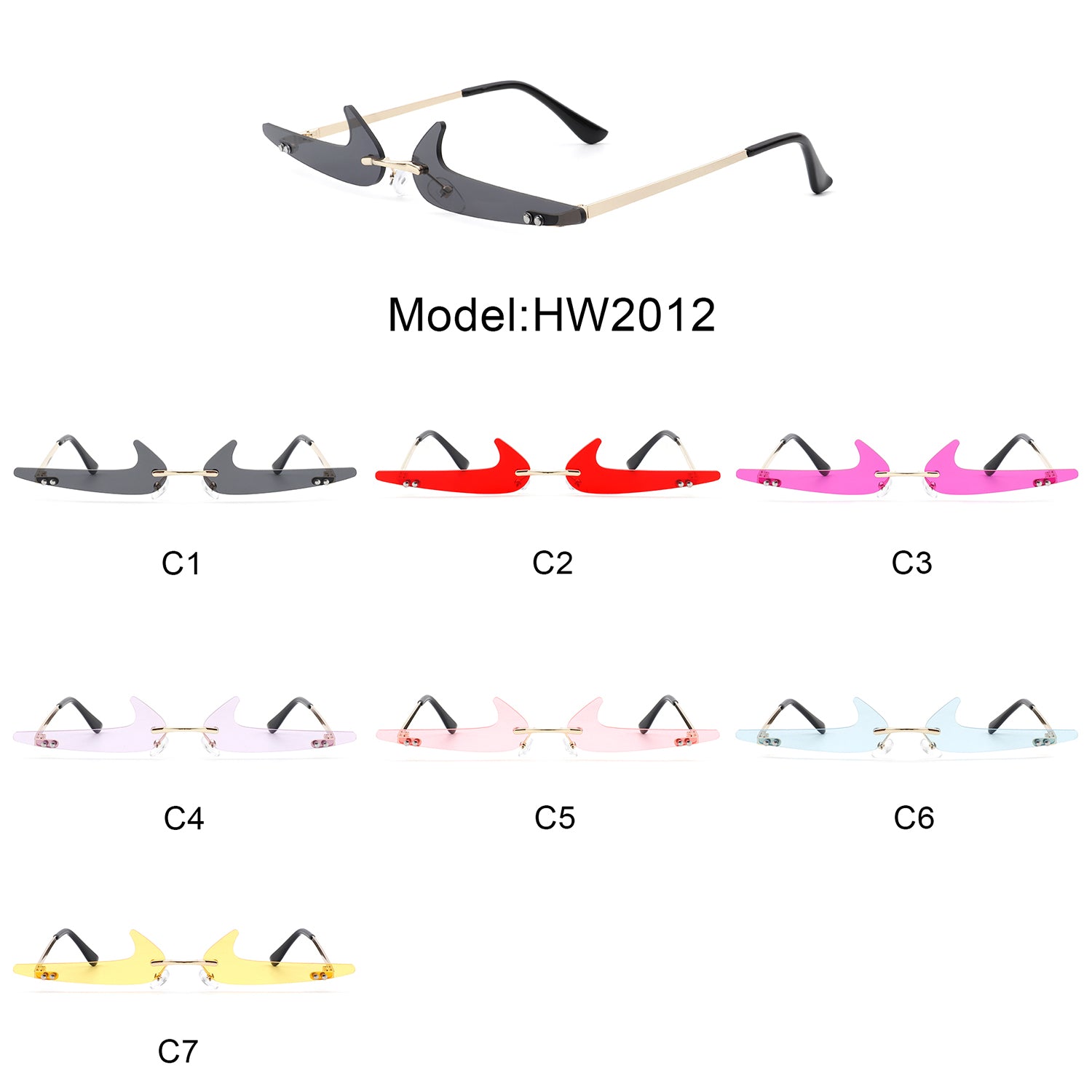HW2012 - Rimless Decorative Narrow Tinted Checkmark Shape Slim Glasses