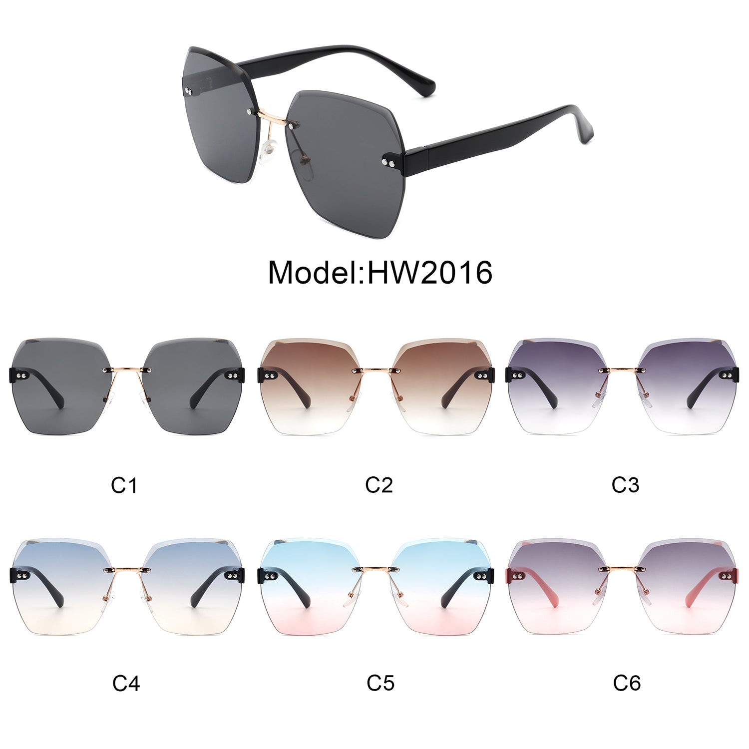 HW2016 - Oversize Square Geometric Rimless Tinted Fashion Sunglasses