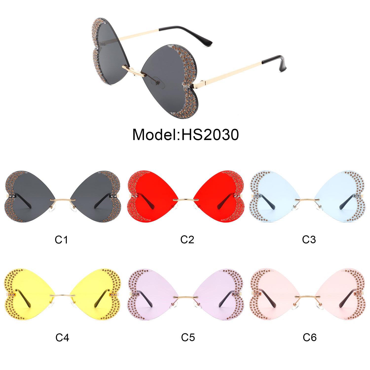 HW2030 - Rimless Butterfly Heart Shape Tinted Fashion Women Sunglasses