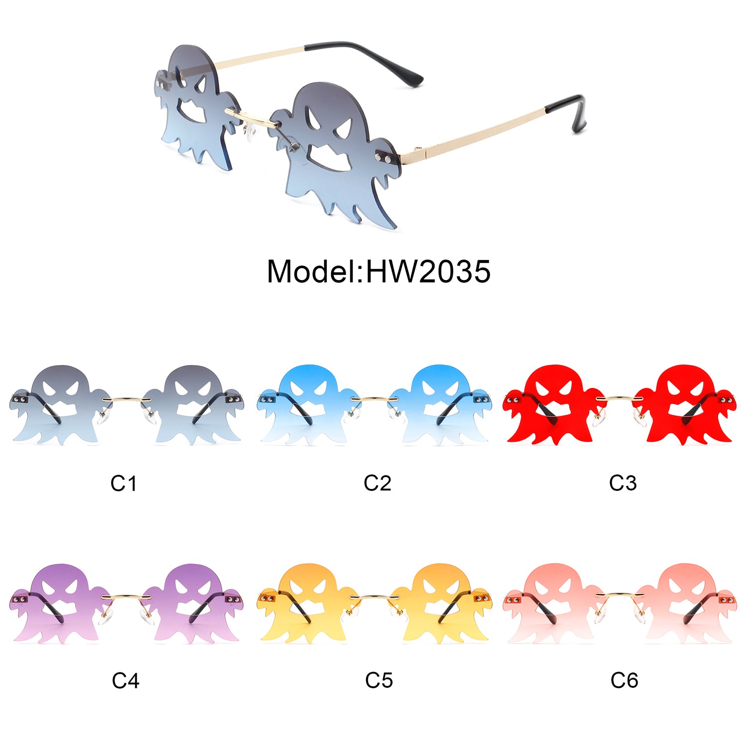 HW2035 - Rimless Party Scary Ghost Wholesale Sunglasses