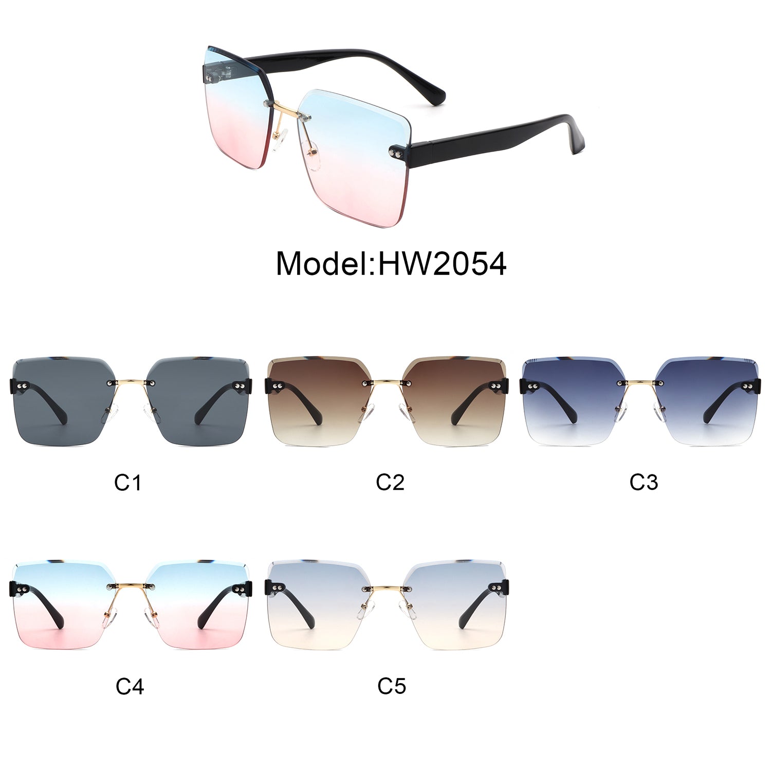 HW2054 - Square Rimless Fashion Tinted Women Wholesale Sunglasses
