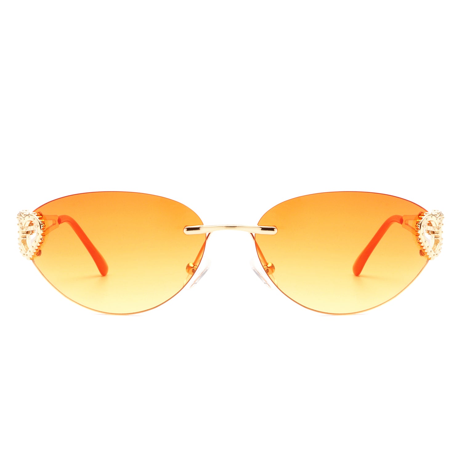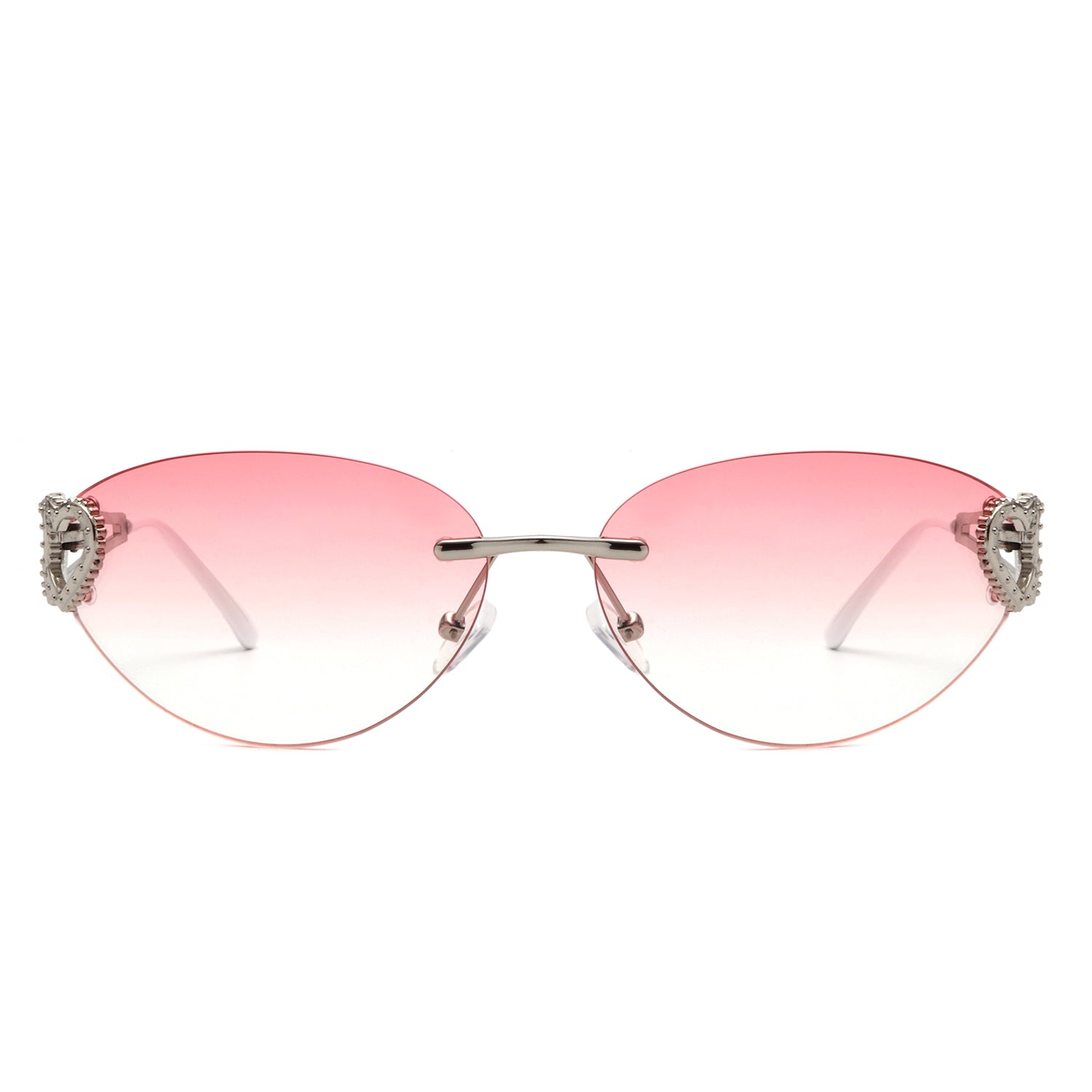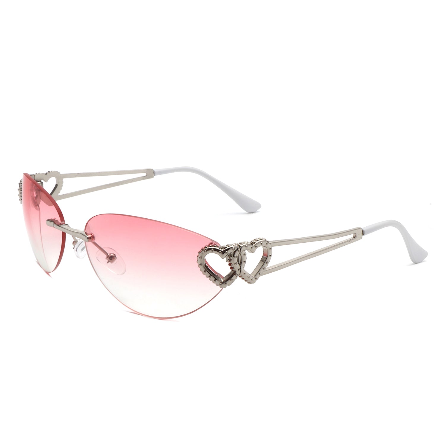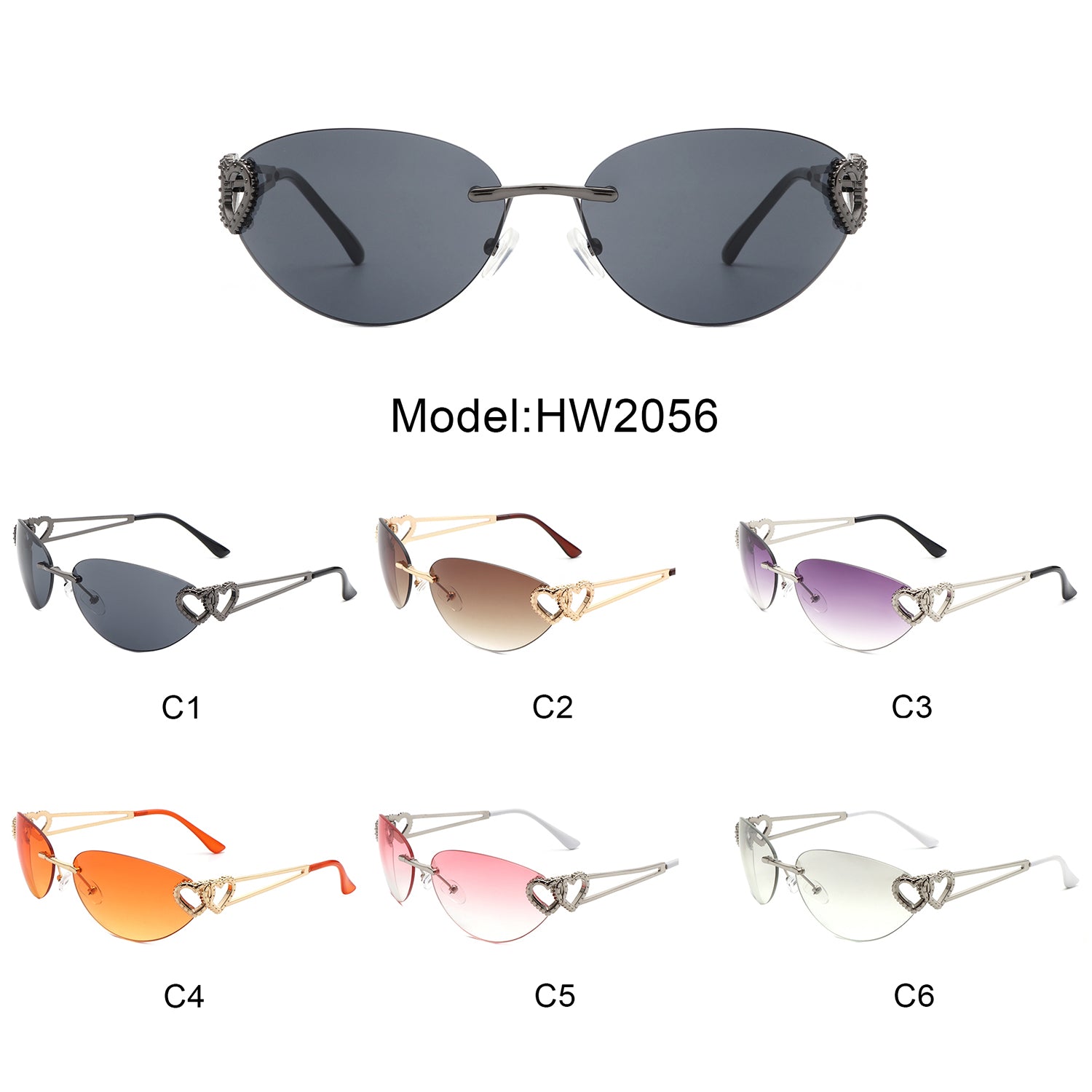 HW2056 - Women Chic Frameless Oval Fashion Heart Design Cat Eye Wholesale Sunglasses