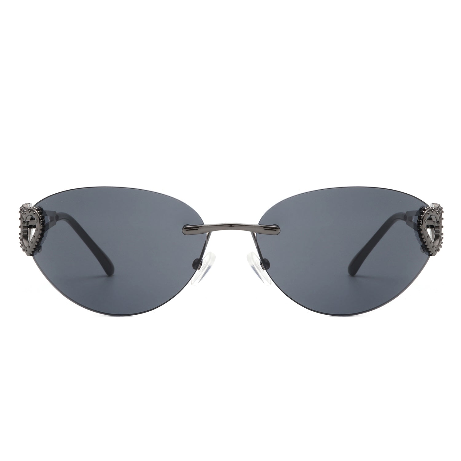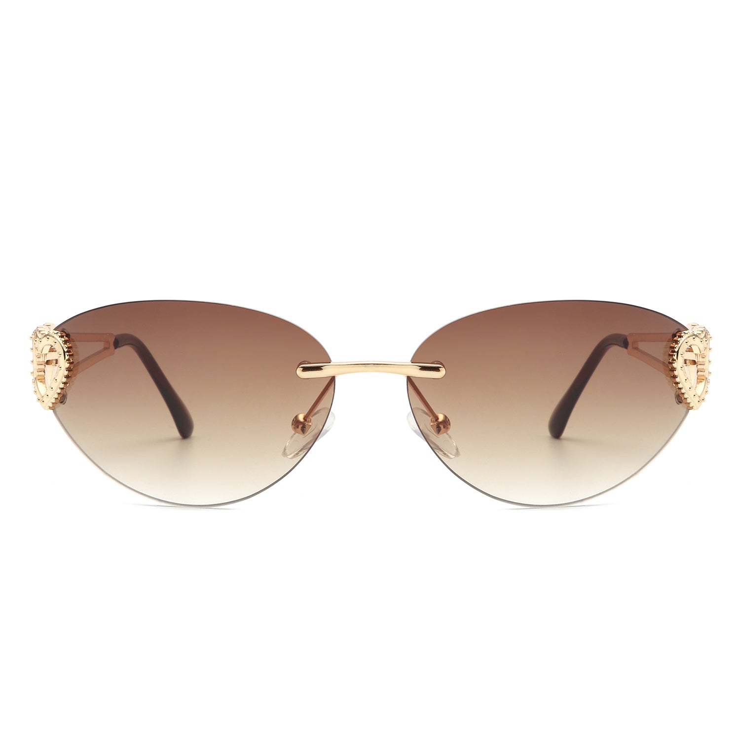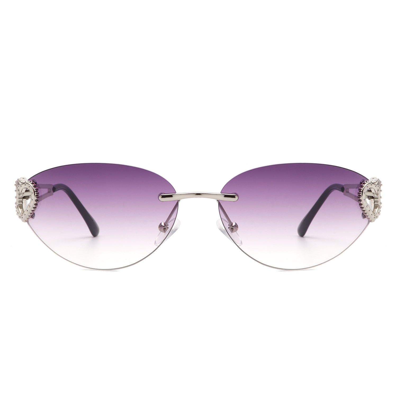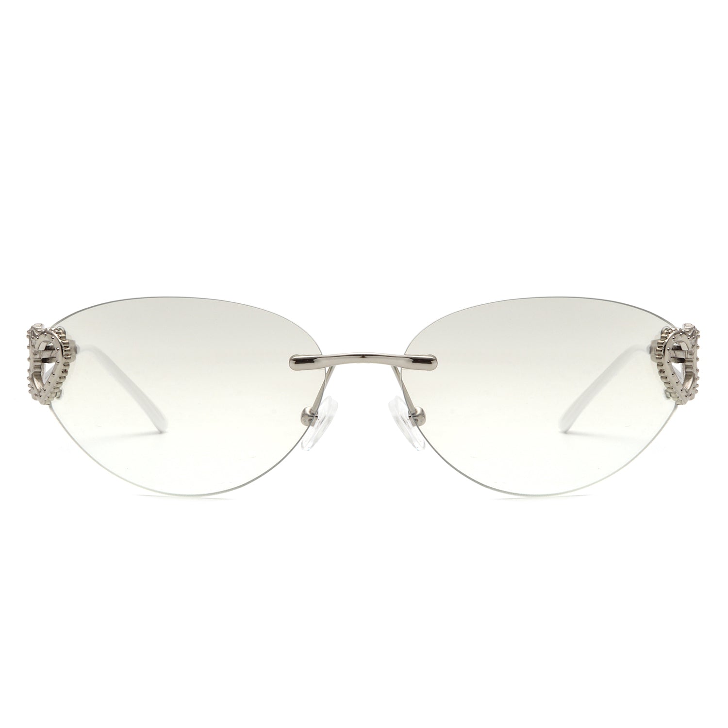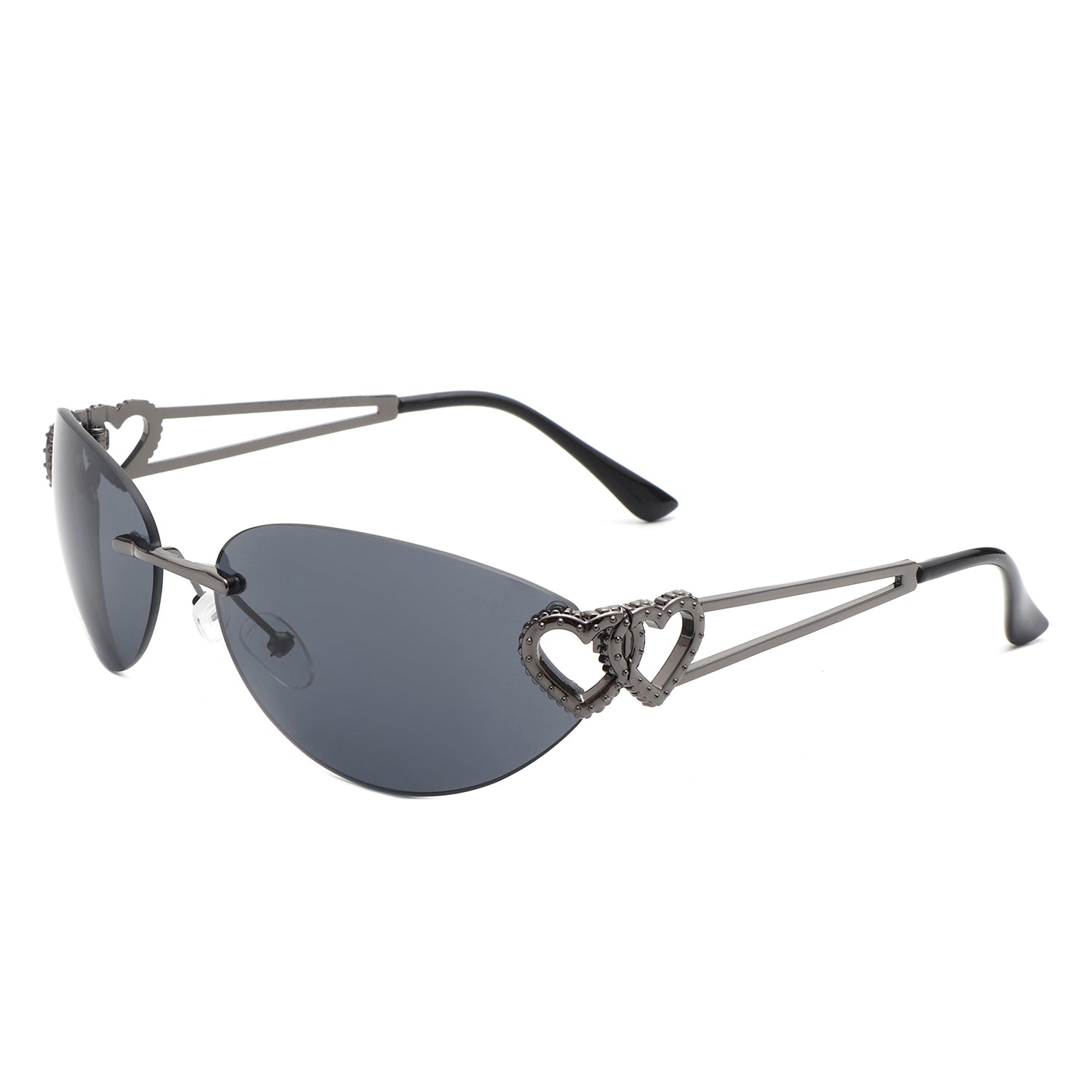 HW2056 - Women Chic Frameless Oval Fashion Heart Design Cat Eye Wholesale Sunglasses