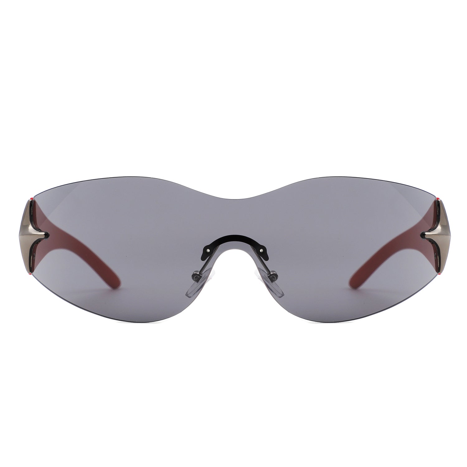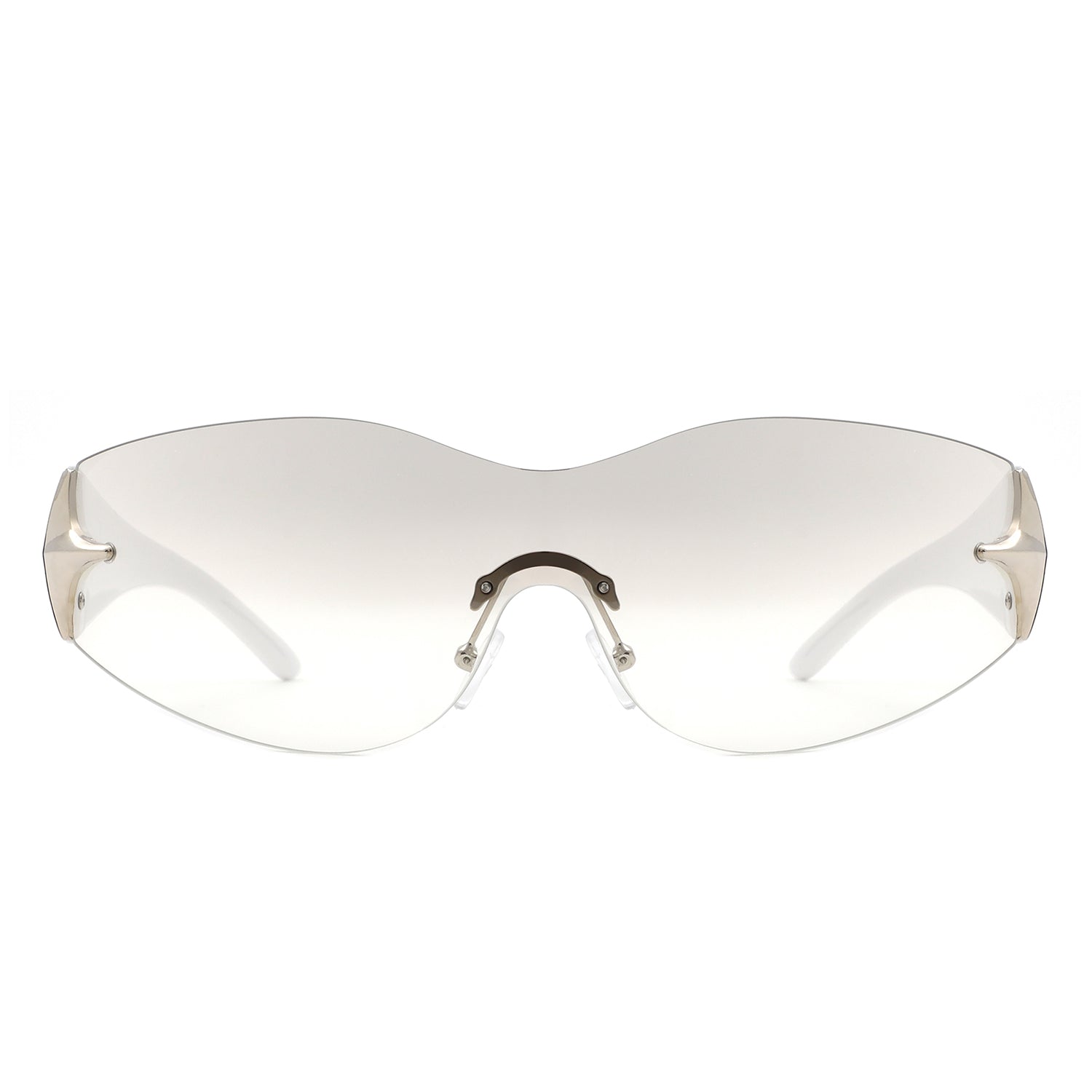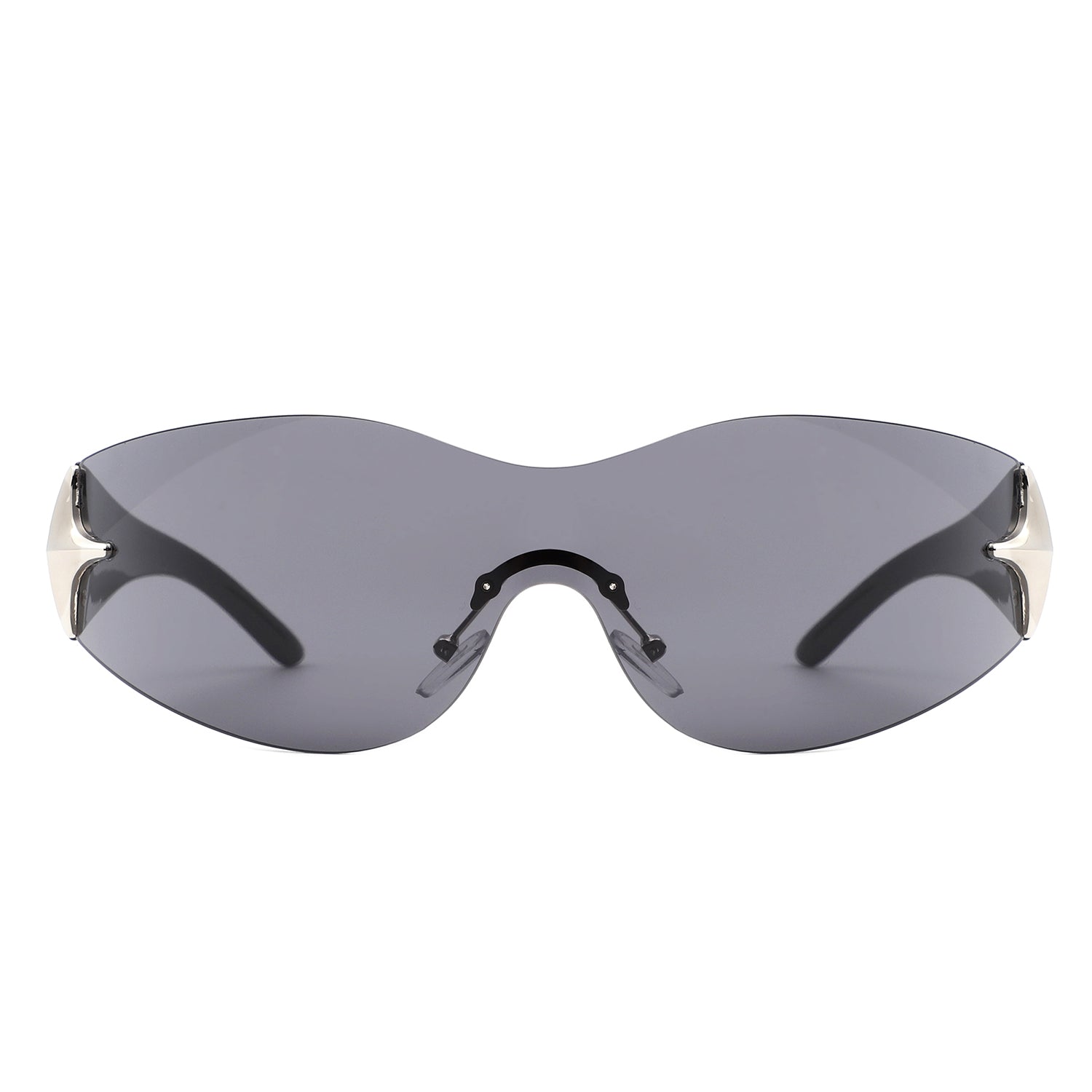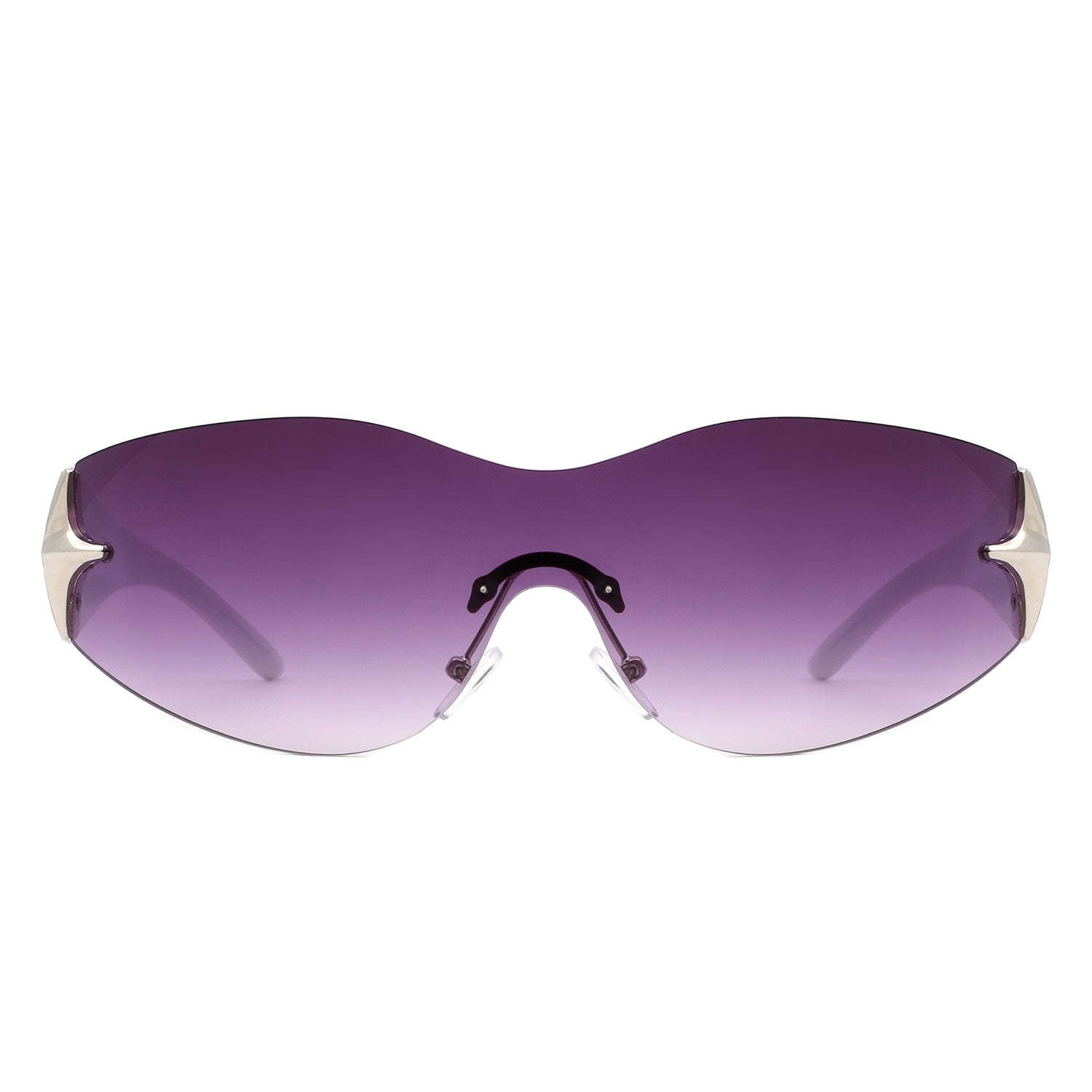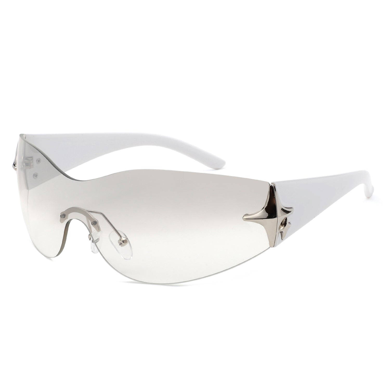 HW2064 - Rimless Sleek Double Star Fashion Shield Wholesale Sunglasses