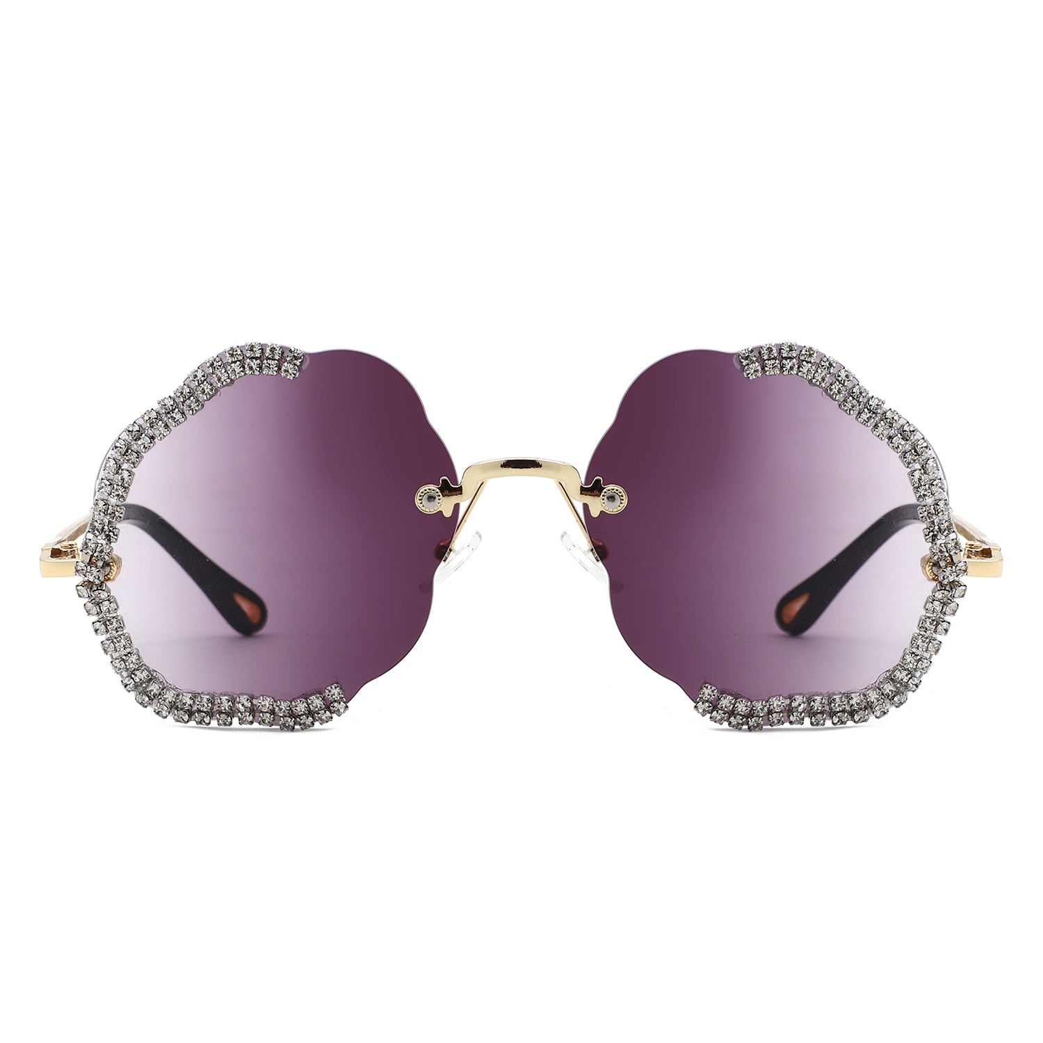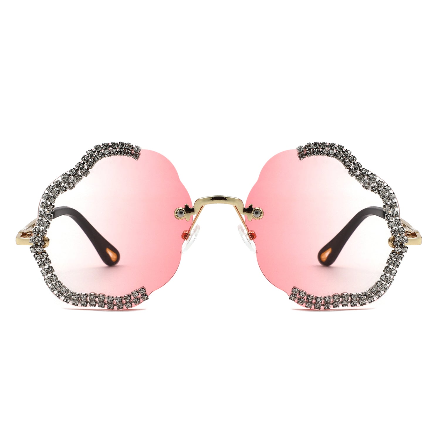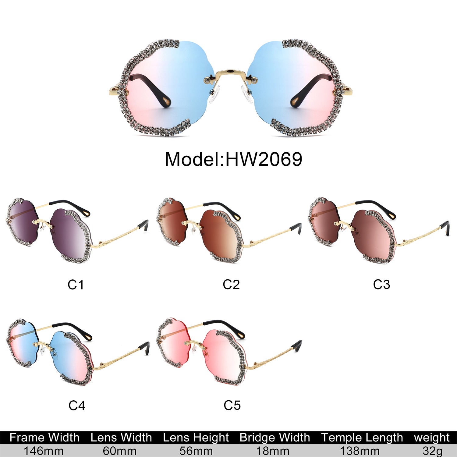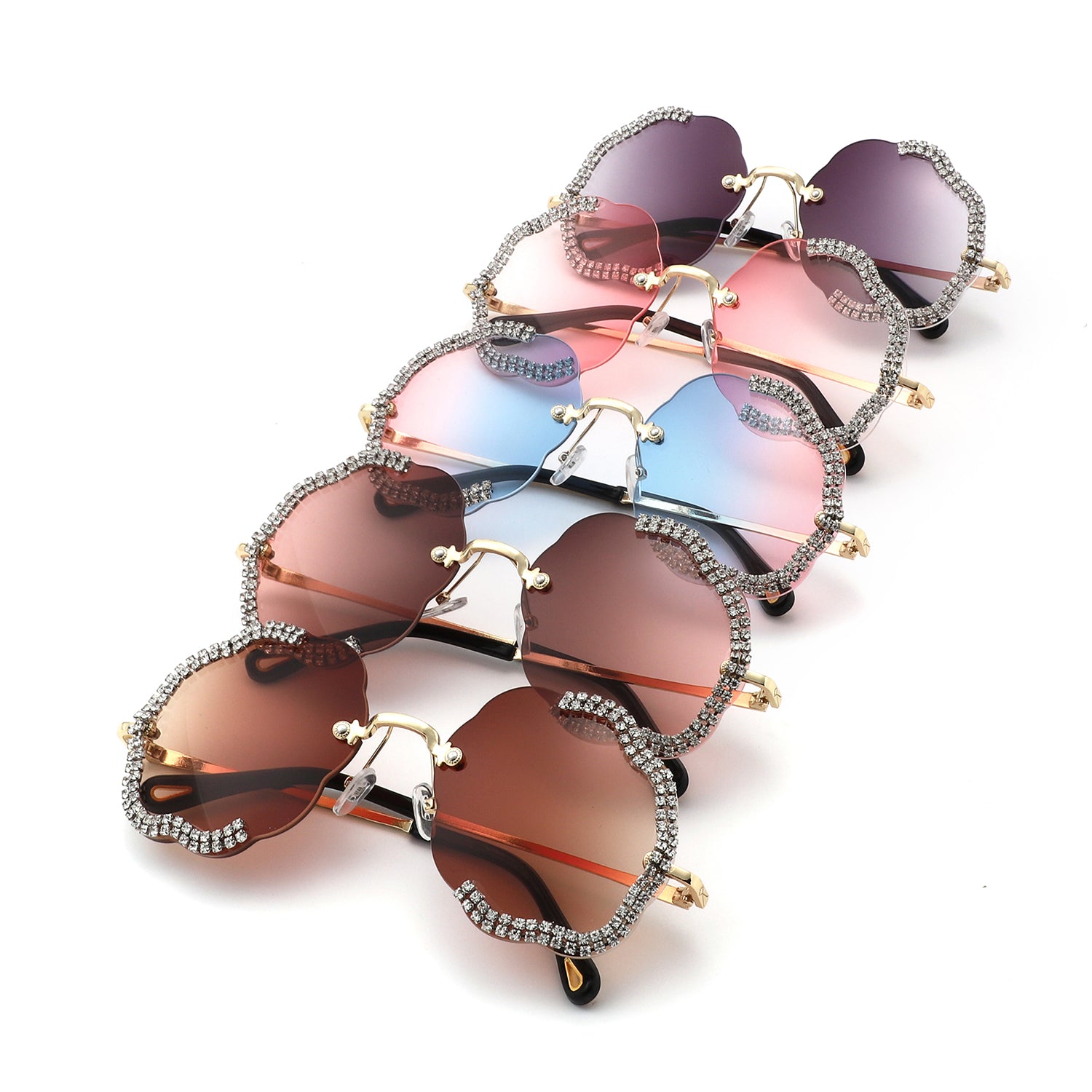 HW2069 - Rimless Luxurious Rhinestone Geometric Fashion Wholesale Sunglasses