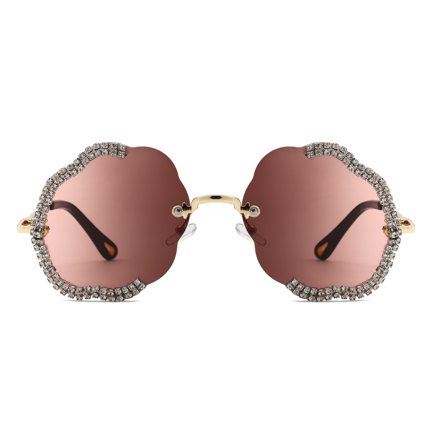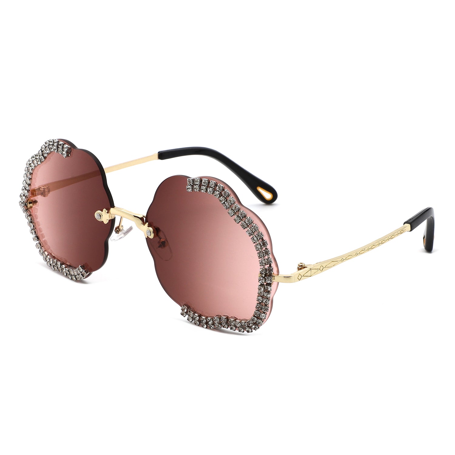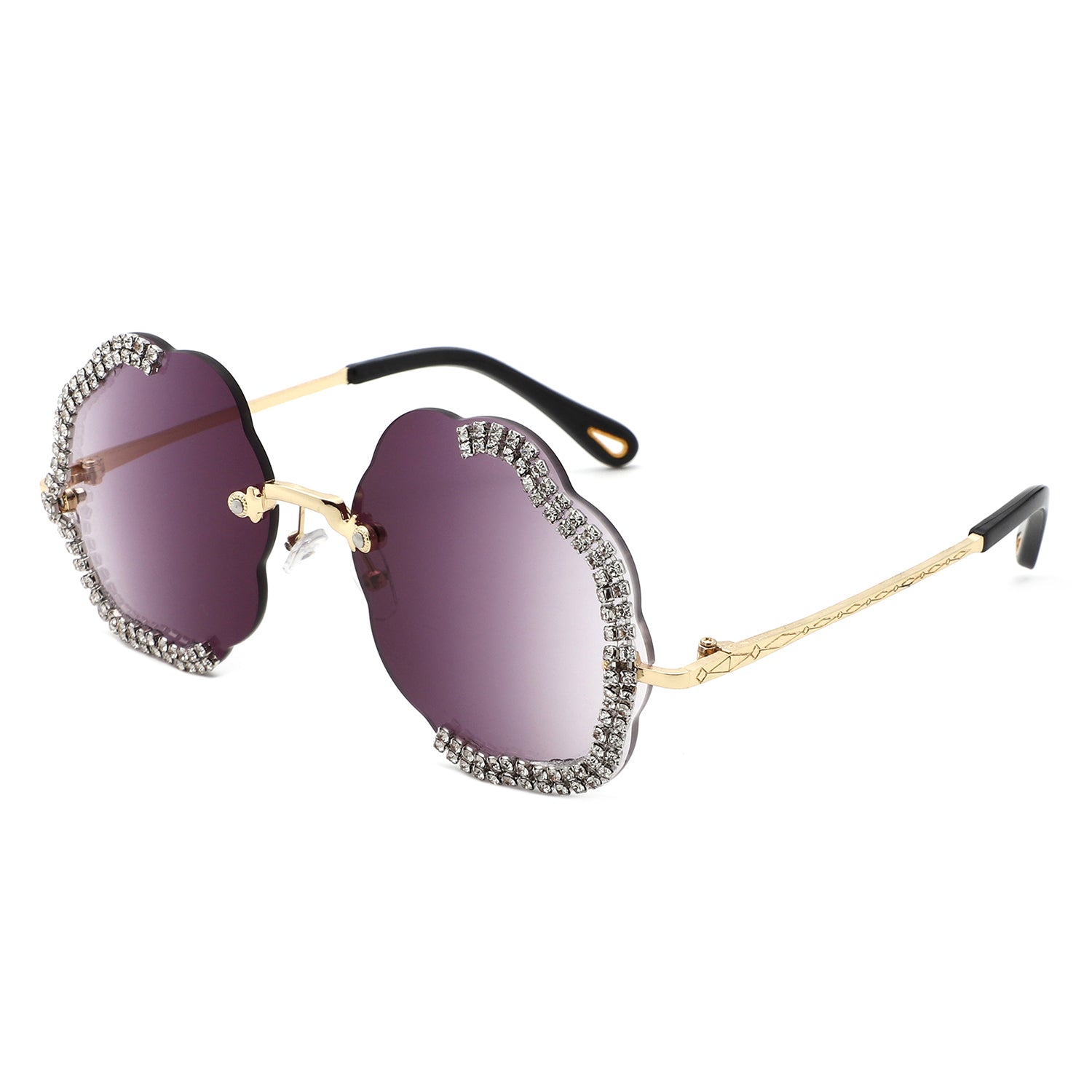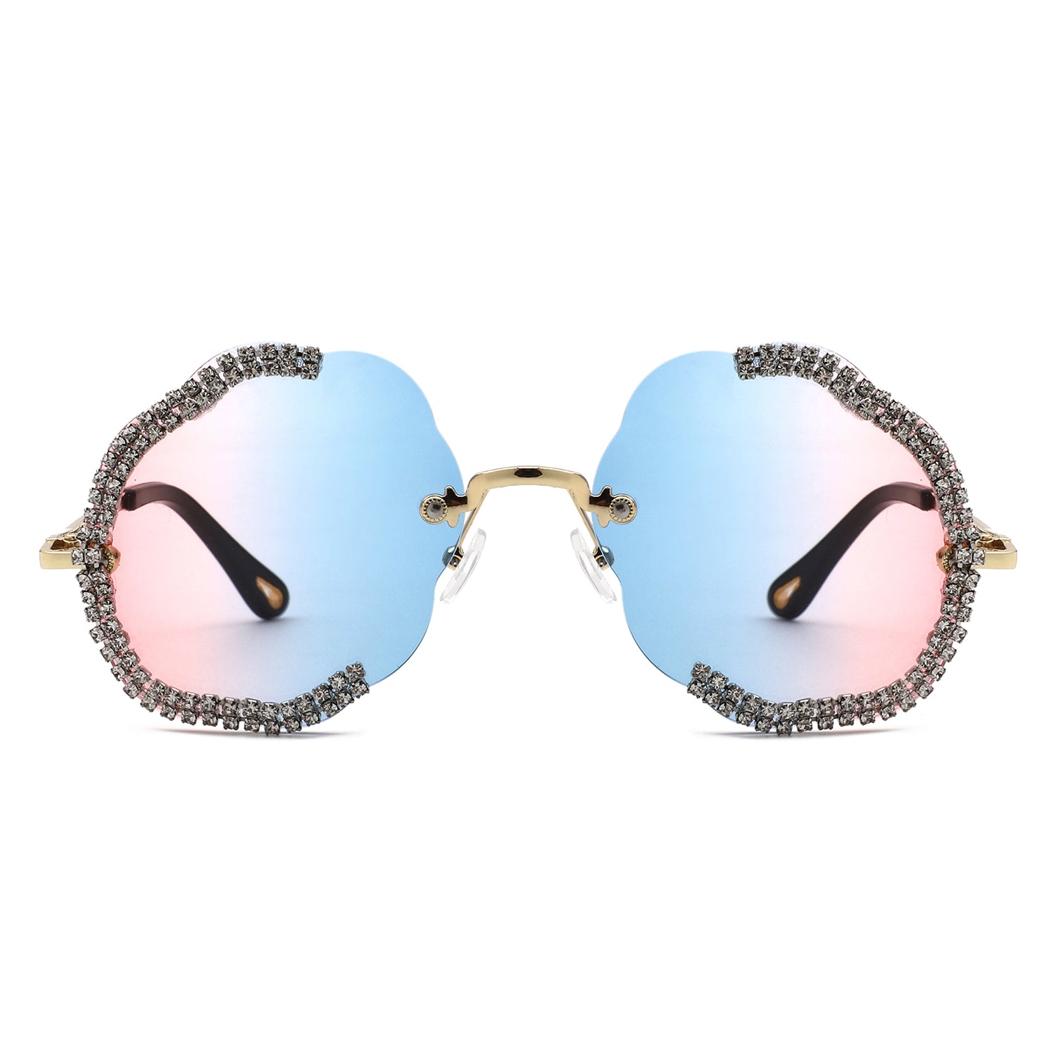 HW2069 - Rimless Luxurious Rhinestone Geometric Fashion Wholesale Sunglasses