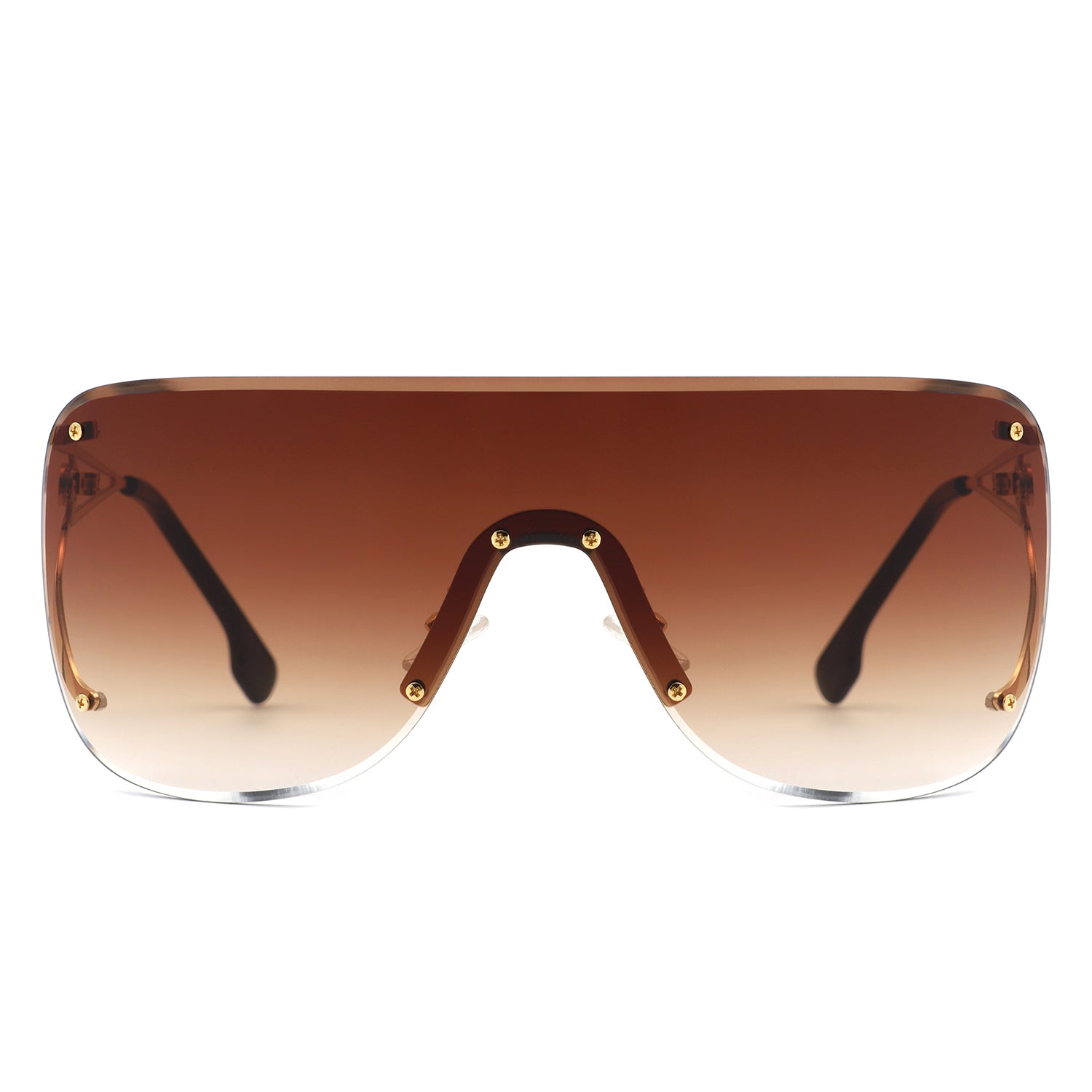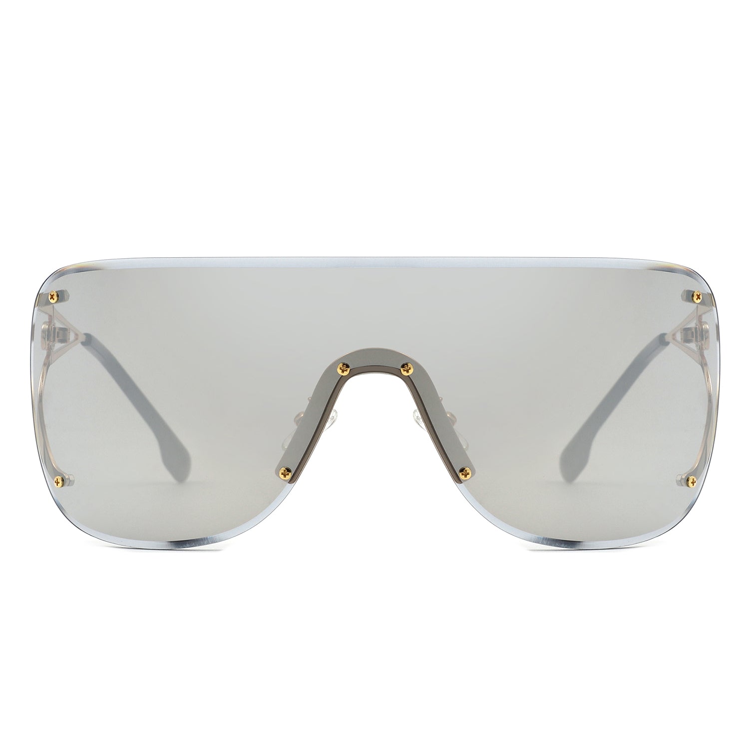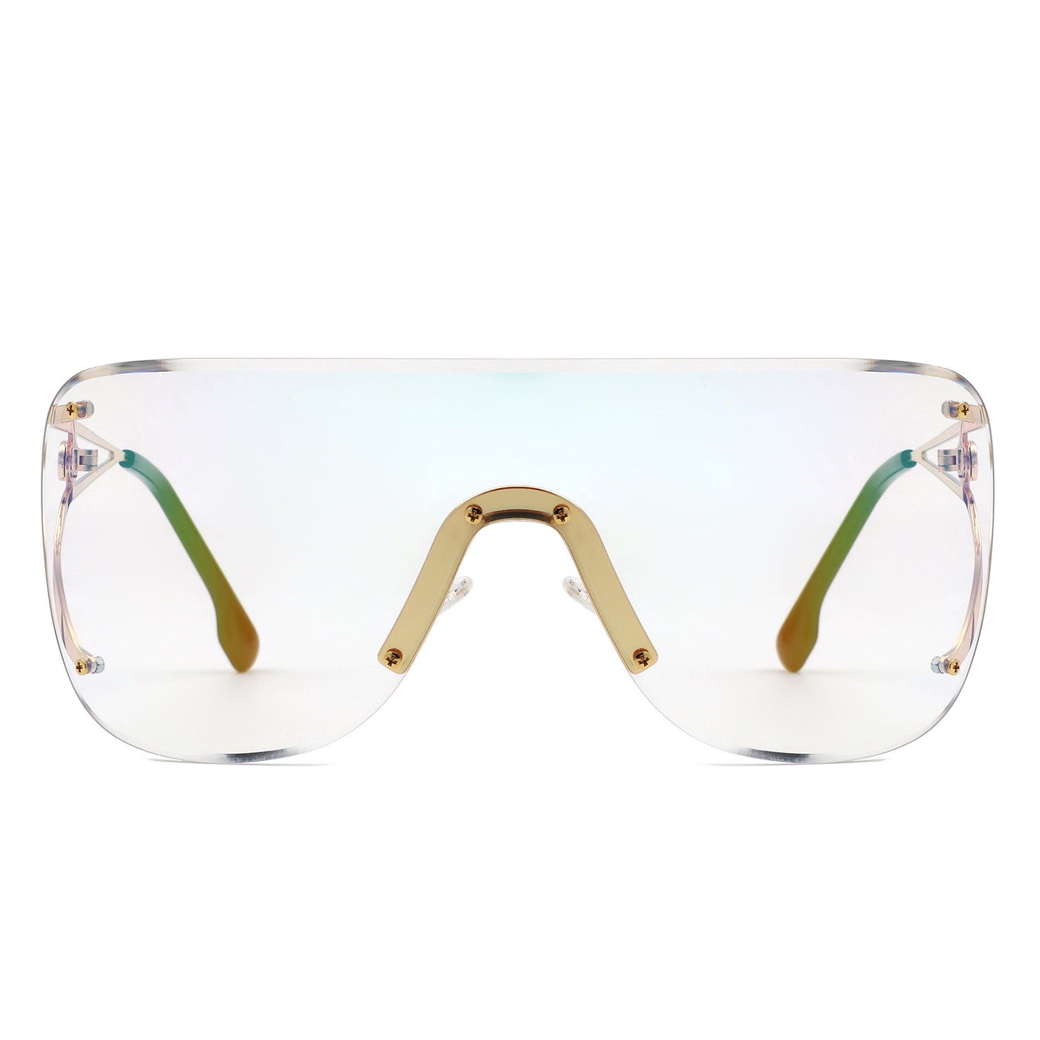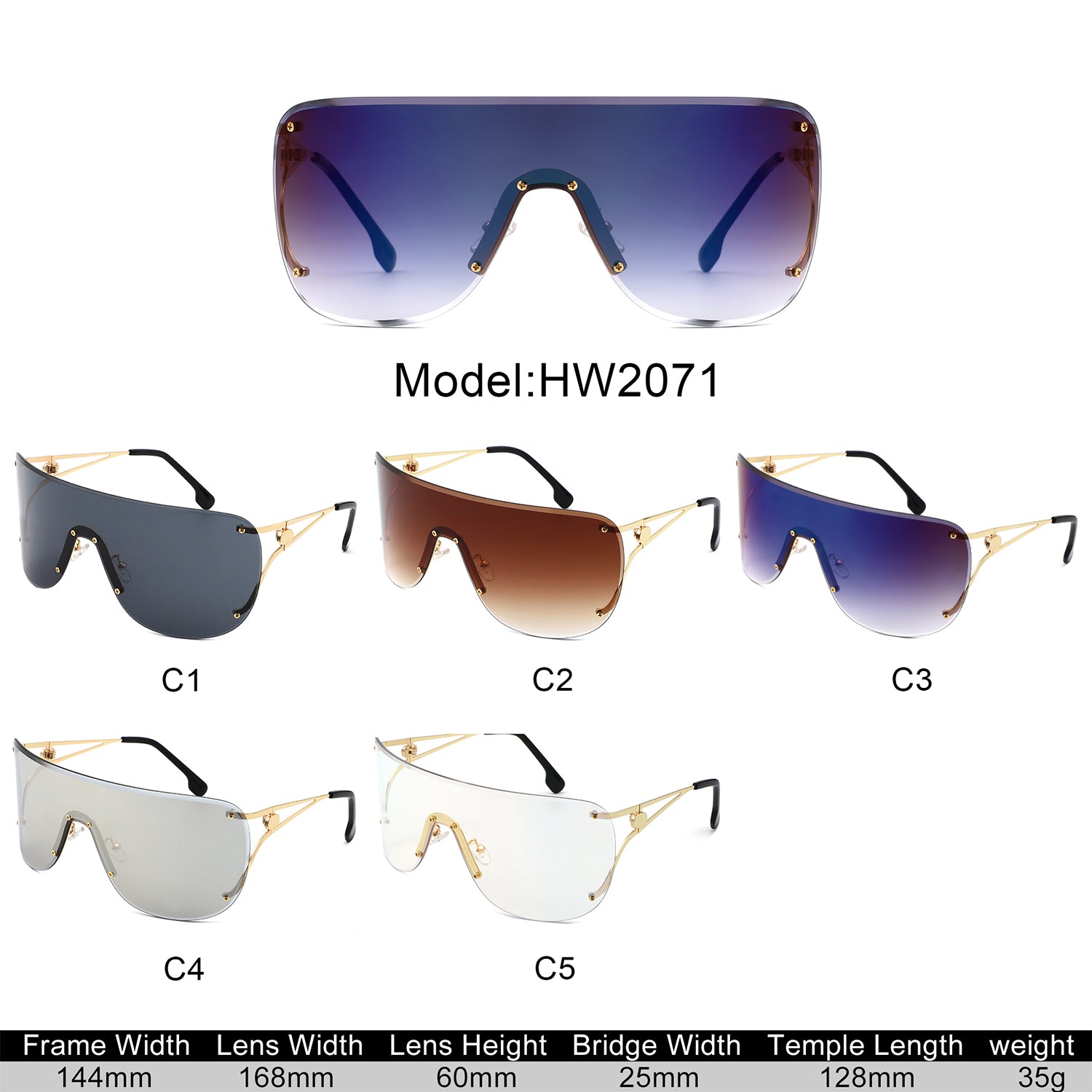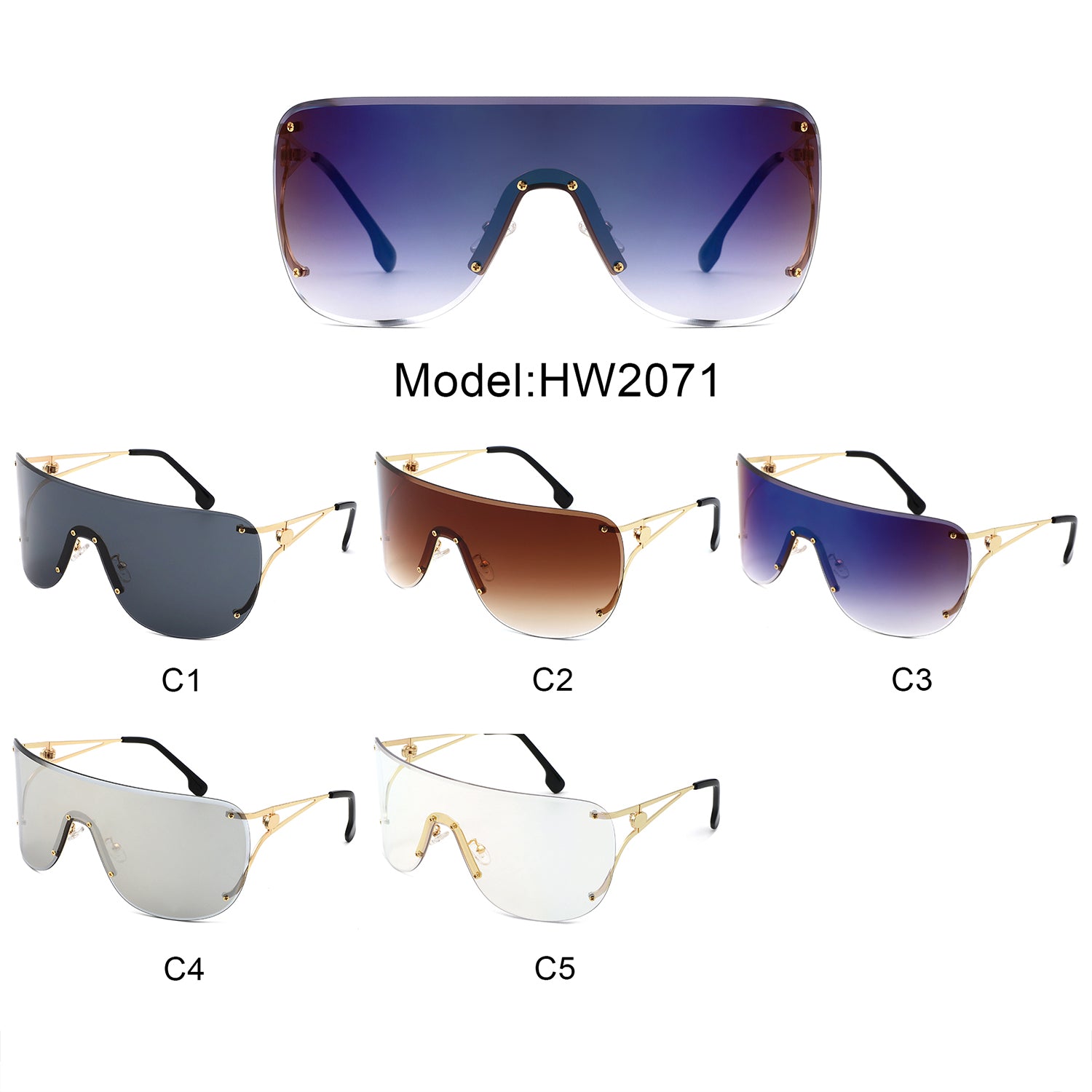HW2071 - Oversize Rimless Shield Wraparound Flat Top Wholesale Sunglasses