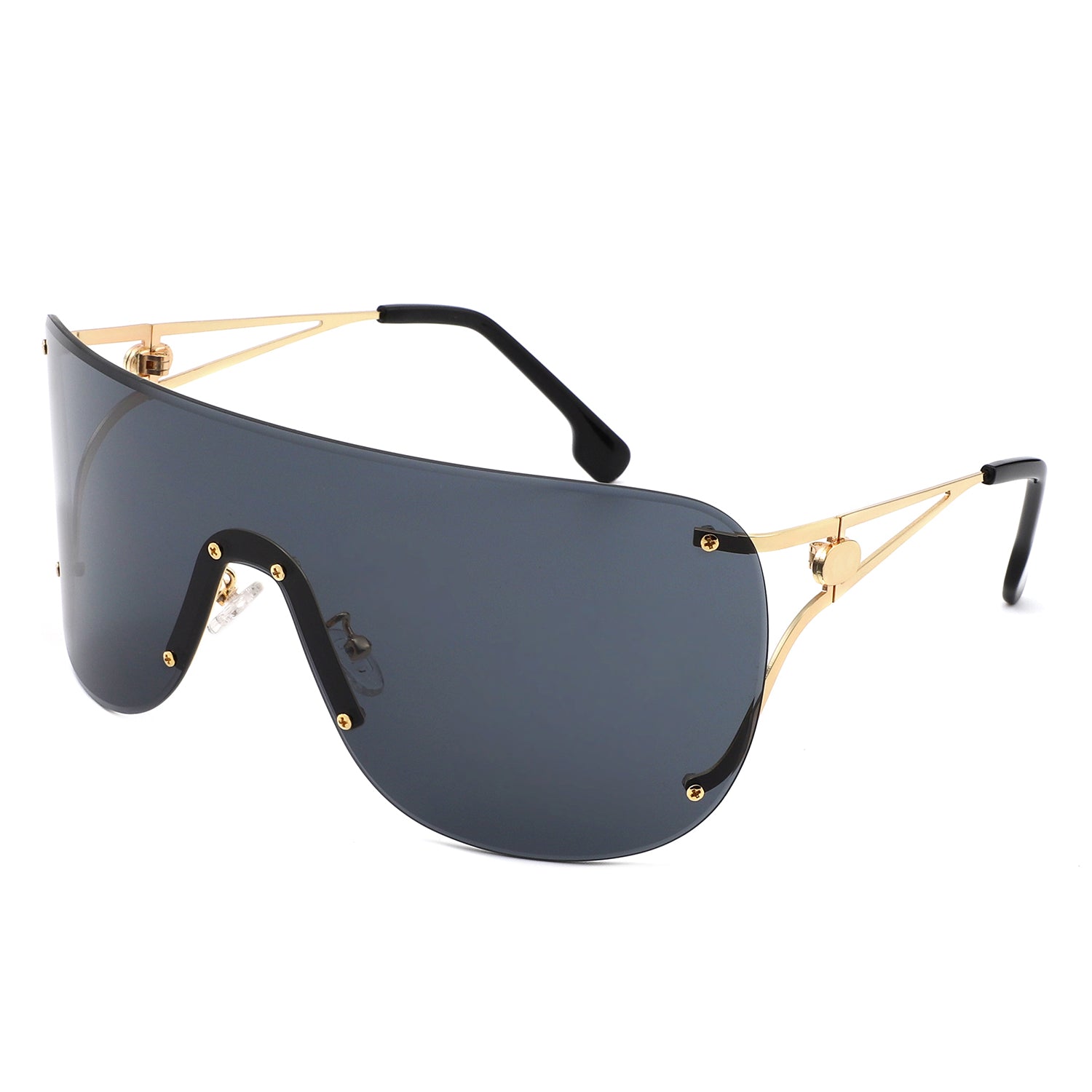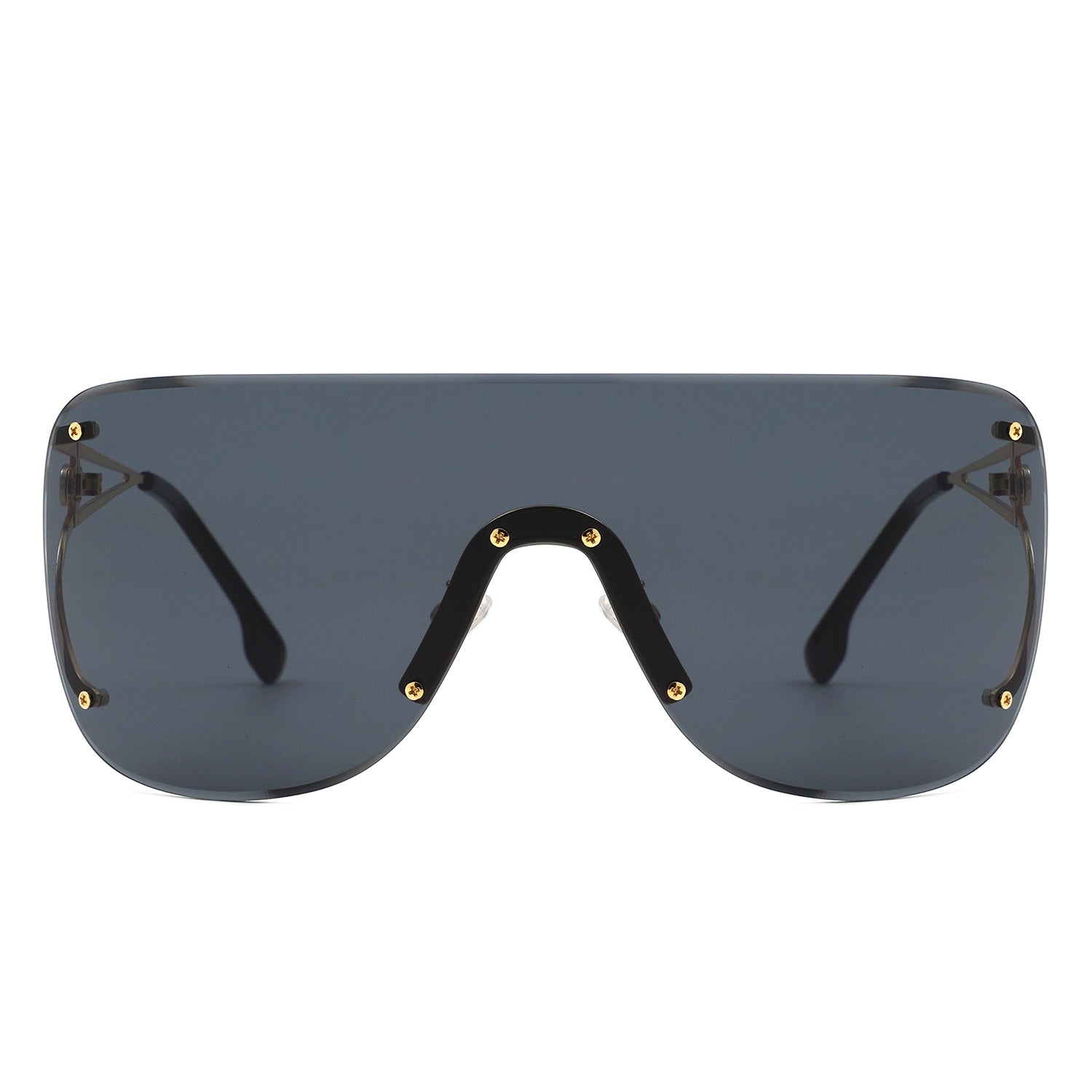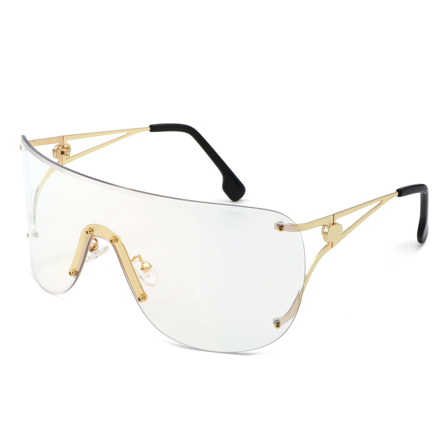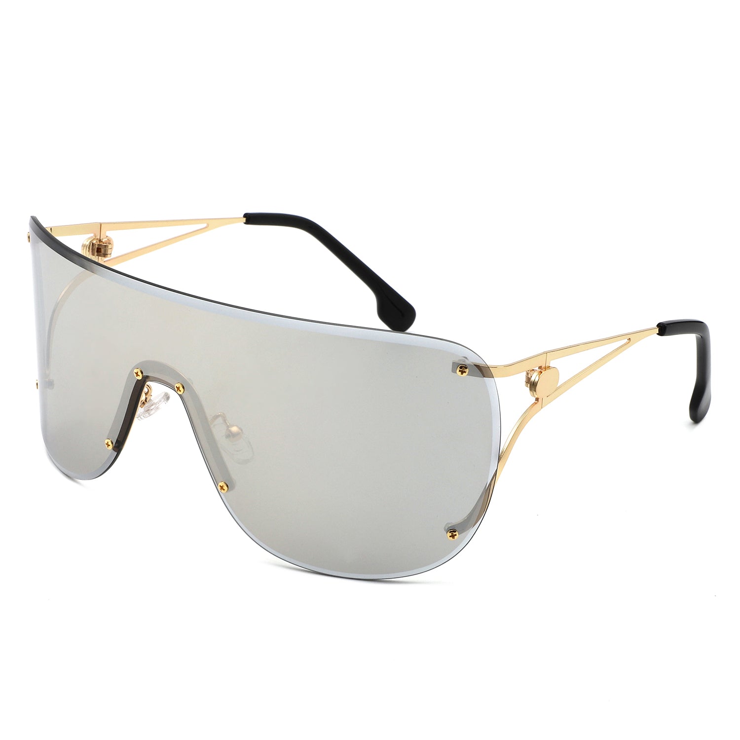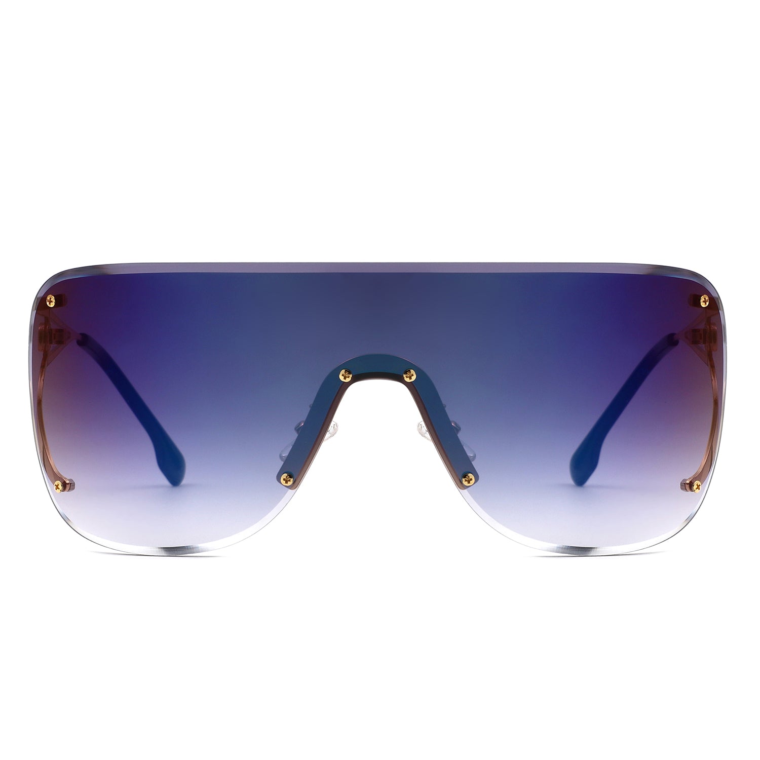 HW2071 - Oversize Rimless Shield Wraparound Flat Top Wholesale Sunglasses