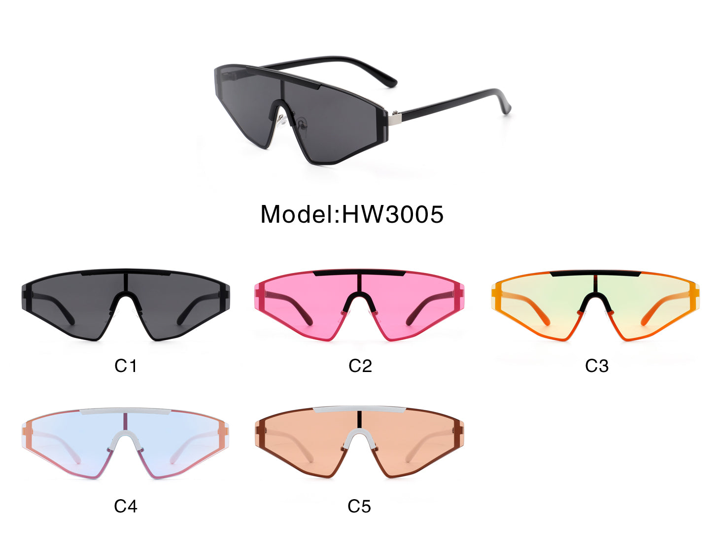 HW3005 - Geometric Flat Top Rectangle Tinted Shield Designer Fashion Sunglasses