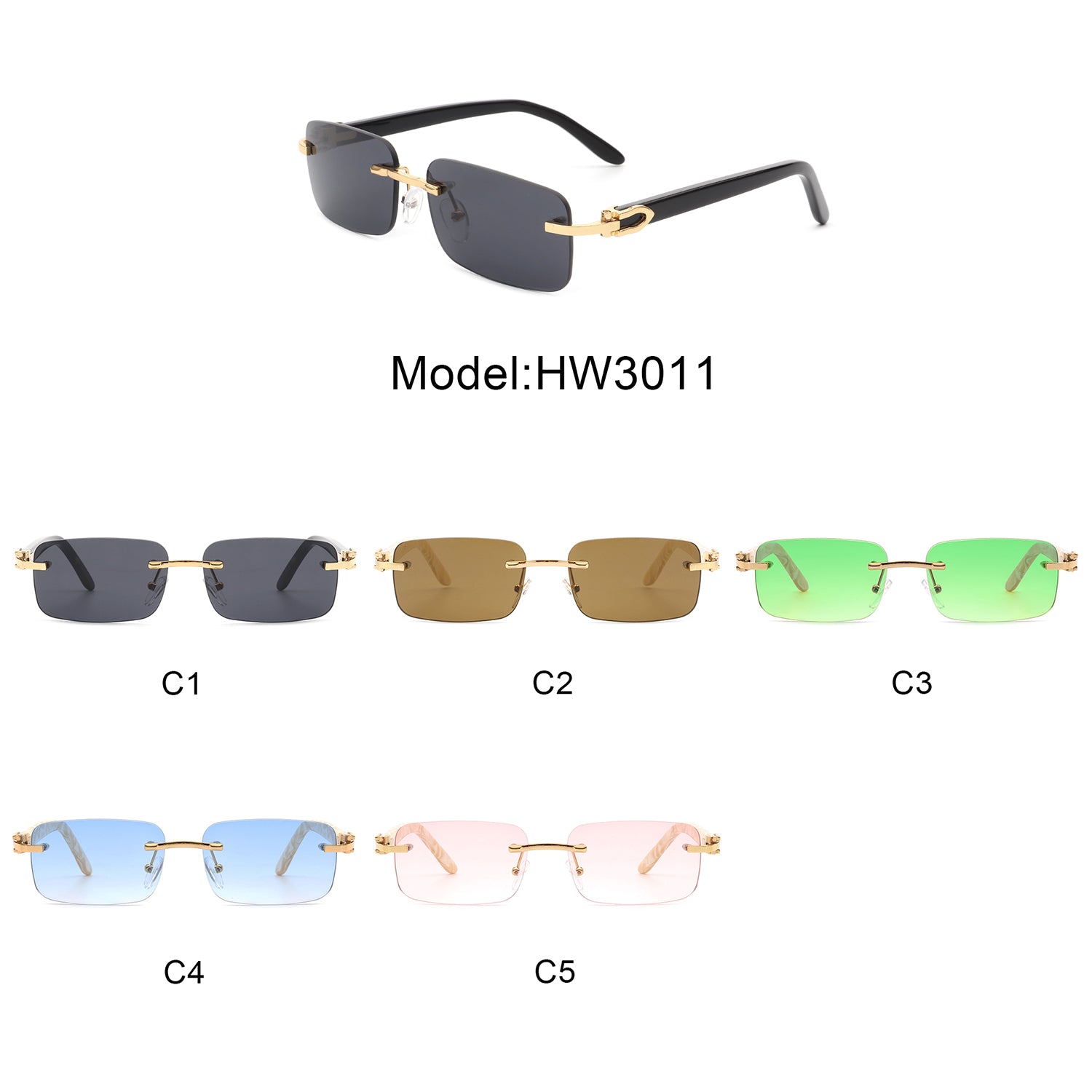 HW3011 - Rimless Rectangle Retro Tinted Fashion Square Vintage Sunglasses