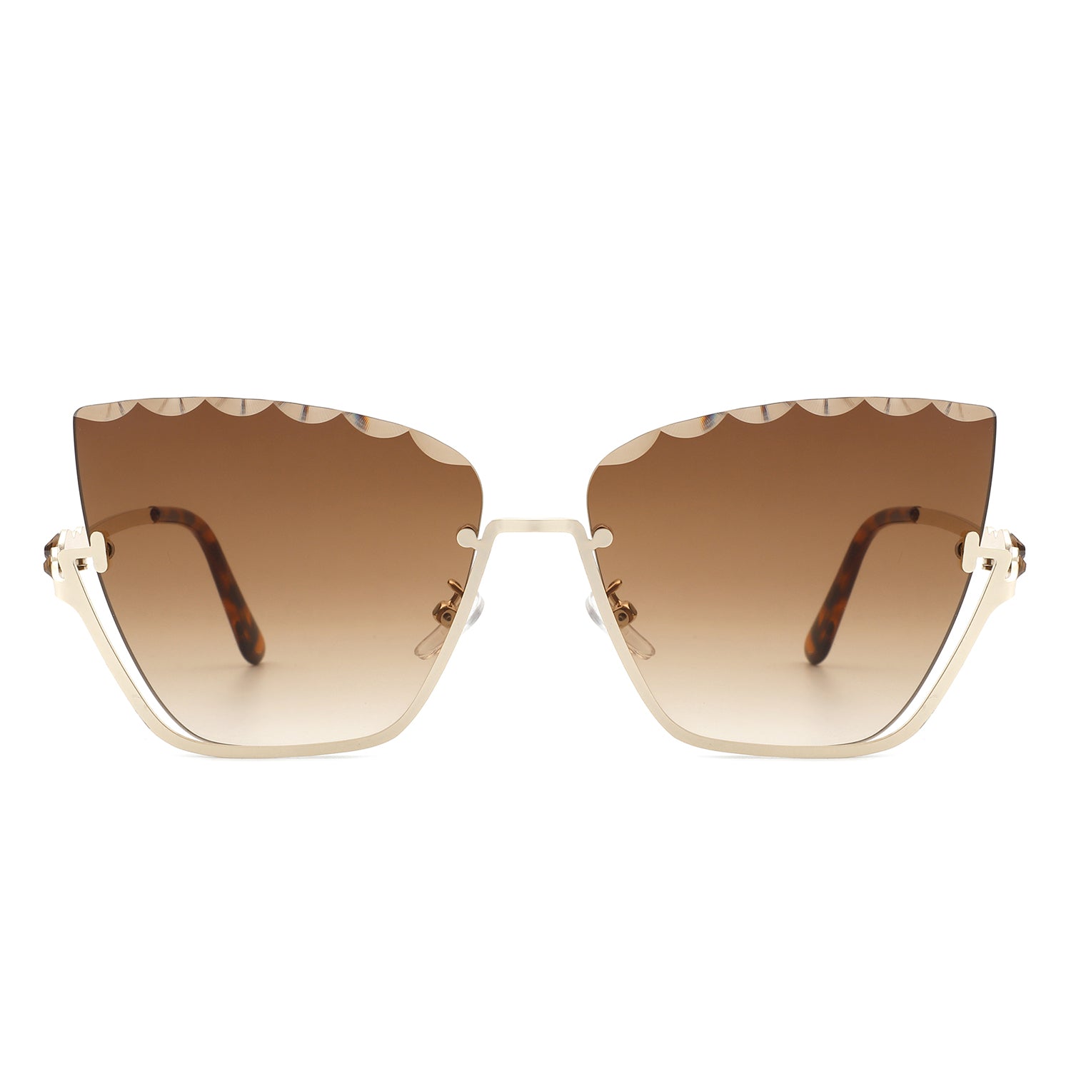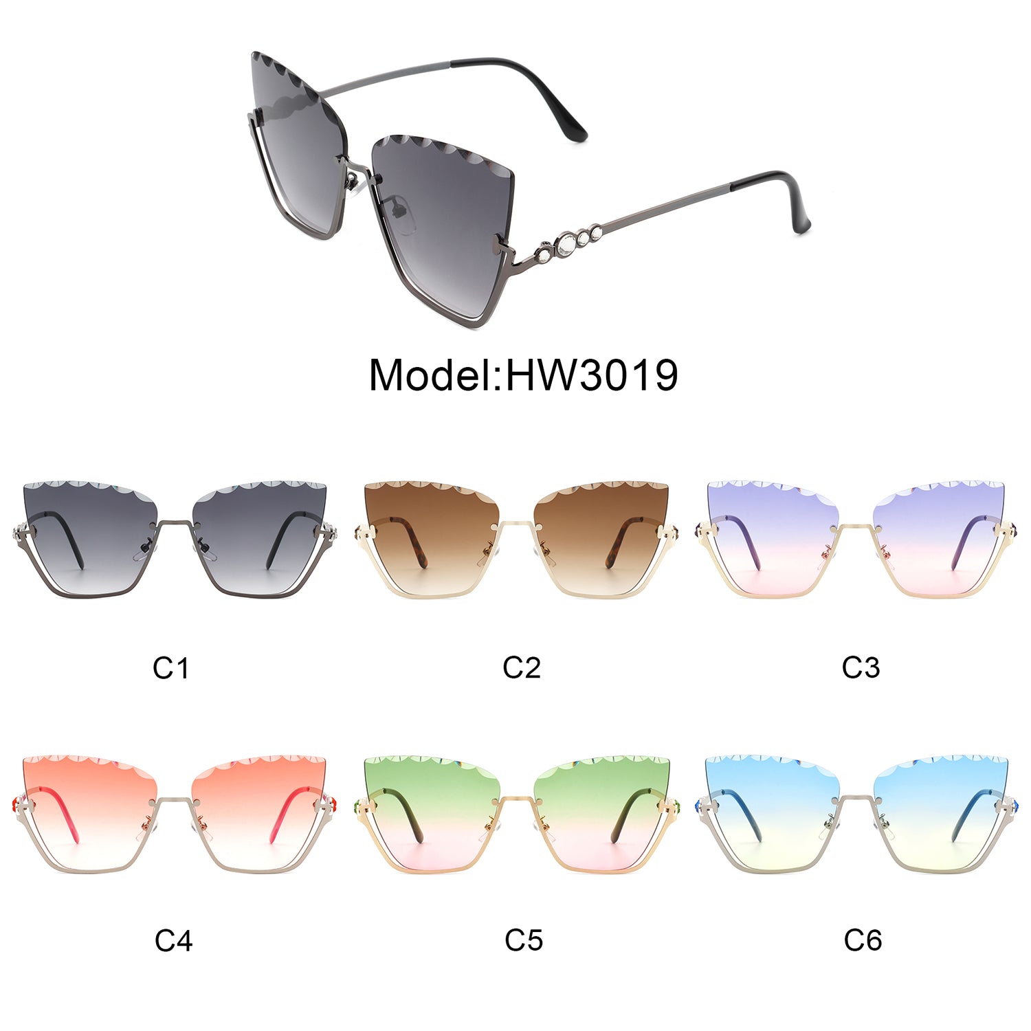 HW3019 - Half Frame Square Irregular Tinted Fashion Cat Eye Sunglasses